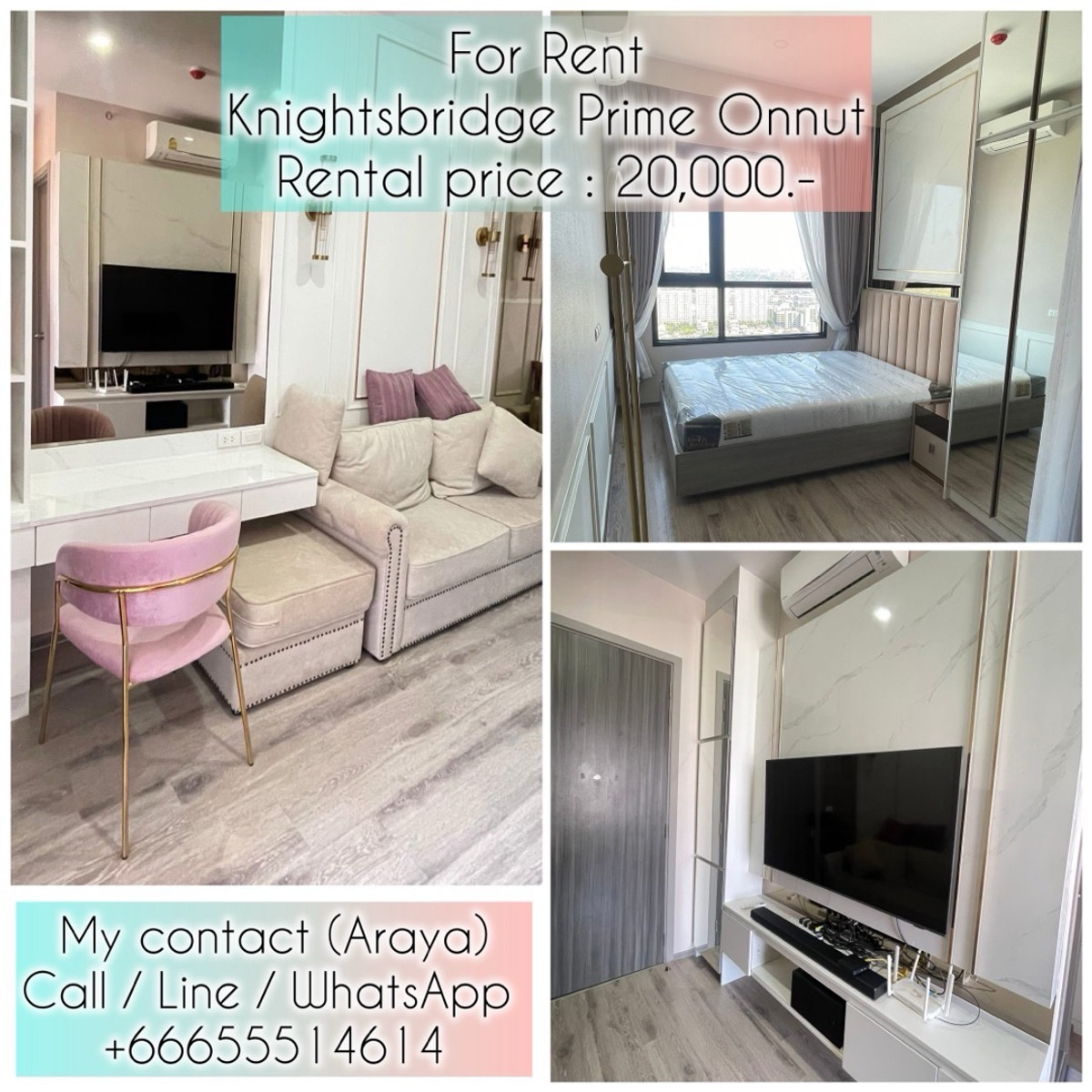 #Condo for rent Knightsbridge Prime Onnut (Knightsbridge Prime Onnut) 📍Location : Onnut 🚝BTS : Onnut Station Size : 27Sqm. Type : 1bedroom 1bathroom Floor : 30th Fully furnished Rental price : 20,000baht per month ( For 1 year contract ) ☎️My contact (Araya) 📞 : Contact number Line / WhatsApp : Contact number