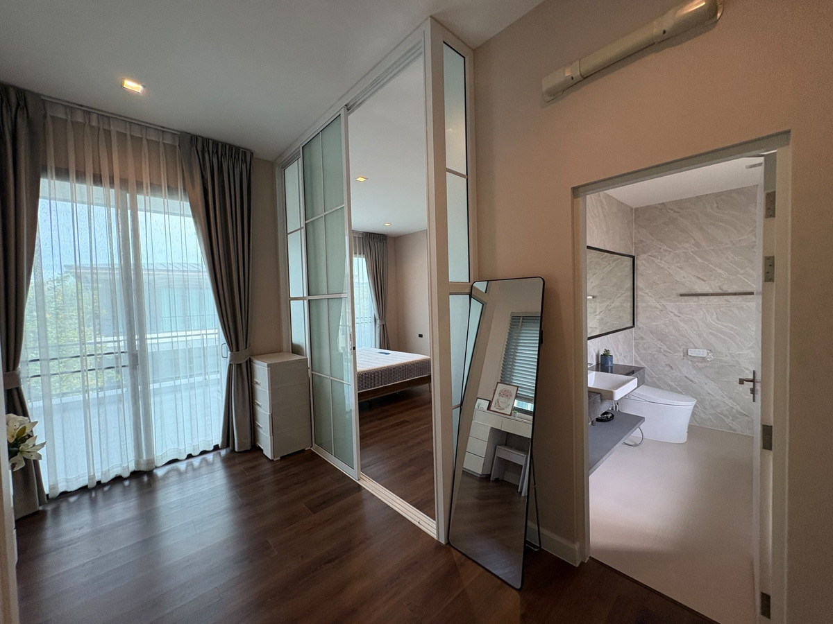 Corner Unit · Beautifully Decorated · Private Garden! Luxury Detached House for Rent – Bangkok Boulevard Chaengwatthana–Ratchaphruek 71.4 sq.wah | 5 Bedrooms | 4 Bathrooms Near Singapore International School of Bangkok (SISB) · Near Robinson Ratchaphruek · Urgent! . Video: https://youtube.com/shorts/zKpoHU1cTRY 360° Virtual Tour: https://360tour.thaipropertyinvestor.net/en/embed/6cJI0U1To8 . Location Thai Chamber of Commerce Road, Bang Tanai Subdistrict, Pak Kret District, Nonthaburi 11120 Google Maps: https://maps.app.goo.gl/NvQM7HUKASGj24fn8?g_st=ipc . Property Details ✅ 2-storey detached house ✅ Elegant design with La-Nine Series concept ✅ Land area: 71.4 sq.wah ✅ Usable area: 279 sq.m. ✅ 5 bedrooms / 4 bathrooms ✅ 2 parking spaces ✅ 1 living room · 1 family/relaxing room · 1 kitchen . Highlights ✅ Corner unit, beautifully decorated, like new ✅ Private garden · Charming front terrace · Spacious upper-floor balcony ✅ EV Charger ready ✅ Smart Home system via the RueJai app by SC Asset, with Hub Panels installed at 2 points (1st-floor hallway & Master Bedroom) ✅ Comprehensive security system: Magnetic & Shock Sensors on all doors and windows, controlled by Paradox panel ✅ Heat Detectors in Living Area & Master Bedroom (alerts when temperature exceeds 57°C) ✅ Smoke Detector in the kitchen for added safety . Rental Price ✅✅ THB 89,000 per month only ✅✅ . Facilities ✅ Fitness center ✅ Clubhouse ✅ Co-working space ✅ Swimming pool ✅ Central garden ✅ CCTV ✅ Automated access control ✅ Child development/play area . Nearby Landmarks ✅ Singapore International School of Bangkok (SISB) ✅ Big C Extra Chaengwatthana 2 ✅ Robinson Ratchaphruek ✅ Sarasas Witaed Ratchaphruek School ✅ Denla British School ✅ The Crystal PTT ✅ Pak Kret Hospital ✅ Chic Republic Night Market . Convenient Access ✅ Tiwanon Road ✅ Chaengwatthana Road ✅ Ratchaphruek Road ✅ Bang Kruai–Sai Noi Road ✅ Kanchanaphisek Road ✅ Close to Si Rat Expressway and Udon Ratthaya Expressway . Contact Khun Lee: Contact number LINE ID: Contact number LINE : @thpropertyinvestor Website: www.thaipropertyinvestor.net