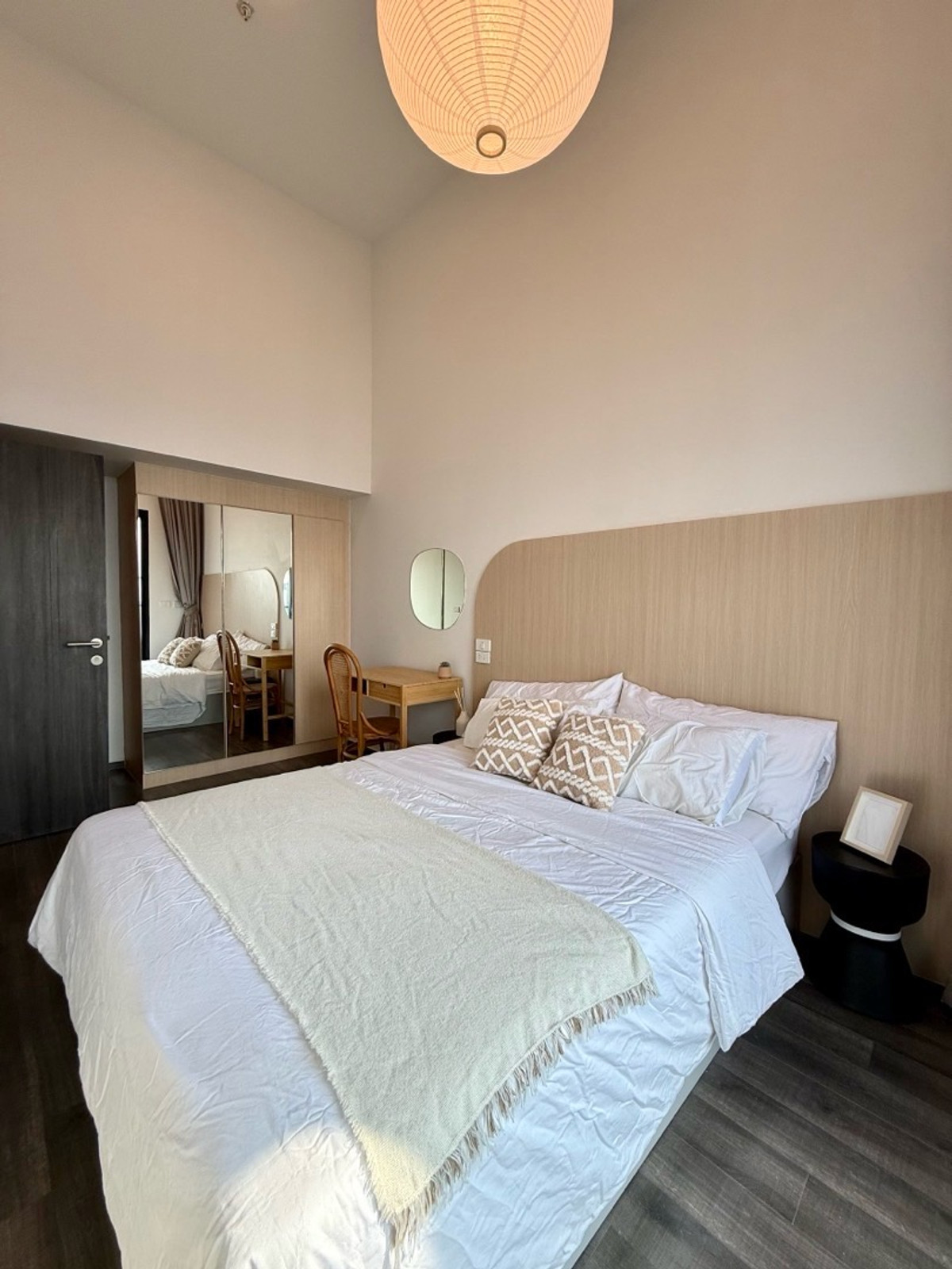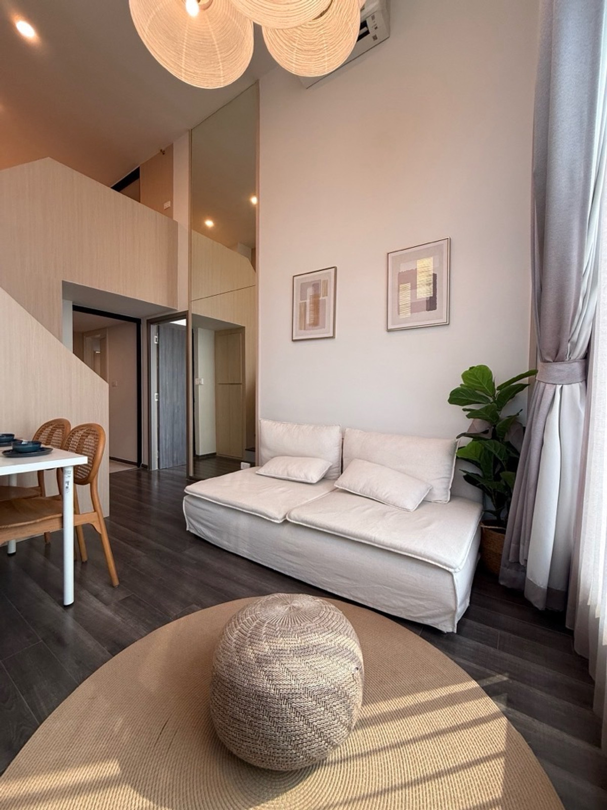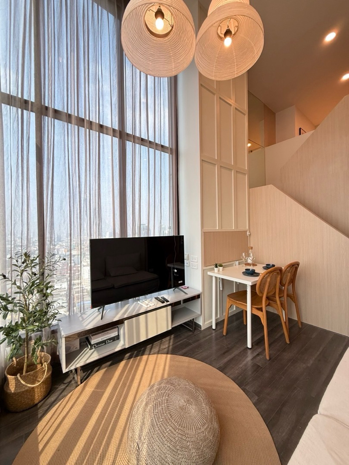 2 Bedroom Duplex 50 sq m. Decorated in Wooden Minimal style High floor 25, City view, see Baiyoke building (City View w/ Sunset)🌅 New room. The owner lives in it himself, just rented it out Rental: 42