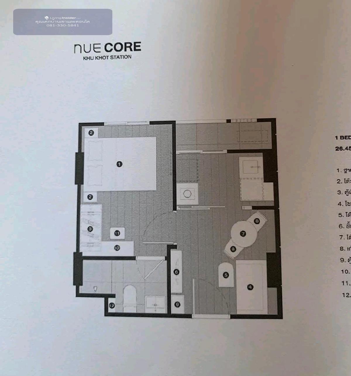 💥💥💥 Condo for rent Nue Core Khu Khot Station 🏙️ New Core Khu Khot Station | Ready to move in End of February 2026 📍 Next to the BTS Green Line, Khu Khot Station , convenient travel, close to the BTS, suitable for both living and working ✨ Room details • Type : 1 Bedroom 1 Bathroom • Separate kitchen • Size : 27 sq m • Building : A • Floor: 4• Corner room, good location, in front of the room wont hit anyone • 2 rooms away from the fire escape, private, quiet 🛋️ Furniture & Electrical Appliances • Fully furnished • Complete with electrical appliances • Ready to move in immediately. Carrying one bag 💰 Rental price 9,500 baht / month • Includes common fees • 1 parking right • Water bill + electricity bill at normal rate • Internet added +500 baht / month (if needed) 📑 Contract conditions • Minimum 1 year contract • 2 month warranty • 1 month in advance • Total payment on contract signing day 3 months If interested, contact: ☎️ Cake Contact number | 🆔 surasakiii555 📱 Nut Contact number | 💬 nut-2540-nut #Condo for rent - #Condo for rent - #NueCoreKhuKhot - #Condo next to BTS - #Condo KhuKhot - #Room for rent ready to move in - #CakeProperty