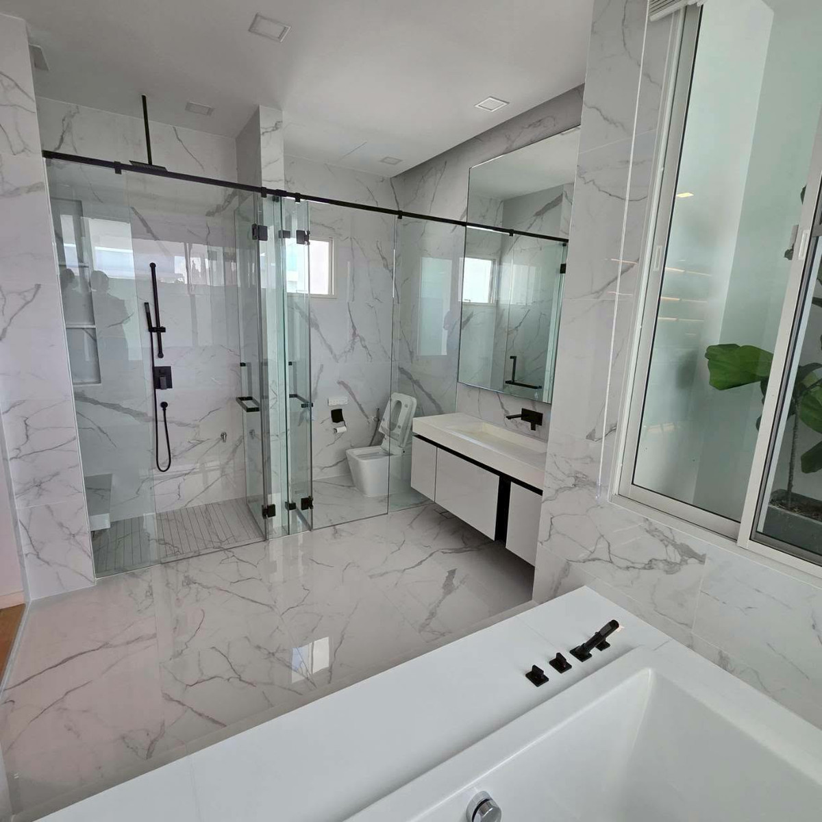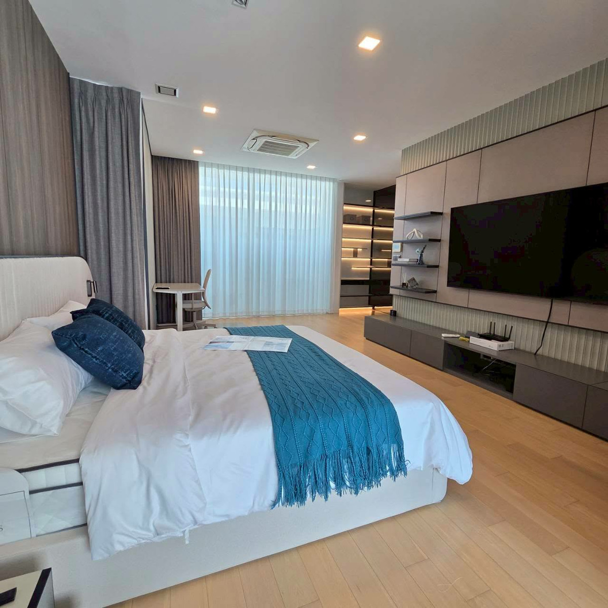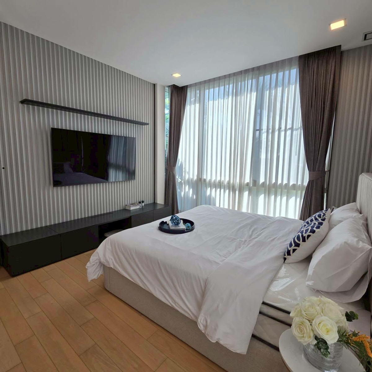 House for rent, VIVE Ekkamai-Ramindra. (Newly decorated, ready to move in) Area 70.1 sq m., usable area 371 sq m., 4 bedrooms, 5 bathrooms, 3 parking spaces ** Property details ** Baan VIVE Ekkamai-Ramindra (Newly decorated, ready to move in) - 3-story detached house - Area 70.1 sq m - Usable area 371 sq m - There are a total of 4 bedrooms, 5 bathrooms (1 Master bedroom + Walkin closet + Indoor&Outdoor bathtub) - 1 multipurpose room - 1 elevator - 1 maids room - 3 parking spaces - newly decorated, fully furnished. Ready to move in ** Highlights ** - Newly decorated, fully furnished. Ready to move in - life...unique with a new concept house that can control the direction of light With a private swimming pool, only 48 units, new project VIVE Ekkamai-Ramindra ** Facilities in the project ** - Large Clubhouse - Hi-class Fitness swimming pool - Central garden providing shade with large trees 365 days a day - Key Card Access for entering and exiting the project for individuals - 24-hour CCTV system - 24-hour security guards Hours _________ ** Location ** along Ekkamai-Ramindra Expressway, Nawamin Subdistrict, Bueng Kum District, Bangkok 10230 For rent 250,000 baht/month 3 months property insurance, 1 month advance rent **Nearby places ** - near leading department stores - Crystal Design Center (CDC) - Chic Republic - The Crystal Park - Central EastVille - near Regent International School - SISB Singapore International School - KIS French International School - Keerapat International School - near the expressway entrance and exit point Ekkamai-Ramintra - near transportation sources and Various hospitals such as Vejthani Hospital and Lat Phrao Hospital ***************************** :: Professional consultation, call. / If interested, contact to make an appointment to see the property :: Phone: Contact number Weeramet (New) Line : @toplandsofthailand (with @ too) WhatsApp : Contact number