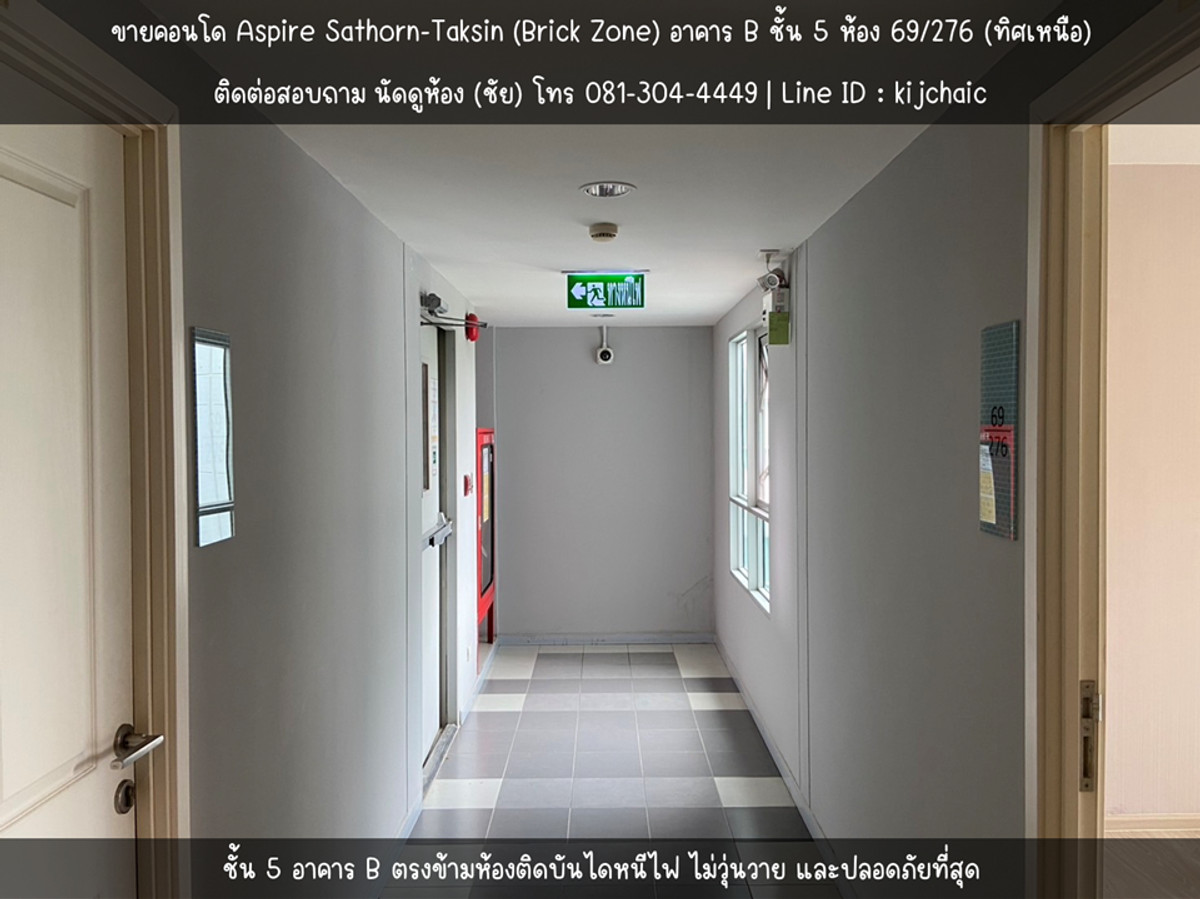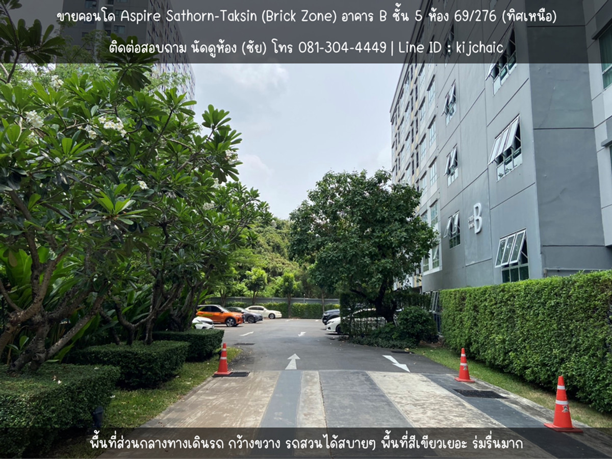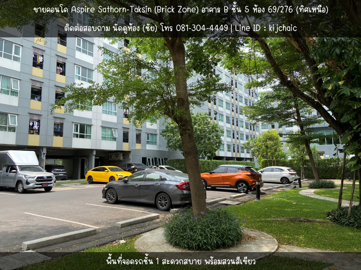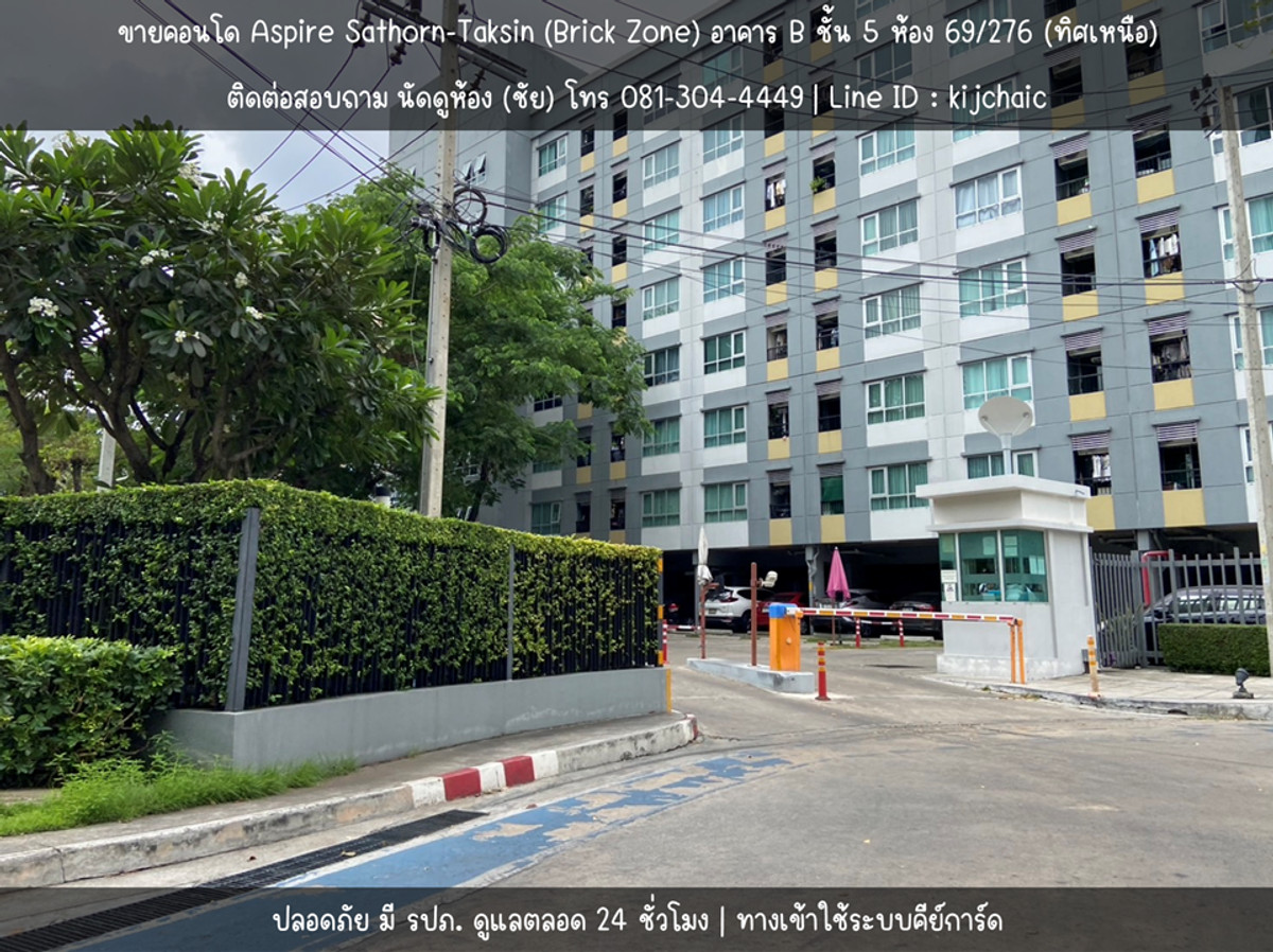 ขายคอนโดแอสปาย สาทร-ตากสิน (บริคโซน) คอนโด 8 ชั้น สงบ ร่มรืน ข้อมูลห้องคอนโด • ห้องสตูดิโอ ขนาด 28 ตารางเมตร • ห้องใหม่ สภาพสวย ไม่เคยปล่อยเช่า • ห้องเปล่า ตกแต่งได้ตามใจชอบ (ไม่ต้องรื้อใหม่) • ชั้น 5 หันหน้าทางทิศเหนือ (ไม่ร้อน) • วิวจากห้องไม่ถูกบล็อค ได้วิวสีเขียว และสระว่ายน้ำ เฟอร์นิเจอร์ภายในห้อง • ผ้าม่าน 2 ชั้น ติดตั้งเต็มความสูง • มุ้งลวดห้องนอน • มุ้งลวดห้องครัว • แอร์ Samsung 18,000 btu • อ่างล้างจานในห้องครัวพร้อมใช้ • ชั้นเก็บของในห้องครัว • กระจกนิรภัย กั้นส่วนเปียกในห้องน้ำ • เครื่องทำน้ำอุ่น Stiebel Eltron การเดินทาง • ใกล้รถไฟฟ้า BTS สถานีวุฒากาศ • มีที่จอดรถทั้งภายในและภายนอกอาคารถึง 40% สิ่งอำนวยความสะดวกโครงการ • ห้องออกกำลังกาย • ล็อบบี้แยกแต่ละอาคาร • สระว่ายน้ำระบบเกลือ • สวนสีเขียวล้อมรอบโครงการ • ร้านสะดวกซื้อ และร้านอาหารหน้าทางเข้าโครงการ • ระบบ Key Card ขึ้นลิฟท์ • ระบบ Key Card เข้าโครงการ • มี รปภ. ดูแลความปลอดภัย 24 ชั่วโมง ค่าใช้จ่ายการโอนของผู้ซื้อ • ค่าธรรมเนียมการโอน (ผู้ซื้อออก 1% และ ผู้ขายออก 1% • ค่าจดจำนอง ข้อมูลติดต่อ • โทร. Contact number (คุณชัย) • LINE : kijchaic หรือ เบอร์ Contact number