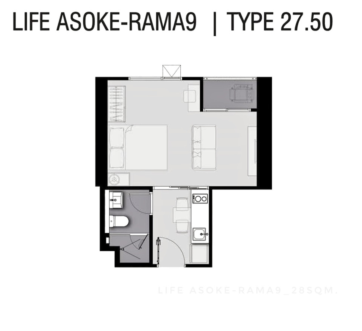 🎉For RENT-Studio 1 bedroom at Life Asoke-Rama9 fully-furnished near Asoke, Ratchadapisek • 28 sqm.,14 fl. Building A near the gate to MRT Phraram 9, Central Rama9, Fortune Town, Jodd fair market, Lotu
