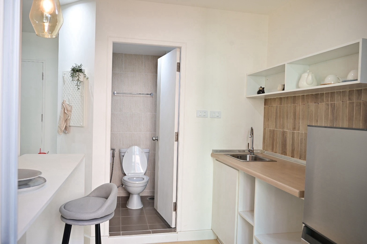 Lumpini On Nut 46 room, size 26 sq m. Price 1.45 million baht 🟢Size 26 sq m 🟢5th floor 🟢1 bedroom, 1 bathroom, 1 living room with kitchen counter zone 🟢 Air conditioner, yen cabinet, bed, wardrobe, dressing table, table, storage cabinet, shelves Facilities within the project. Lumpini Onnut 46 🌳📢 * 🏋🏻 Fitness * 🏕️ Green garden (garden) * 📚 Library * 🎥 CCTV / ACCESS CARD system * 🛵 There is parking.