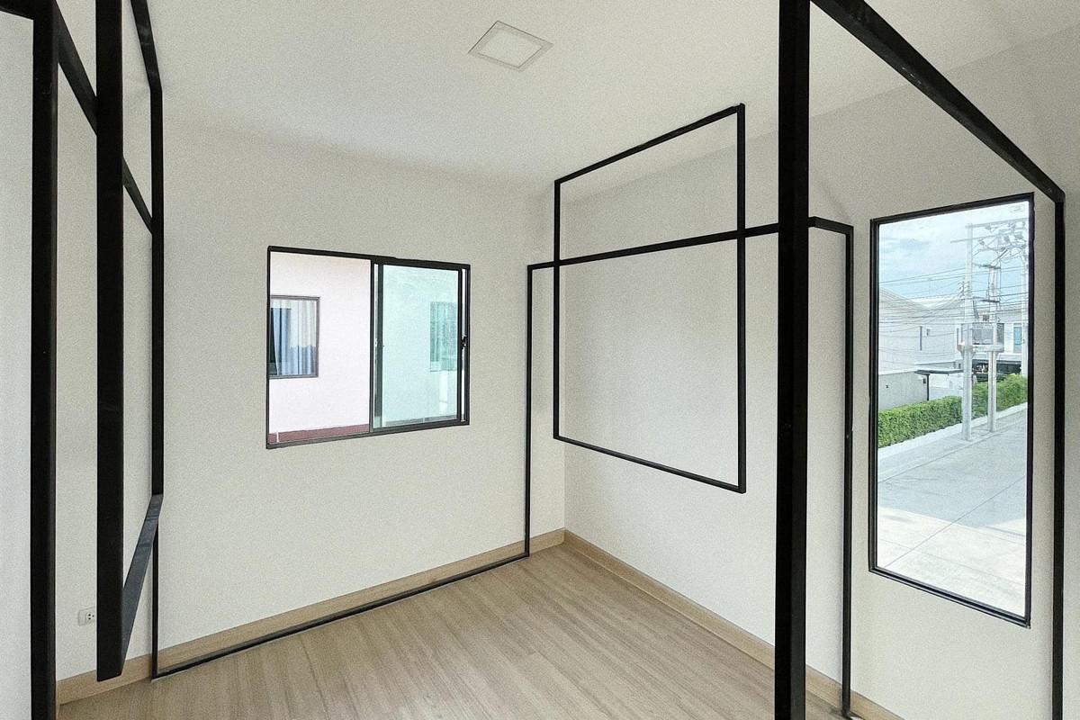 Corner plot | Big land | Beautiful house ready to move in 📍 Bangna-Wongwaen 📐 Land 42 sq m (bigger than standard house) 🏠 2-story townhouse 🛏 3 bedrooms | 🚿 2 bathrooms 🚗 Parking for 2 cars 2-story townhouse, fully decorated inside. Adding a kitchen to the back of the house and a roof for parking in front of the house. House size 22 sq m., land next to the house 20 sq m., usable area 125 sq m. Install Solar Cell and EV Charger P.S. Ready to move in in April. (Photo taken before there were residents) If interested, contact Tel : Contact number Line : l3ool2a