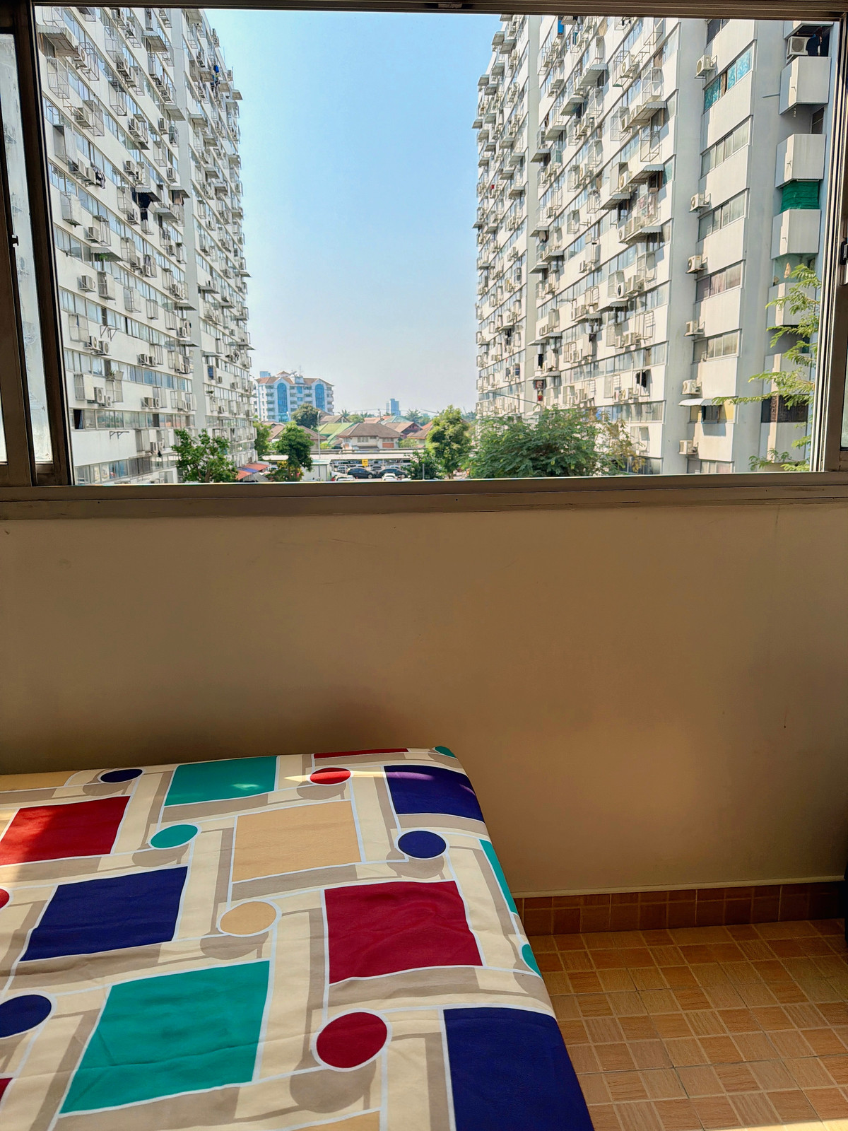 ห้องว่างให้เช่าคอนโดอิมแพคเมืองทองธานี Popular Condo เมืองทอง อาคาร C2 ชั้น 3 วิวด้านนอก อากาศถ่ายเท อยู่ตรงข้ามตึกกสิกรไทยแค่ข้ามถนน หน้าตึกมี 7-11 ห้องพร้อมเฟอร์นิเจอร์พร้อมเข้าอยู่