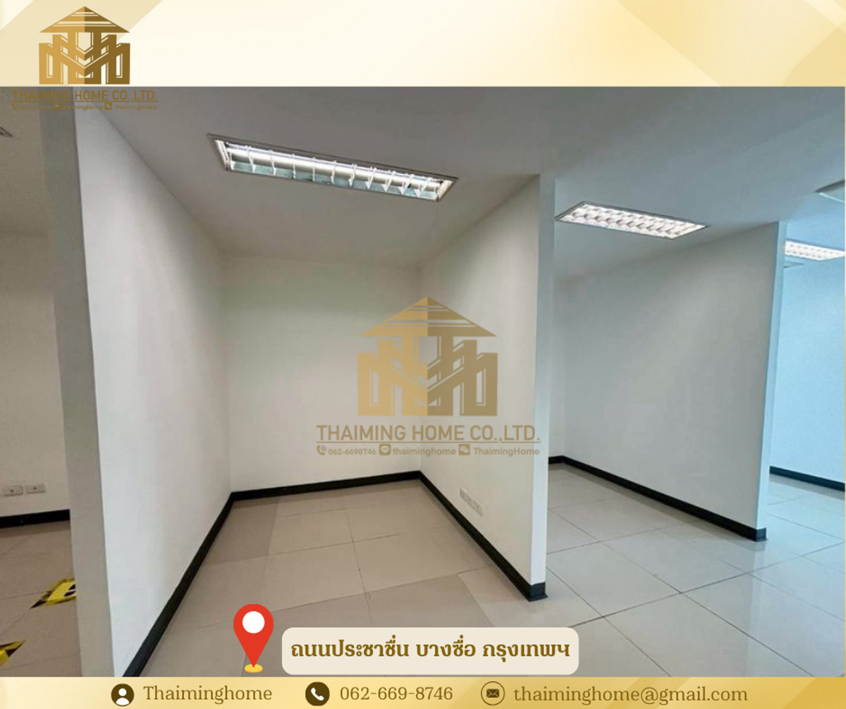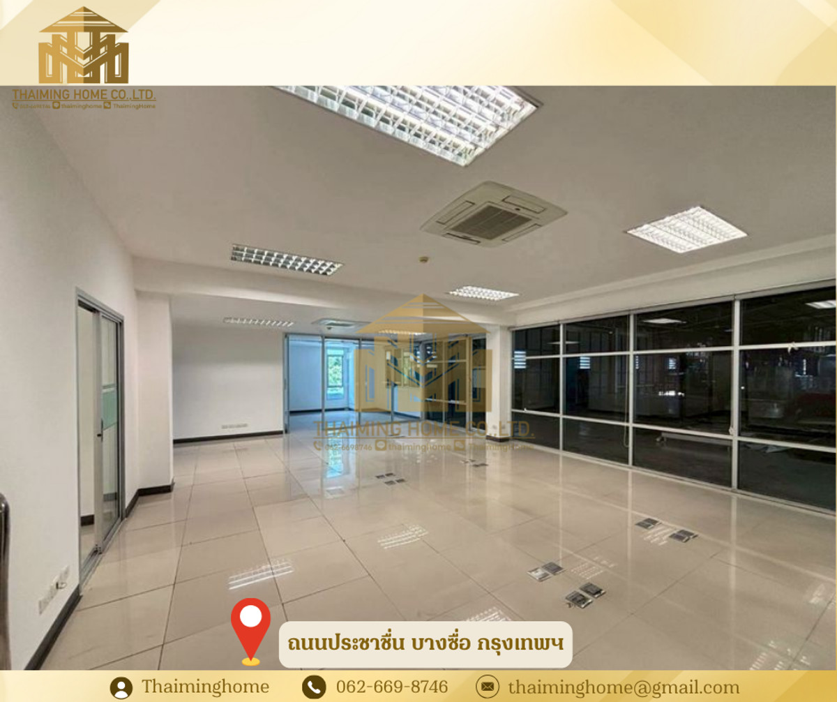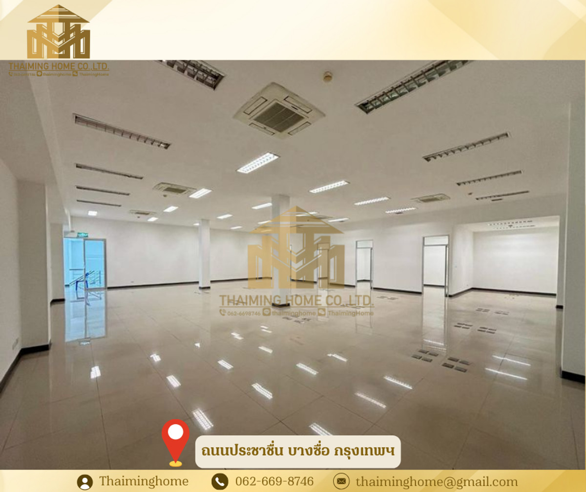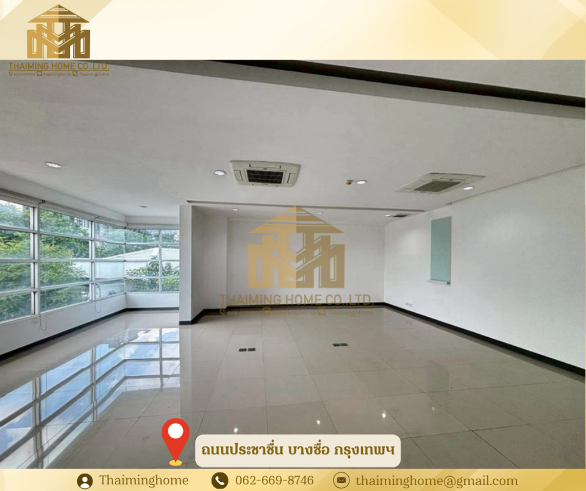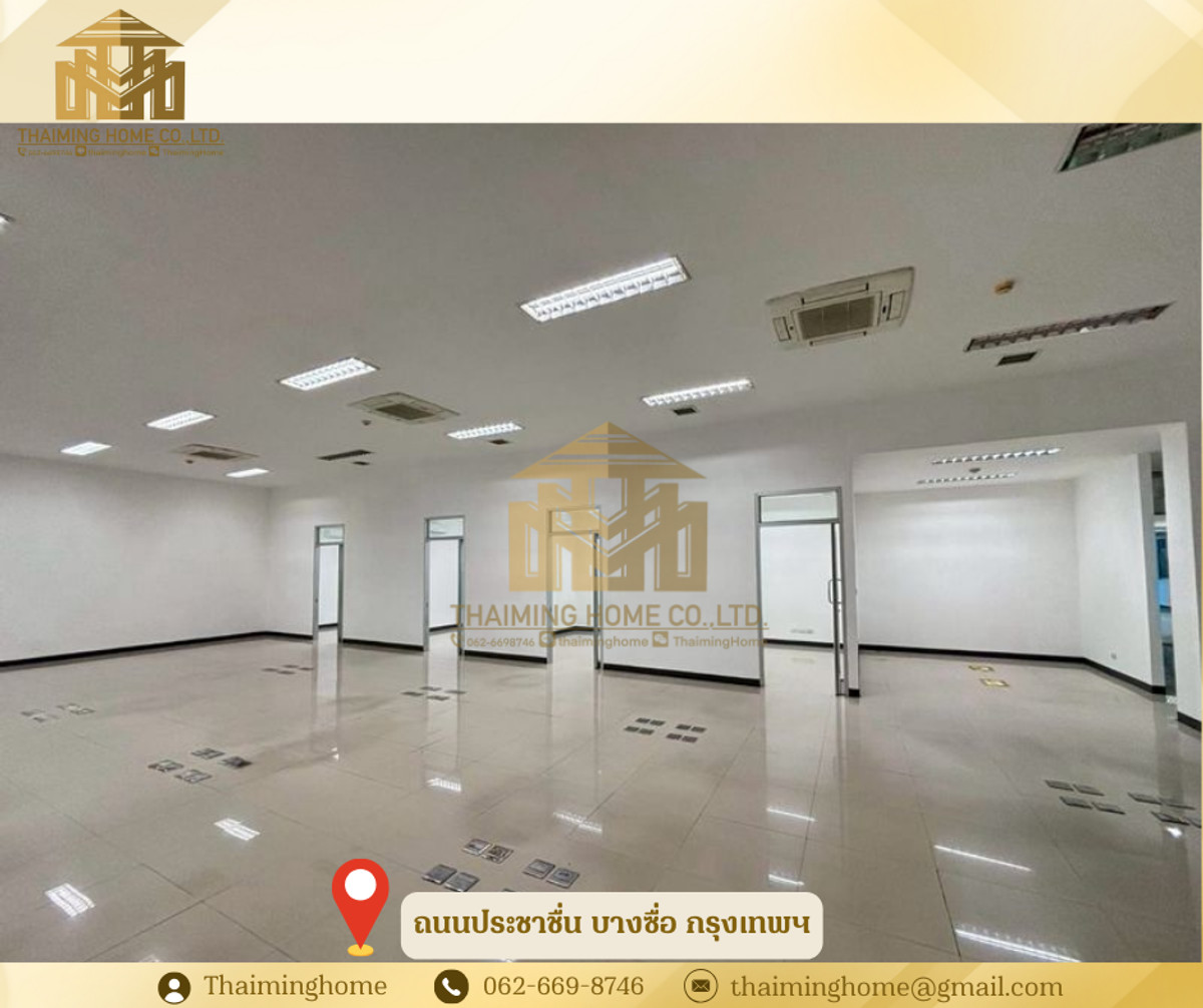 Home office for rent in Bang Sue, Bangkok. Size: 1,282 sq m. (Property Code: TT4-080126) Details: - Size: 1,282 sq m - 2-story building - 2-story layout - Upper floor is partitioned into rooms. No elevator, access via stairs. - Electricity: 7 THB/unit - Water: 20 THB/unit - Suitable for office, online business, live streaming sales, studio - High ceilings (3-5 meters) Nearby Amenities: - Convenient transportation, close to everything - PTT gas station and Pracha Chuen Community Mall - Kasemrad Pracha Chuen Hospital - Si Ratch Expressway Rental Conditions: - Minimum 3-year contract - 3-month security deposit - 1-month advance payment - Price: 280 THB per sq m --------------------------------- บริษัท ไทยหมิง โฮม จำกัด Thaiming Home Co.,Ltd. 泰明房园 房产公司 ----------------------- Contact ติดต่อ : Contact number Contact : Contact number คุณหมิง(中文) Line ID: thaiminghome Line ID: @thaiminghome https://lin.ee/PkkHwYv Wechat : ThaimingHome E-mail : Contact email -----------------------