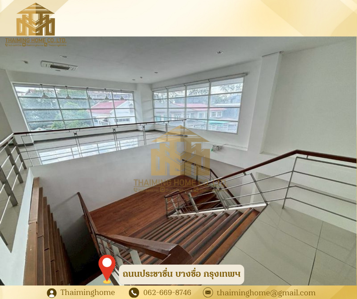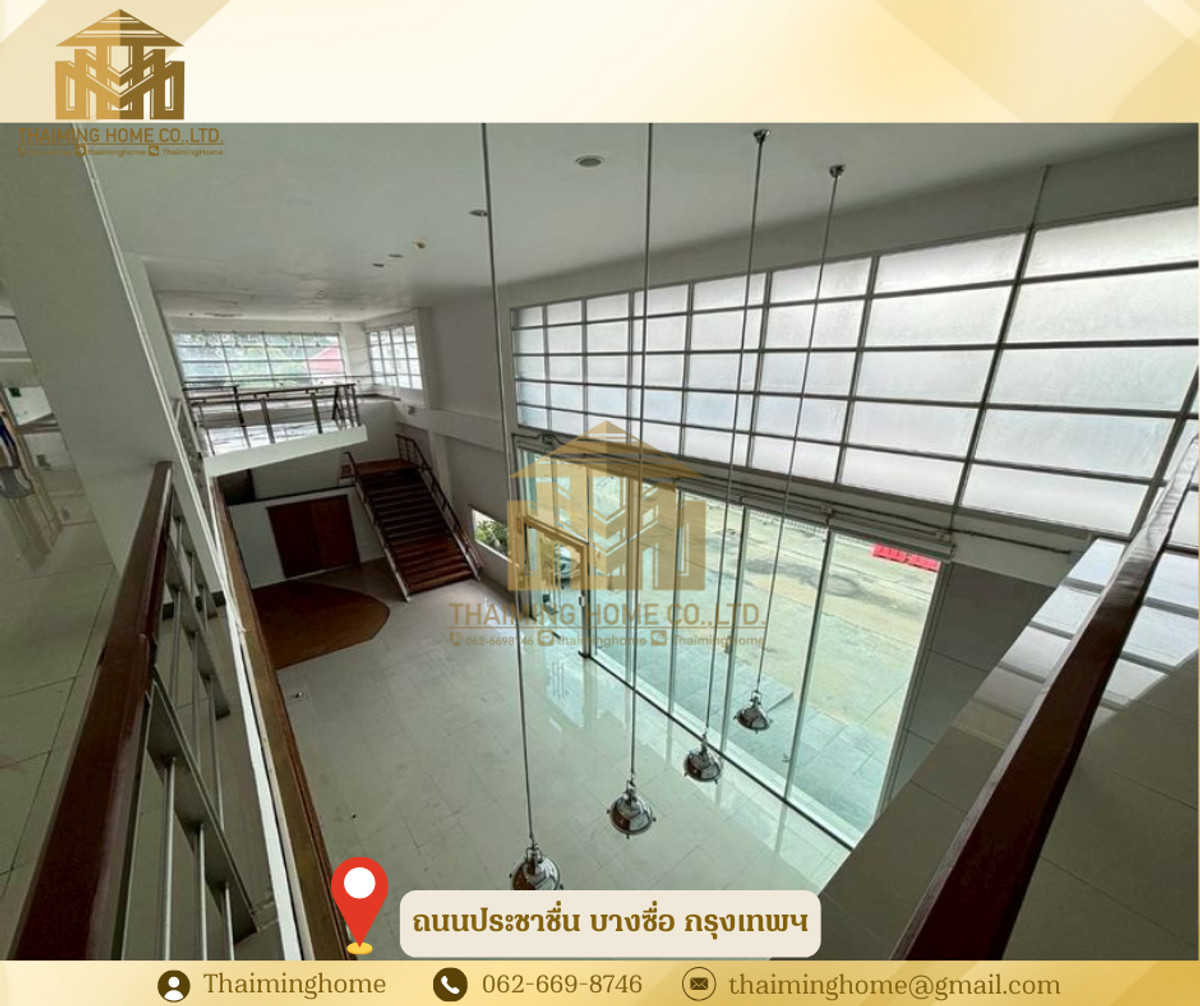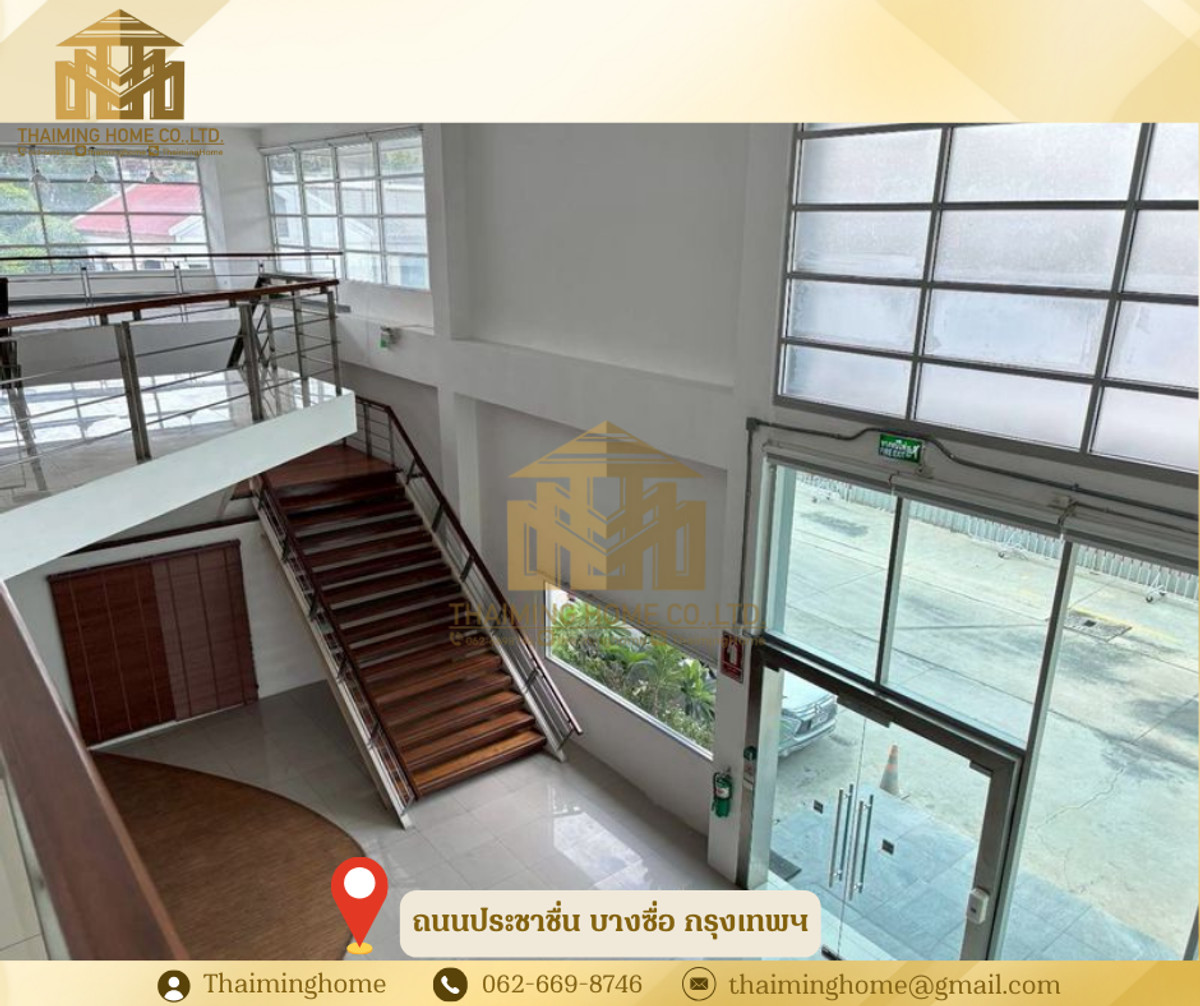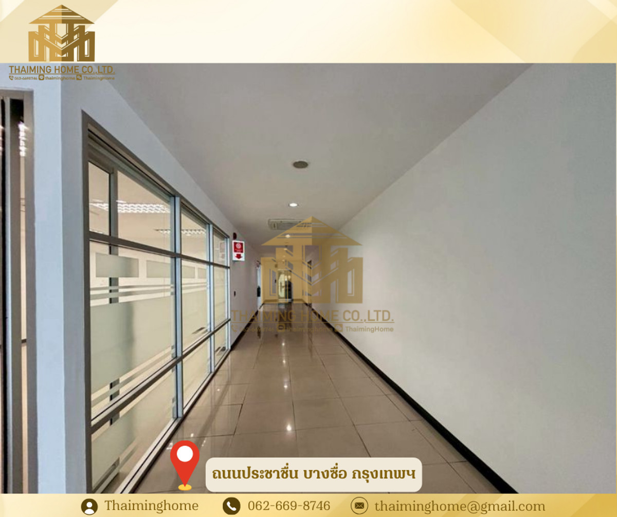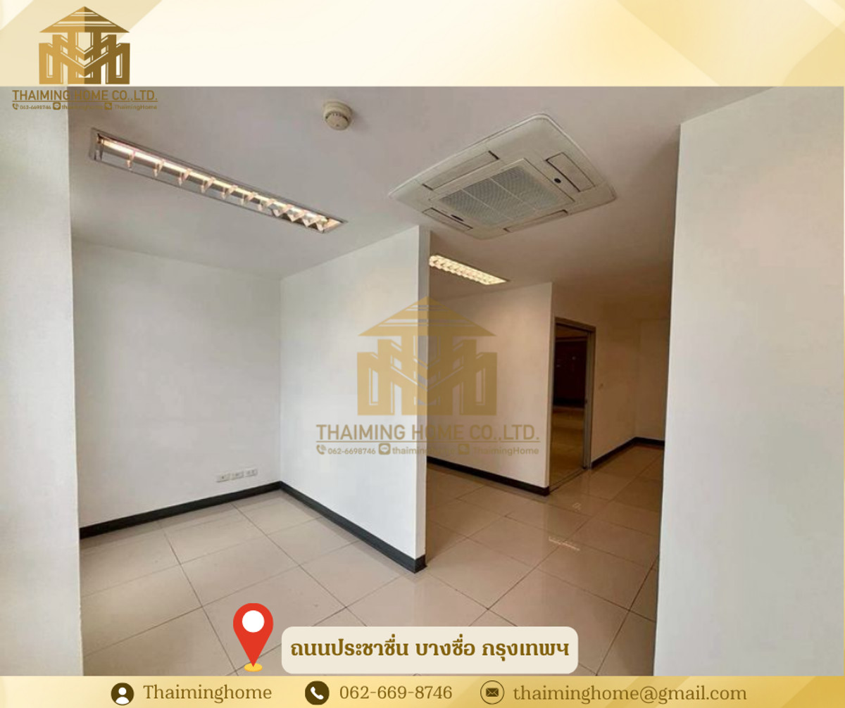 Home office for rent in Bang Sue, Bangkok. Size: 1,282 sq m. (Property Code: TT4-080126) Details: - Size: 1,282 sq m - 2-story building - 2-story layout - Upper floor is partitioned into rooms. No elevator, access via stairs. - Electricity: 7 THB/unit - Water: 20 THB/unit - Suitable for office, online business, live streaming sales, studio - High ceilings (3-5 meters) Nearby Amenities: - Convenient transportation, close to everything - PTT gas station and Pracha Chuen Community Mall - Kasemrad Pracha Chuen Hospital - Si Ratch Expressway Rental Conditions: - Minimum 3-year contract - 3-month security deposit - 1-month advance payment - Price: 280 THB per sq m --------------------------------- บริษัท ไทยหมิง โฮม จำกัด Thaiming Home Co.,Ltd. 泰明房园 房产公司 ----------------------- Contact ติดต่อ : Contact number Contact : Contact number คุณหมิง(中文) Line ID: thaiminghome Line ID: @thaiminghome https://lin.ee/PkkHwYv Wechat : ThaimingHome E-mail : Contact email -----------------------