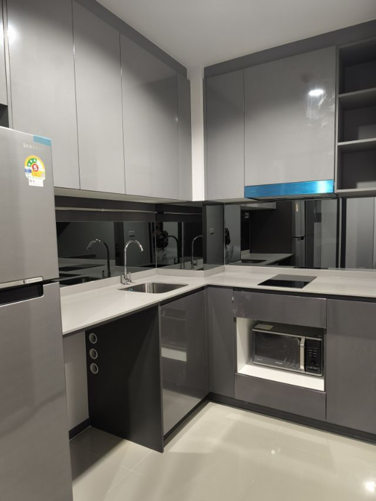 2 bedrooms, 1 bathroom, 45 sq m, 24th floor 32000/month 2 months deposit 1 month in advance Minimum 1 year contract Furniture - Sofa - Dining table + chair - TV shelf - Bed + mattress Electrical appliances - TV - Refrigerator - Microwave - Air conditioner - Water heater - Electric stove + exhaust hood