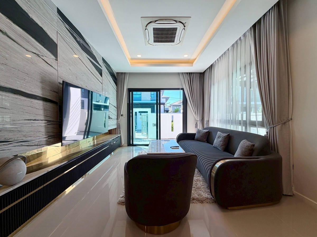 🏡 PATTA VILLE – Luxury Single House for Rent | Siam Country Club, Pattaya ✅60,000 THB/Month Modern 2-storey home in a premium residential project—fully furnished, spacious, and ideal for family living. Conveniently located near Big C Extra, Bangkok Hospital Pattaya, and Siam Country Club Golf Course. Property Details • 4 Bedrooms | 4 Bathrooms • Land size: 260 sq.m • Living area: 252 sq.m • Fully furnished throughout • European-style kitchen + built-in oven • Covered parking for 2 cars • Electric gate Project Facilities • Clubhouse & fitness center • Swimming pool • Garden area • Children’s playground • 24-hour security system with CCTV & access control