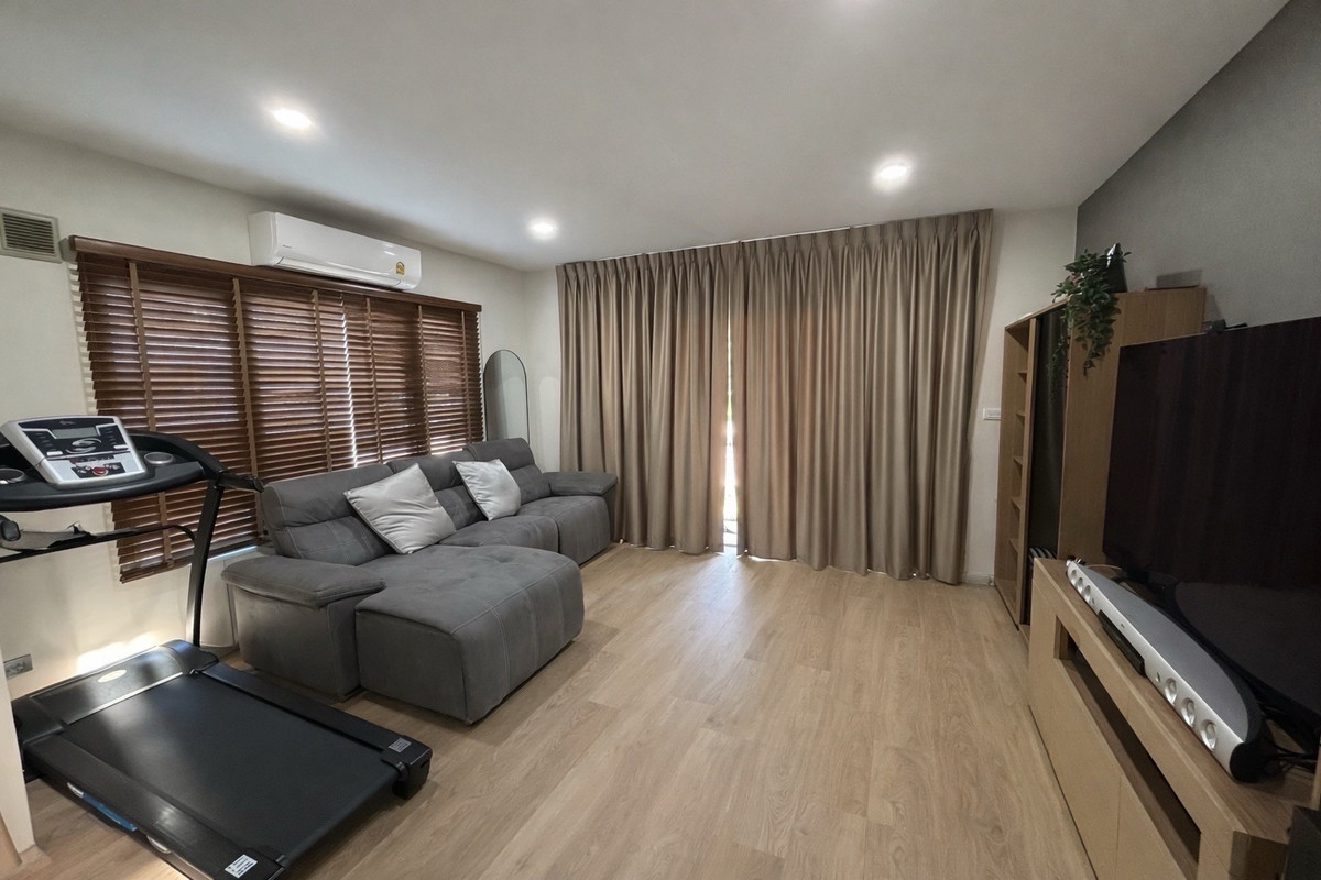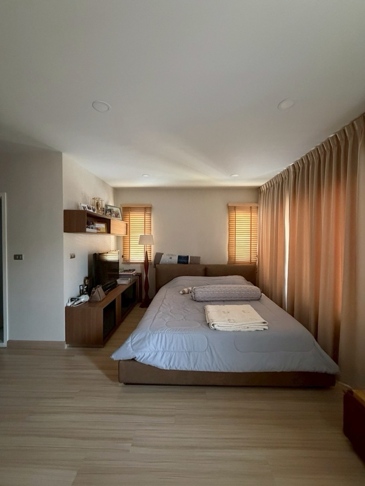 House for sale, Perfect Place 4 Ratchaphruek project, Property Perfect brand, corner house, beautiful and very new house • Land area 67.5 sq m • Usable area 175 sq m • 3 bedrooms, 3 bathrooms, 1 kitchen , 1 living room, 1 office, 2 car parking spaces • Move in August 2022 • Add a glass door to the office, add a kitchen counter. Location & Surroundings) • Location In front of the village, next to the main road. Ratchaphruek Road, inbound, Bang Rak Noi Subdistrict, Nonthaburi Province • Location highlight Located in the low-rise housing project zone. and surrounded by large fruit orchards There are some traditional communities living here. The atmosphere therefore remains calm. Near the sea airport area where there are flea markets, fresh markets, Ton Sak market, near a large department store like Central Rattanathibet. On the other side is Bang Yai that has Central West Gate, including Hyper Market and markets. Driving is most convenient. Or its easy to take the Purple Line as well Convenient for traveling on the Ratchaphruek and Rattanathibet lines. Because there is a public alley that easily shortcuts to the main road. Suitable for people who mainly focus on traveling on these 2 main roads. It is another highlight of the project that is different from the housing project along Ratchapruek Road Ministry of Commerce: 6.6 km. The Walk: 6.7 km. Central Rattanathibet: 7.3 km. Owl Market: 7.3 km. Big C Wong Sawang: 7.9 km. Central West Gate ~8.3 km. Esplanade : 9.1 km. Tesco Lotus Rattanathibet : 9.2 km. HomeWorks : 9.8 km. The Crystal SB : 10.3 km. Big C Bang Yai : 10.6 km. Tesco Lotus Bang Bua Thong : 10.6 km. Big C Rattanathibet : 10.8 km. Home Pro Ratchaphruek : 11.5 km. Central Plaza Westgate : 11.8 km. Home Pro Chaengwattana : 12.9 km. Major Cineplex : 13.0 km. The Crystal PTT : 14.4 km. Home Pro Ratchaphruek : 14.8 km. Tesco Lotus Bang Yai : 16.3 km. Kasemrad Hospital : 10.6 km. Pakkret Hospital : 14.2 km. Royal Irrigation Department : 11.9 km. Chaloem Phrakiat Government Center : 20.2 km. Triam Udom Suksa Pattanakarn School, Nonthaburi : 8.5 km. Suankularb School, Nonthaburi : 15.5 km. Kasetsart University: 16.4 km. STOU: 18.8 km. Saint Johns University: 20.1 km. • Facilities in the project * There is a large Master Clubhouse shared with 5 other projects in the Property Perfect group together * Within the project there will be a public park of approximately 1.5 rai in the area in front of the project * Security is provided at a general level, namely there is CCTV. Security guard 24 hours, Key Card Access and the project fence is 3 m high • Price & Terms) * Project common fee is 26 baht per square wa * Selling price 7,490,000 baht