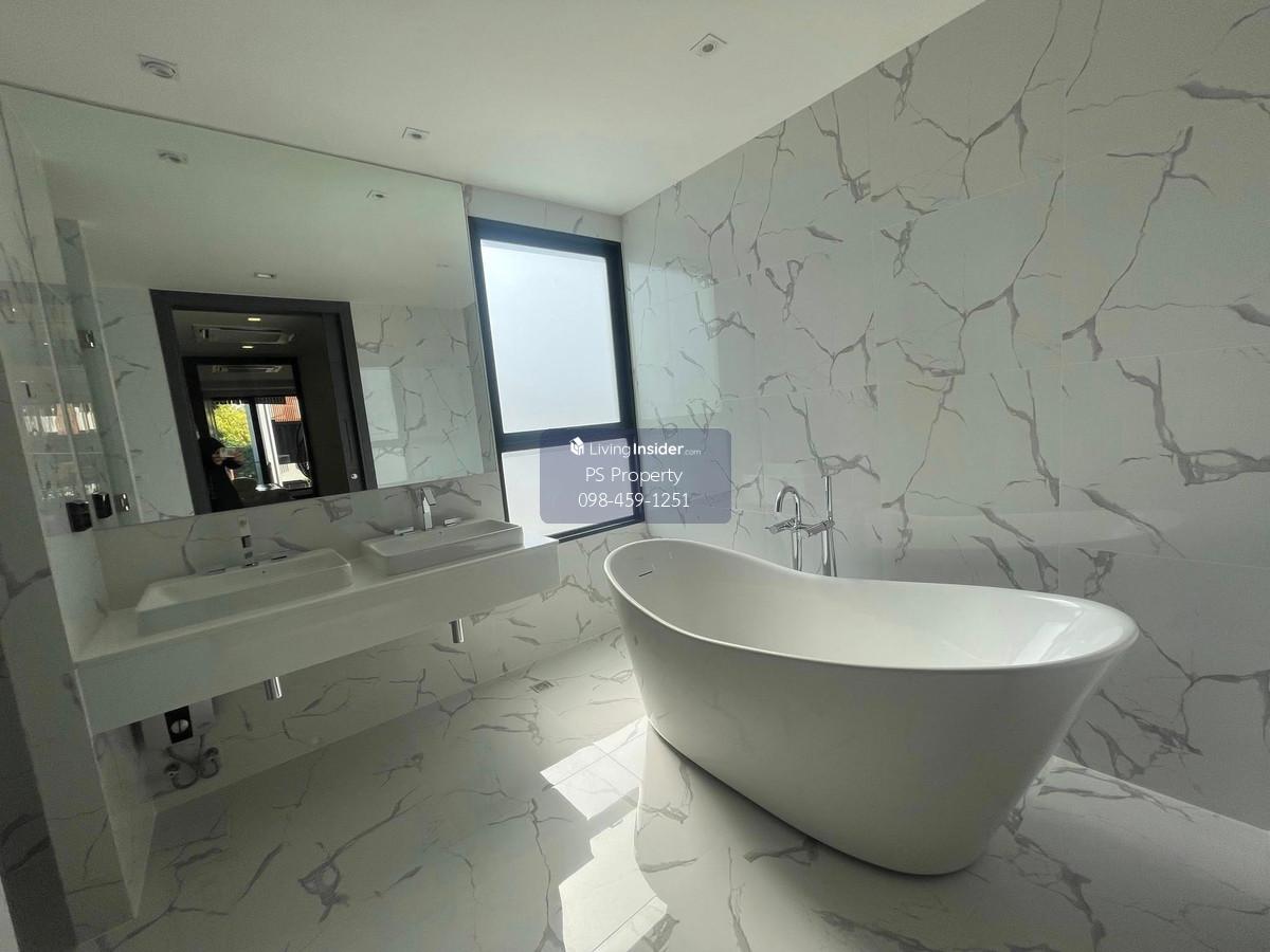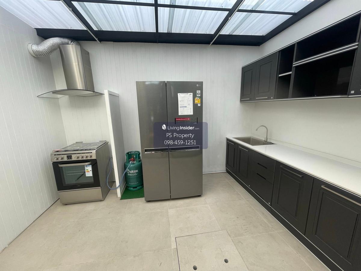 Price: 130,000 baht / month Usable area: 300 sq.m. Area: 30 sq.w. Floor: 4 4 bedrooms / 4 bathrooms / 2 living room / 2 parking spaces Amenities: CCTV, key card Access, fitness center, swimming pool, 24/7 security guard, co-working area, common area. Furniture included: TV, microwave, sofa, refrigerator, bed, air conditioner, water heater, Smoke Dispenser, shelf, TV cabinet, wardrobe, center table. House for rent! convenient transportation, near BTS, near the expressway, fully furnished Ready for viewing. Interested please contact: 📞Call center: Contact number 📱Hotline: Contact number 📲Whatsapp: Contact number 🖱️Line: @psproperty https://lin.ee/d8bpOBs Website: https://www.ps-property.co.th/