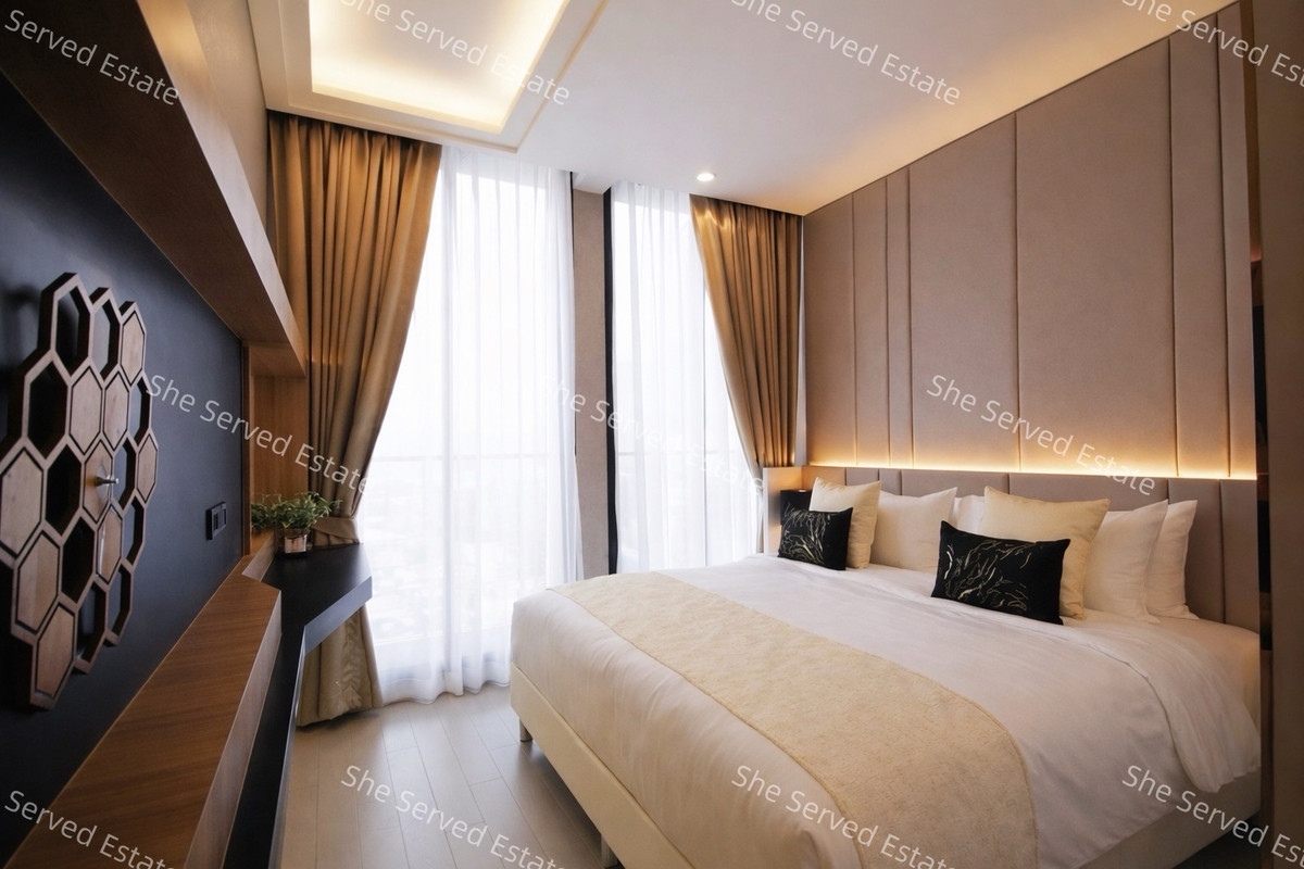 Noble Ploenchit • 55 square meters • Building C • 1 bedroom, 1 bathroom, 1 living room • 16th floor • Private elevator • Beautifully decorated, luxurious, built-in throughout the room • Complete with