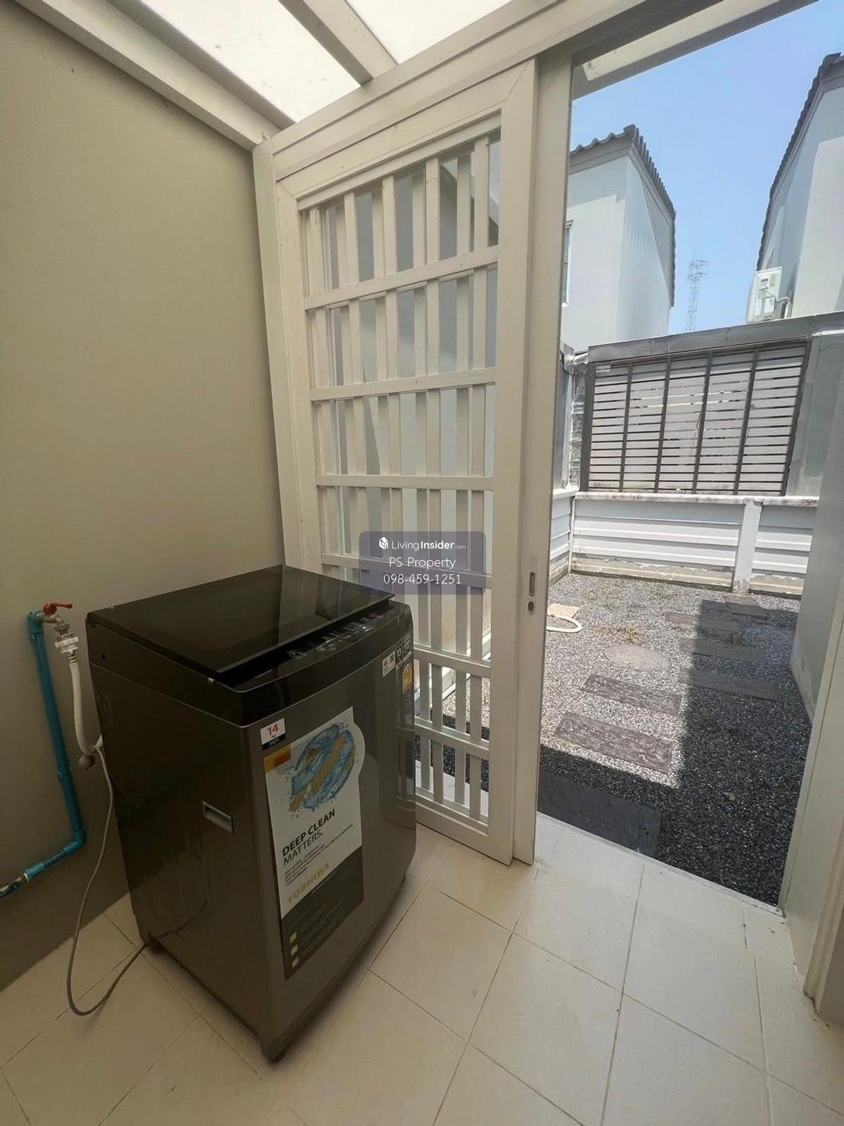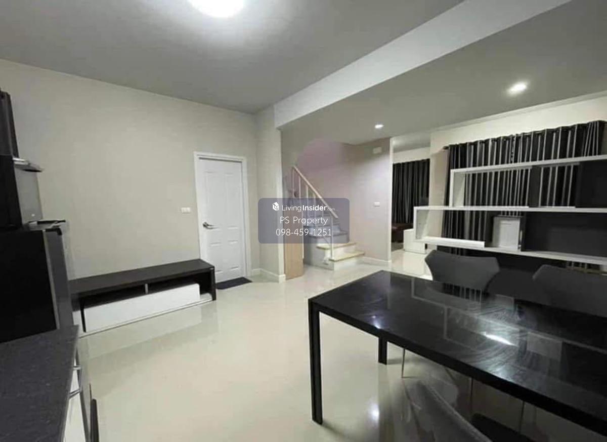 Price: 36,000 baht / month  Usable area: 134 sq.m.  Area: 28 sq.w. Floor: 2 3 bedrooms / 2 bathrooms / 1 living room / 2 parking spaces Amenities: CCTV, key card Access, fitness center, swimming pool, 24/7 security guard, co-working area, common area. Furniture included: TV, microwave, sofa, refrigerator, bed, air conditioner, water heater, Smoke Dispenser, shelf, TV cabinet, wardrobe, center table. House for rent! convenient transportation, near BTS, near the expressway, fully furnished Ready for viewing. Interested please contact: 📞Call center: Contact number 📱Hotline: Contact number 📲Whatsapp: Contact number 🖱️Line: @psproperty https://lin.ee/d8bpOBs Website: https://www.ps-property.co.th/