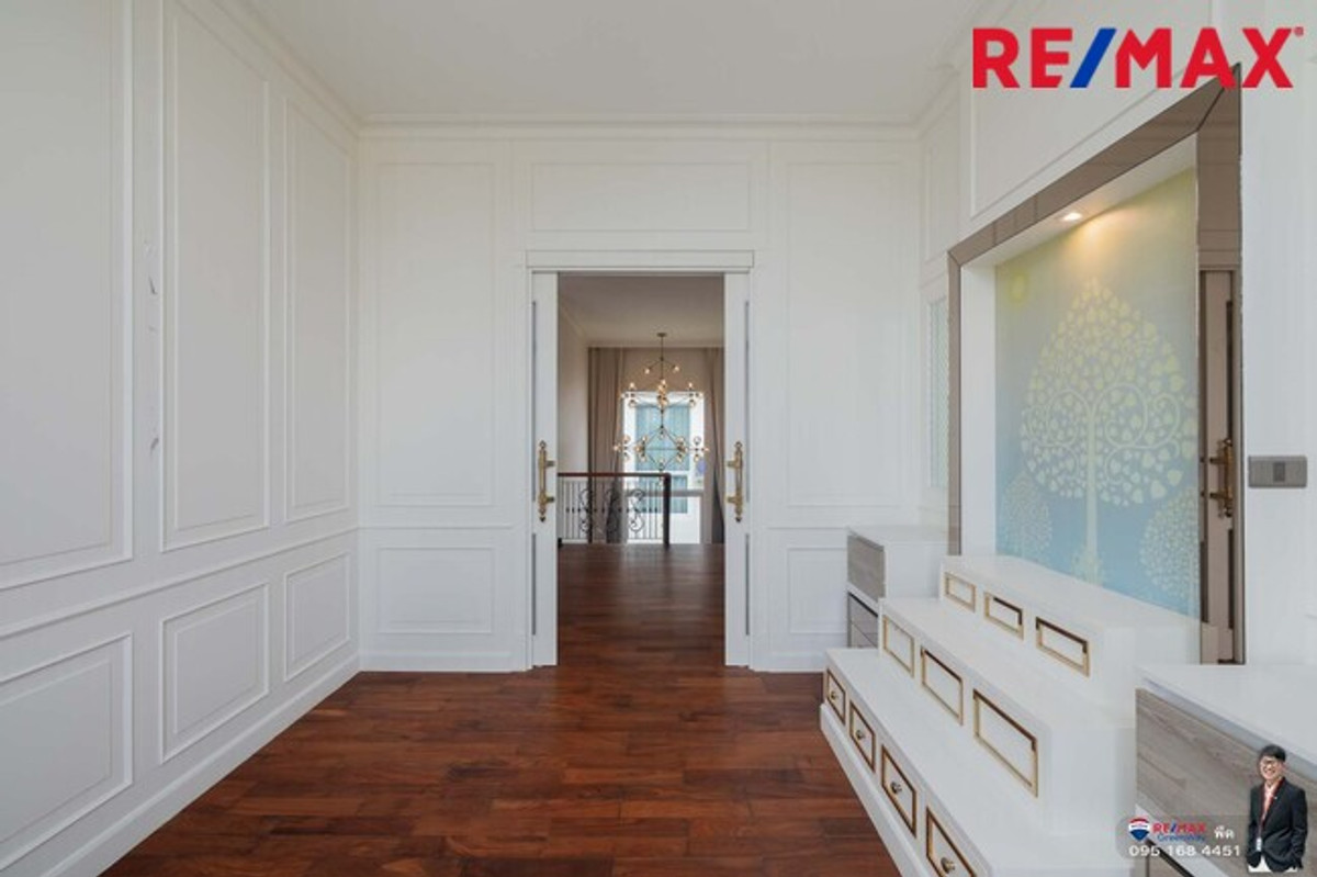 - Land size 150.10 square wah, usable area 424 square meters - 4 bedrooms, 5 bathrooms, 1 living room, parking for 4 cars - TYPE Versailles (corner) Private Zone - Auspicious house number 8, sum gets the number 8 - Its a corner house that is in the inner zone and has a lot of privacy. and has a larger area than other plots in the project - The garden around the house has many types of large trees that, in addition to providing shade, The owner also intended it to be an auspicious plant. And designed this area for holding parties and gatherings, which is a connection point to the Common Area that provides a rather spacious area. This makes this area, if you look at it from inside the house, you will have views of the garden on all 3 sides, including the front of the house, the side, and the back of the house as well - 1st floor, the interior is decorated in white tones. Entering will be a living area. Complete with a dining area that has a perfectly designed counter and wine refrigerator - connected to the mN built-in cabinet area designed for collections to store bags or collectibles - There is 1 bedroom with its own bathroom. that can be changed to Guest bedroom/elderly bedroom/or work room - The back zone has a Thai kitchen that can do heavy cooking. Complete with a maids bedroom with an ensuite bathroom that is separated into sections - But whats more interesting than the Common Area on the ground floor is the size of the Family Area on the 2nd floor, which is considered quite large. Suitable for families who may have to welcome guests often. Guests can be received in the Common Area on the ground floor, and the rest of the house members also have a large Family Area where they can sit and relax in peace. - On the 2nd floor, there are 3 more bedrooms, all 3 of which have their own bathrooms and are quite large. along with another Buddha room, which is the Buddha room part It is arranged according to Feng Shui principles. By the top number of teachers at the national level Project details - The project is on a land area of ​​approximately 43 rai, with only 77 units, developed by Glodenland - European style design. It was inspired by the churches and palaces of Monaco. (southern France) - which will be reflected through various parts The entrance arch was built in a grand and luxurious style. Upon entering, there will be decorations and fountains in the Clubhouse area, which will look like a palace. It has a high dome and is a large building. And there is a lake too. which helps create a pleasant atmosphere Whether its during the gym or while sitting. You will also be able to see the lake floor outside. - This central Clubhouse can be reserved for hosting receptions with legal entities offered for sale at a price of 39,500,000 baht only - (Common fee 540 baht/sq m) Position : - maps.app.goo.gl/yJefTJ8qsqPjY7kG8 If interested, ask for additional details - Piraya Watcharanuwatkul (Peak) - Call/IDLine: Contact number Google Maps - maps.app.goo.gl/n1E8gfhYS8eWwT6w6 You can see additional details of other properties at