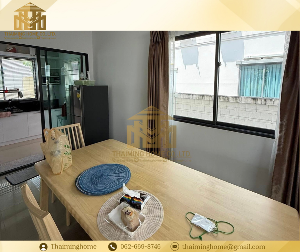 แ ✅ Details - Twin houses, all furnished, ready to go. - The usable area is 147 square meters. A total of 38 square meters. - Three bedrooms, two bathrooms. - 1 Guest Room I1 Work Room I1 Kitchen (glazed) • There's land around the house, the whole Bu-in house, good wood material. • have the house cleaned and air-conditioned • Furniture. - Main bedroom: a six-foot bed, a walk-in closet. - Two small bedrooms: built in bed + closet - Living room: sofa bed, home theater set, dining table. - Kitchen: Buin Kitchen, refrigerator, Coway, equipped with a water purifier. - Workrooms and Server rooms are designed when digging up Bitcoin. • Electrical appliances. - Four air conditioners. - The refrigerator. - a machine that can be baked - Electric stove, hood, smoke inhalation in the kitchen. - Digital doorlock - Electric fence door + remote • the middle part of a project - Garbage collection for two days a week. - a modest garden - Security. Twenty-four hours. And have regular surveillance. 🚇 Nearby Locations - Bangna of Megabangna - Central Bangna - Assumption University Bangna Campus - Bangna Demonstration School - Bangna Hospital ☑️ Purchase/Rental Conditions - a one-year minimum contract - a two-month advance on one's insurance - The rent is only 20,000 baht a month. ----------------------------------------------------------------- บริษัท ไทยหมิง โฮม จำกัด Thaiming Home Co.,Ltd. 泰明房园 房产公司 ------------------------- Contact ติดต่อ : Contact number Contact : Contact number คุณหมิง(中文) Line ID: thaiminghome Line ID: @thaiminghome https://lin.ee/PkkHwYv Wechat : ThaimingHome E-mail : Contact email -----------------------------------------------