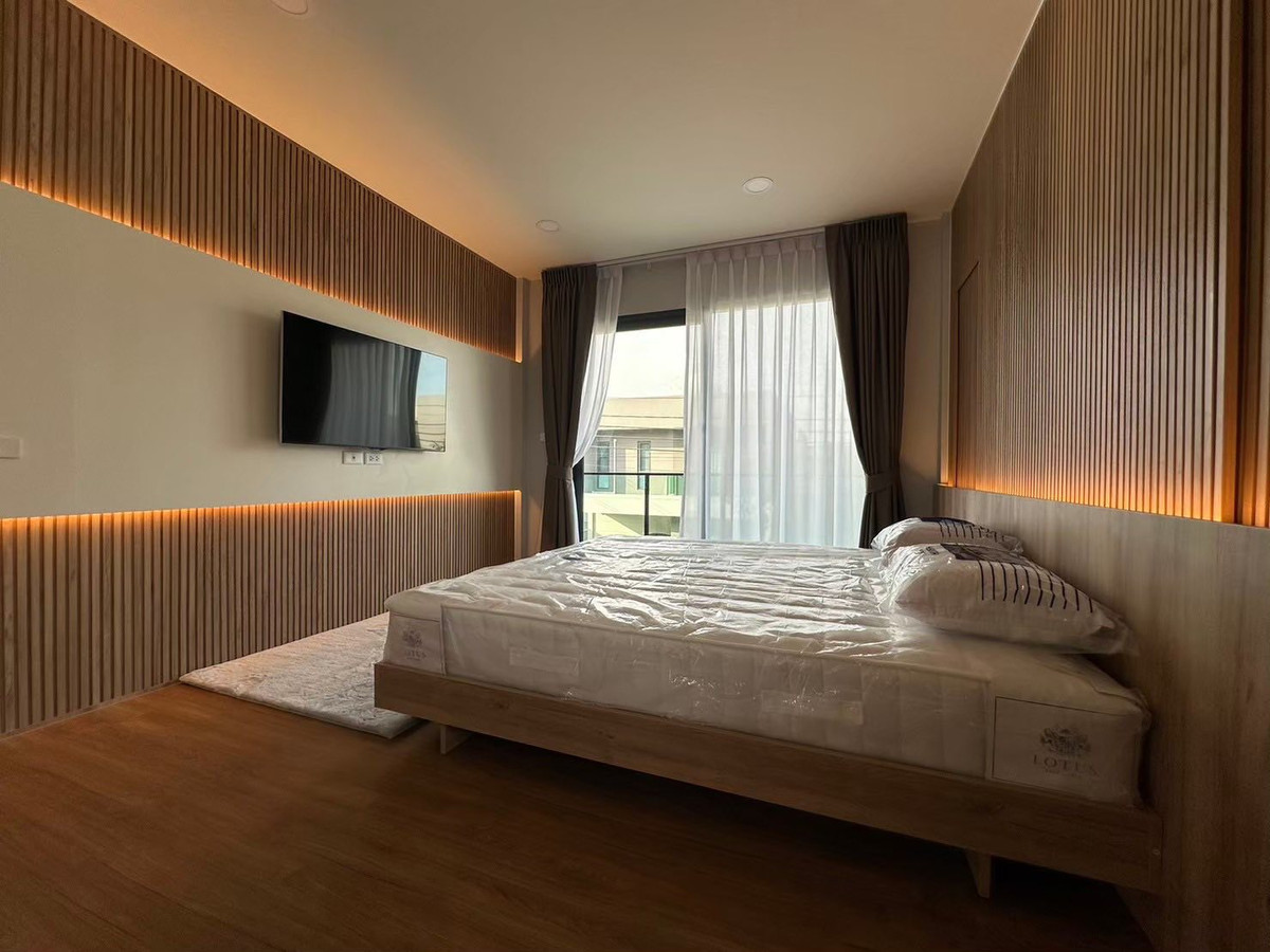 Centro Bangna (FOR RENT) Ref.no : M669 Details : - Type: 2-story detached house (new project) - Land size: 50 square wah - Usable area: 164 square meters - Layout: 3 bedrooms, 3 bathrooms - Parking: 2 cars - Decoration: Beautifully decorated in "Cozy style. Minimal" - Decorated: Fully furnished - Ready to move in! Including electrical appliances: • 2 televisions • Air conditioning in every room • Microwave & oven • Electric stove • Refrigerator • Washing machine & dryer • Water heater in every bathroom • Drinking water filter Project facilities: • Salt system swimming pool & childrens pool • Fitness center / gym • Playground & common garden • 24-hour security system & CCTV •Digital door lock • Full house burglar alarm system Nearby places: • Mega Build, IKEA build • Concordian International School • Ratwinit Bang Kaeo School • Muang Kaew Golf Course • Contract for at least 1 year • Price includes: Common area fee, gardening service and air conditioning cleaning (2 times/year) * Ready to move PRICE : 75,000 baht (2 months deposit, 1 month advance) (2 months deposit, 1 month advance) Interested in making an appointment to see the project / request additional details See the code at (Ref.no : M669 )or you can capture the screen Tel : Contact number (Mild) Line@ : @mfirst AddLine : https://lin.ee/SaaVHhA