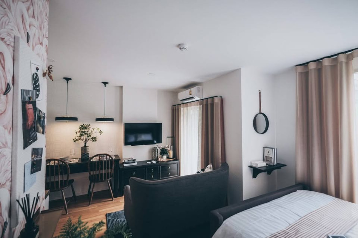 📍 Ready to move in Condo Lumpini Place Bangna Km.3 (Lumpini Place Bangna Km.3) Code: RC1808 1 bedroom, 1 bathroom, 2nd floor, Building C, size 22.5 sq m. Fully furnished and electrical appliances, just carry your bags and move in • Refrigerator • 1 18,000 BTU air conditioner (Brand new) • washing machine • Digital TV size Adroid TV can watch Youtube and Netflix • WIFI AIS Fiber • Microwave • 5 foot bed with good mattress • Sofa • Sideboard for TV • Work desk and built-in dining table with chairs • Built in wardrobe • Luxurious sunshade curtains, UV protection both in the bedroom. and living room For privacy and shade near Central Bangna near 🚄 Yellow Line Sri Udom near the expressway 🚭 No smoking in the room ❌ No pets allowed **Accepting reservations directly through the owners account only** 🚩 Rental price 9,000 baht/month 🚩 2 months warranty, 1 month in advance, 1 year contract --------------------------------------------------------------------- Agent Post Interested in viewing the room / would like to do marketing, contact to inquire at Call: Contact number (Guide AG) You can add Line Line ID: https://lin.ee/C1fAzlk