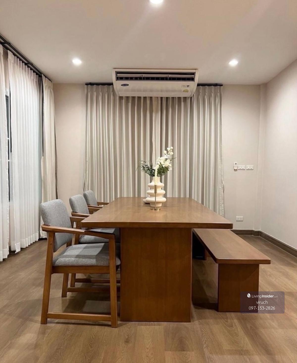 House details 🏡Usable area: Area approximately 340 square meters (153 square wah) 2 floors 🛏️ 4 bedrooms (with 6,5 foot bed bases and mattress including wardrobe and bedside tables for 2 large bedrooms) 🚽 4 bathrooms 🧺 1 Maids room 🛋️ 7 air conditioners, 3 water heaters, 4 door refrigerator, microwave, oven, gas stove + hood, 65 inch TV and sofa 🍽️Kitchen 2: Open kitchen and there is a Thai kitchen outside 🚘 Remote control gate, parking space and more 🏠✨Beautifully renovated and decorated, ready to move in Village amenities 🏊‍♂️Swimming pool 🎾Tesnis court 🌳Playground 🚔 Safety - Car registration to enter and exit the village - 24 hour security guard 🚫No pets allowed Full facilities Swimming pool Fitness near BTS,MRT Sridan Station Interested in Line account @841qqlnr(There is an account in front) Wechat Contact number WhatsApp Contact number Tel. Contact number