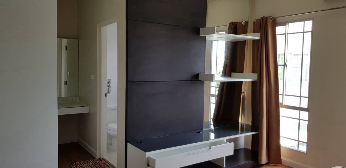Single house 220 sq m. Manthana Bangna-Wongwaen 2 , perfectly designed, suitable for both families and working people who need quality space ✔ 3 bedrooms, 3 bathrooms ✔ Parking for 2–3 cars ✔ Fully furnished. Just lift your bags and move in 🛋 Living area & complete kitchen – sofa + TV shelf – dining table – kitchen with stove, hood, bar counter 🛏 All 3 bedrooms – Beds – Built-in wardrobes – All mattresses 💰 Rent only 35,000 baht/month Minimum 1 year contract, payable before moving in: • 1 month rent in advance • 2 month security deposit Total 3 months, move in immediately 📍 Good location, convenient travel, quiet atmosphere Houses like this not often available for rent. It’s always reserve fast If you are interested in making an appointment to view the house, please contact us before you miss out on the right house for you 💫