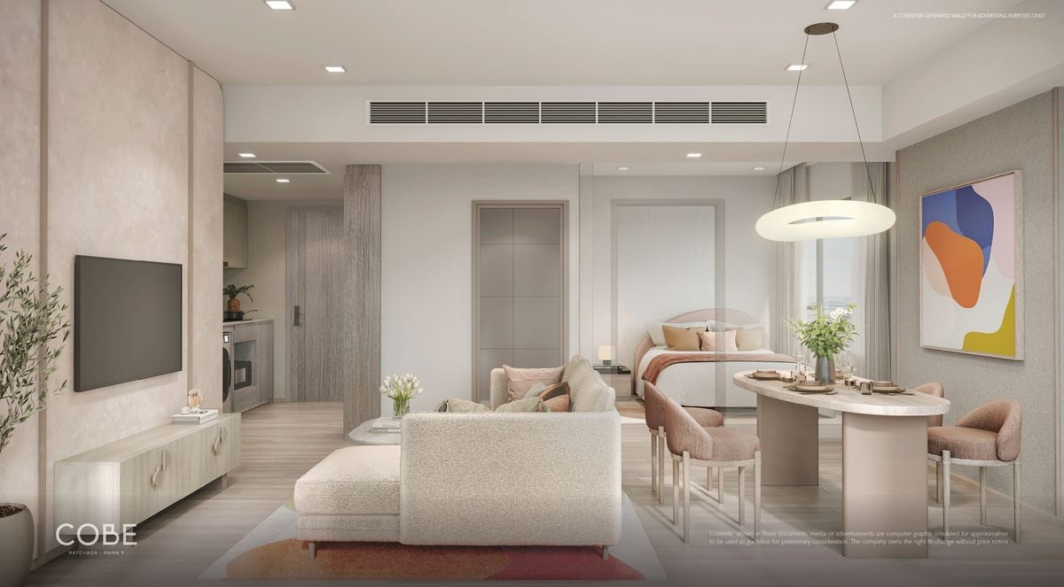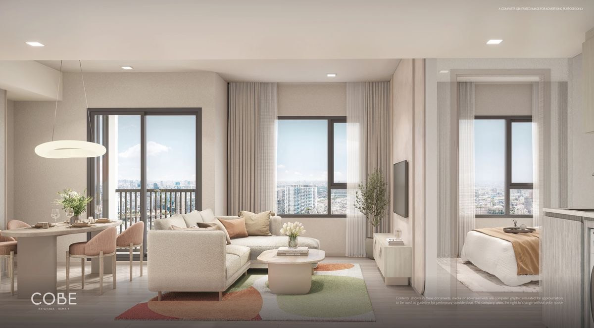 Details ** For sale: COBE Ratchada-Rama 9 project. Building H, 20th floor Type: 3 bedrooms, 2 bathrooms Size 92.81 sq m Parking for 3 cars** Contract price: 11,690,000฿ Completed and ready to move in 05/2026 Fully Furnished New condo in NEW CBD location with green space. Heart of Ratchada - Rama 9 Near Central Rama 9 / Fortune Town / Big C Ratchada / the street / H Tower / AIA Tower and others. Contact : Click to see Khun Fai's contact number. Line : lupin_1089 Tel: Contact number