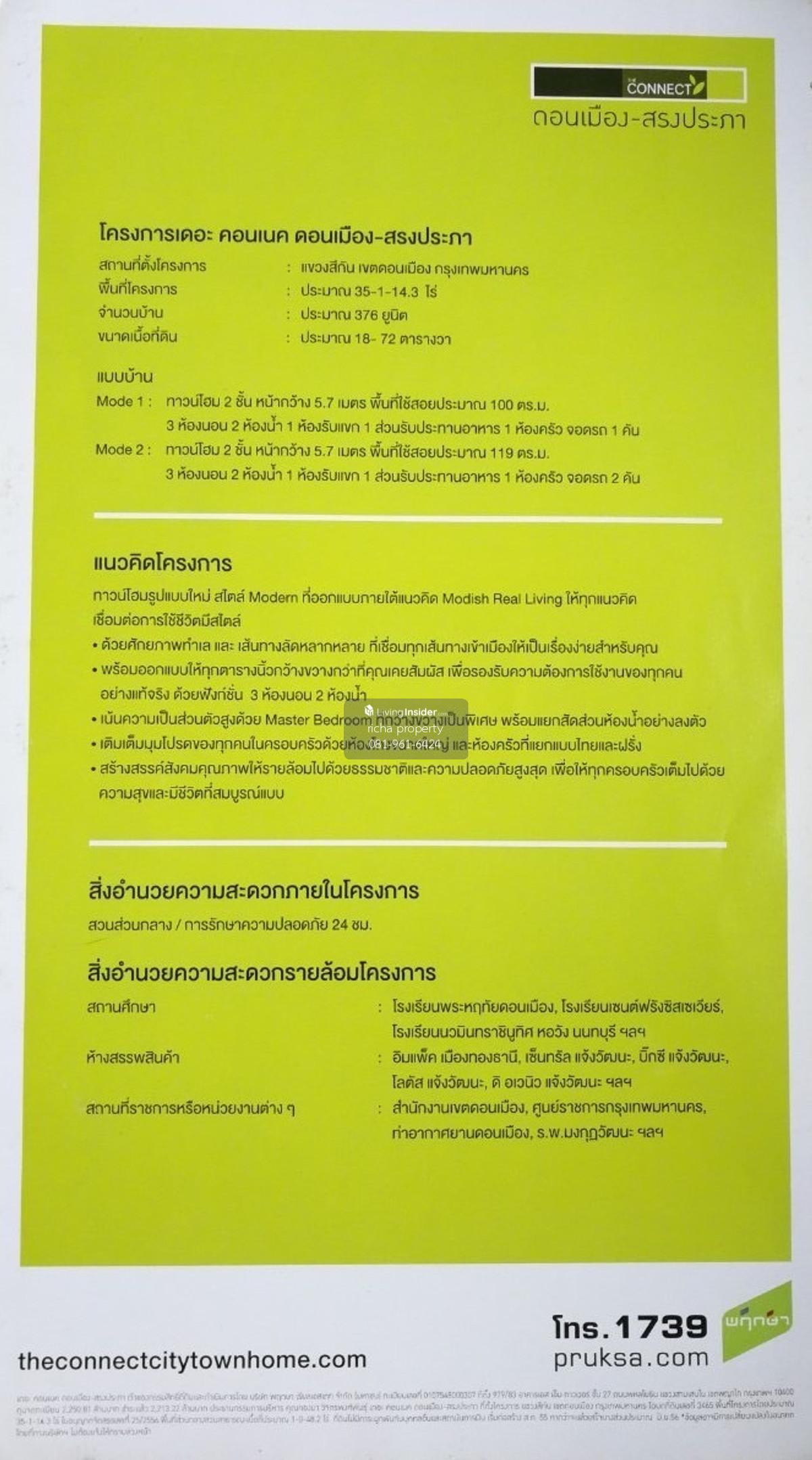 Urgent sale, second-hand townhome - good condition, back side, fully furnished, ready to move in , location Don Mueang-Songprapa. Chaengwattana . 🏡 The Connect Don Mueang-Songprapa . 25 sq m., usable area 120 sq m. 3 bedrooms | 2 bathrooms | 1 Thai kitchen | 4 air conditioners Parking for 2 cars, width 8 meters . 🔥 Price only 2.99 million (transfer fee 50/50) . ✅ Good condition, added to the kitchen and side of the house. There is a lot of space ✅ In front of the house, east ✅ Seven in front of the village. Behind the Ozone One market ✅ Near Bun Anan Market Kosum Ruamjai Market ✅ near Sacred Heart St. Francis Hospital ✅ near Phramongkut World Medical Hospital, Si Kan ✅ near Srisamarn Expressway, Don Mueang Airport, BTS Red Line ✅ near Robinson Srisamarn Happy Avenue ✅ 24 hrs. security guard, entry-exit, key card CCTV camera ✅ Common fee 30 baht/square wa, 610 baht per month 📍Location: https://maps.app.goo.gl/2ya61djhJyDNBjPo8?g_st=ic More details Contact number Line : @richa.property