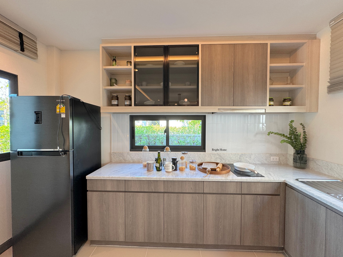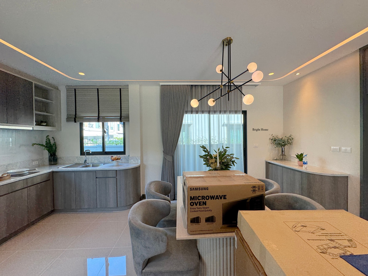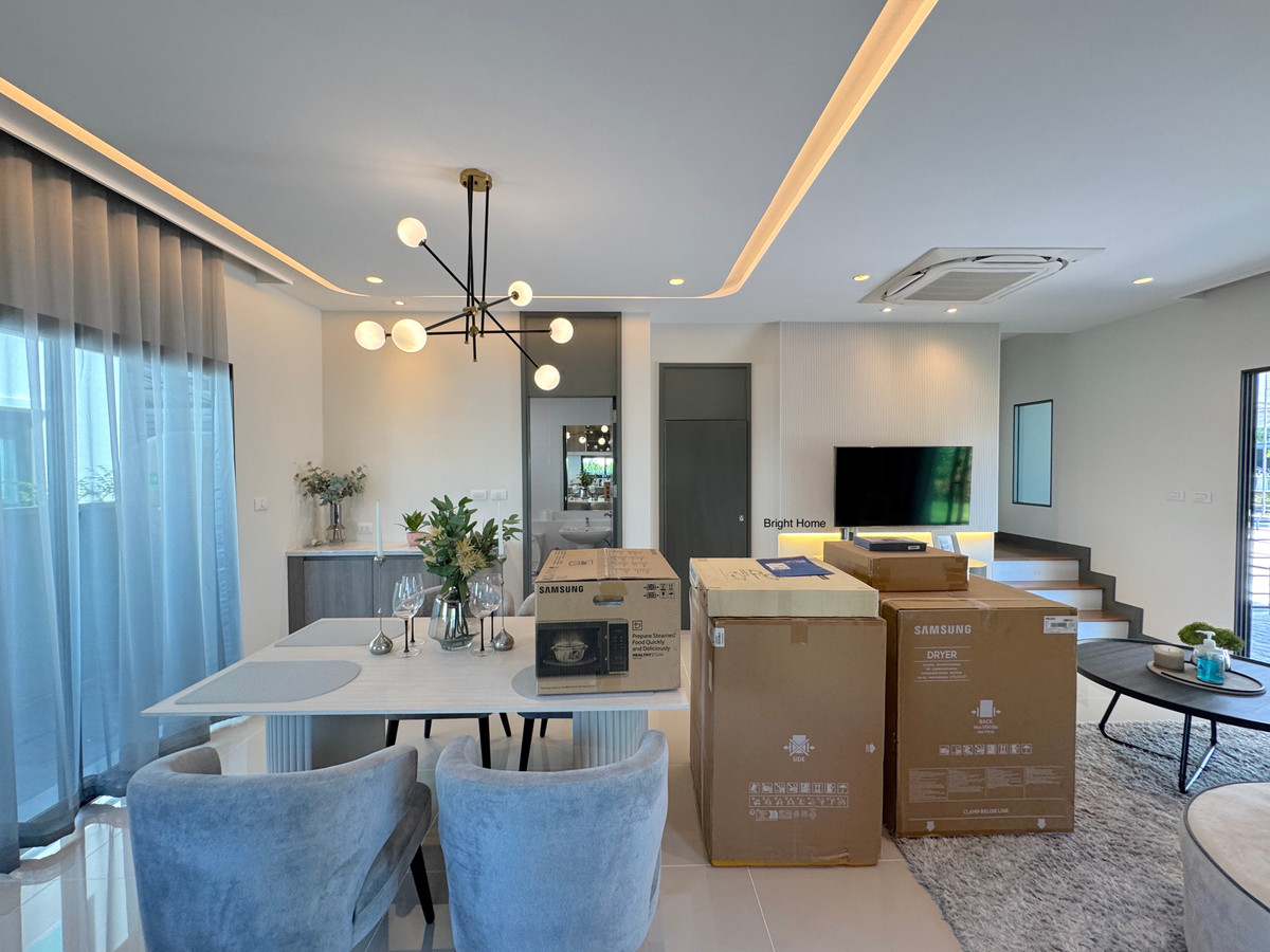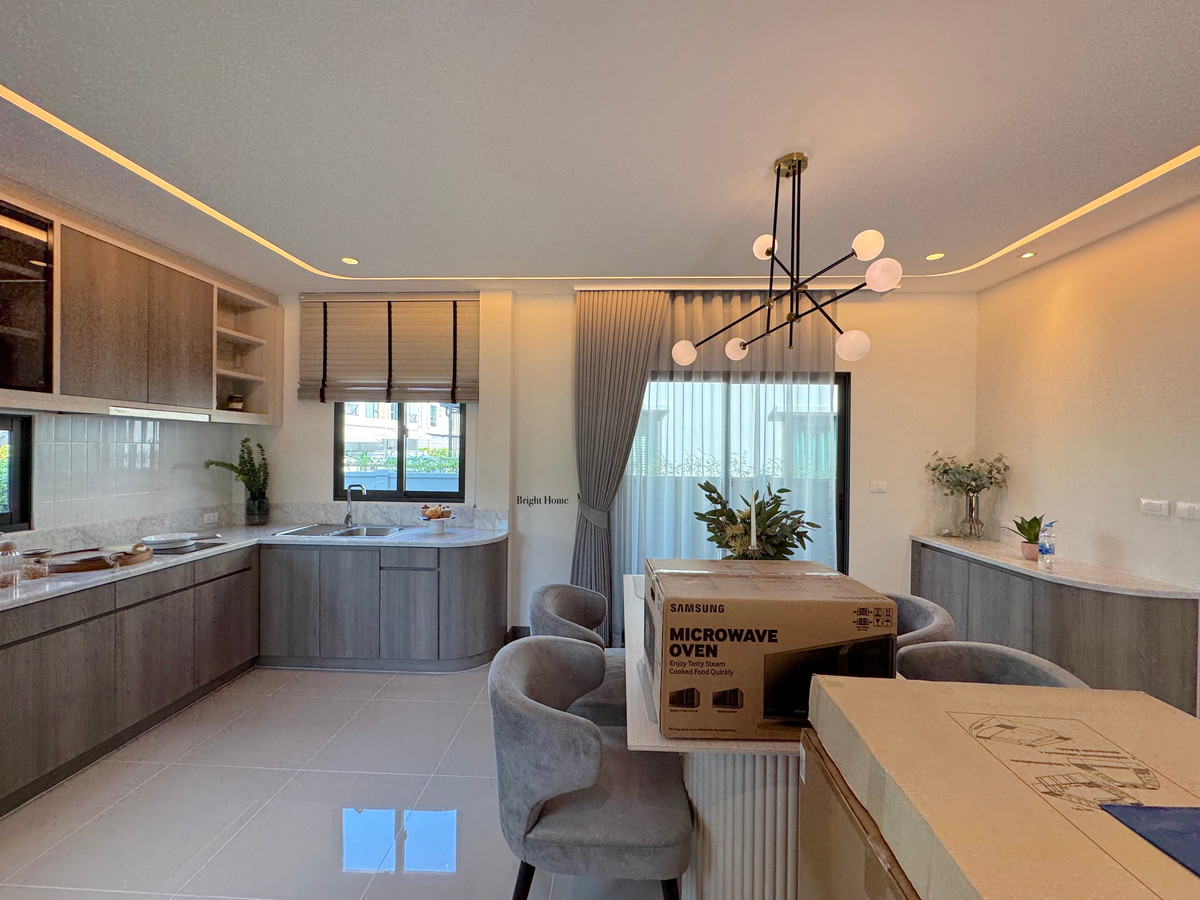 House for rent, beautifully decorated, ready to move in, next to Mega Bangna Pleno Sukhumvit-Bangna 2 (R535) Price 55,000 baht per month House details Land 25 sq m Usable area 132 sq m 3 bedrooms 3 ba