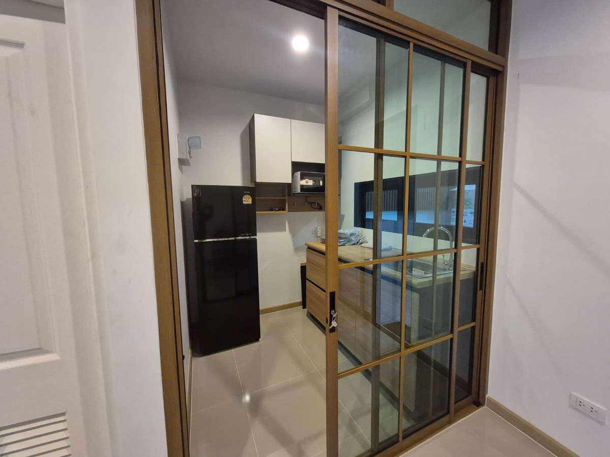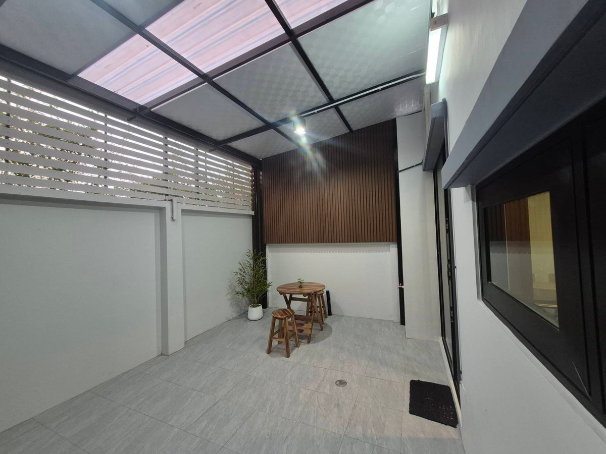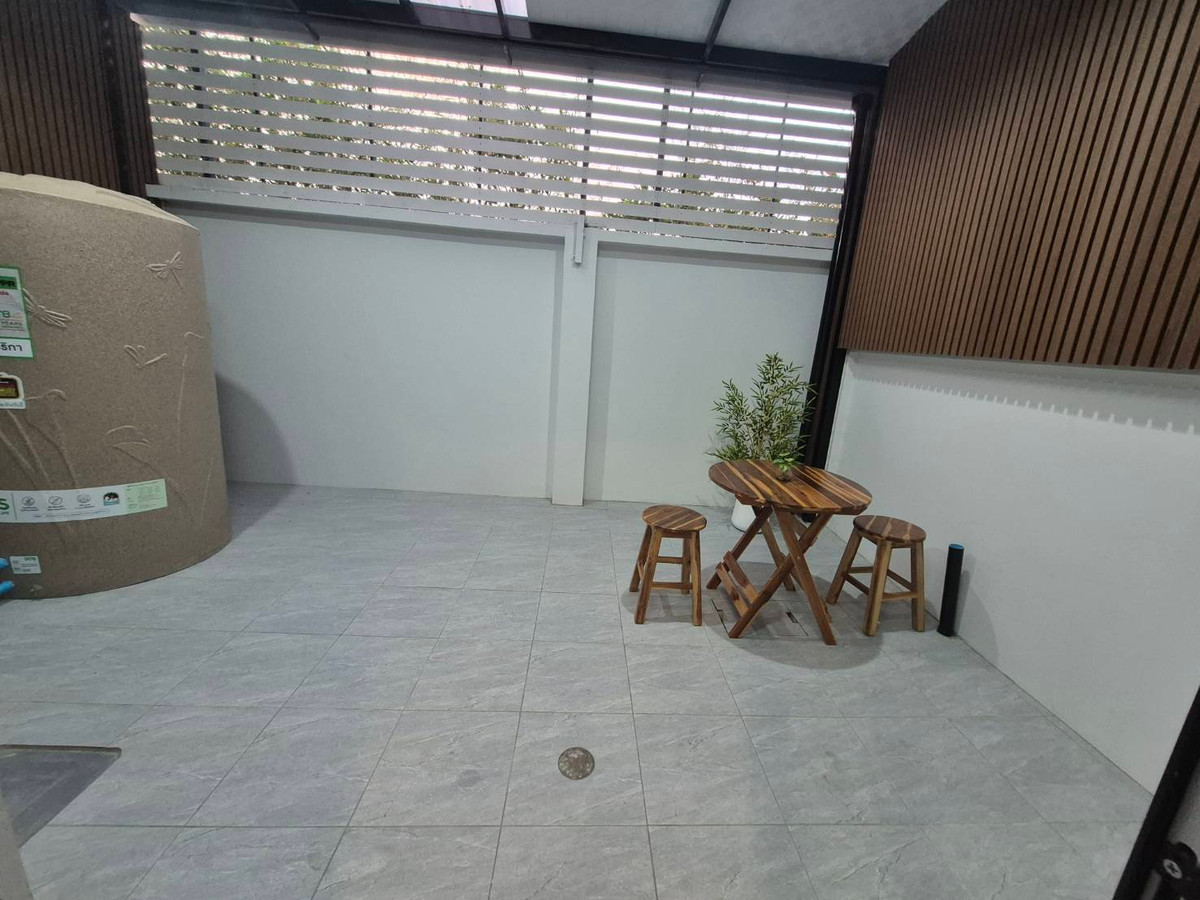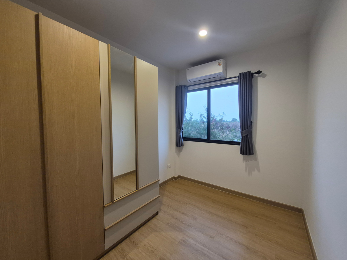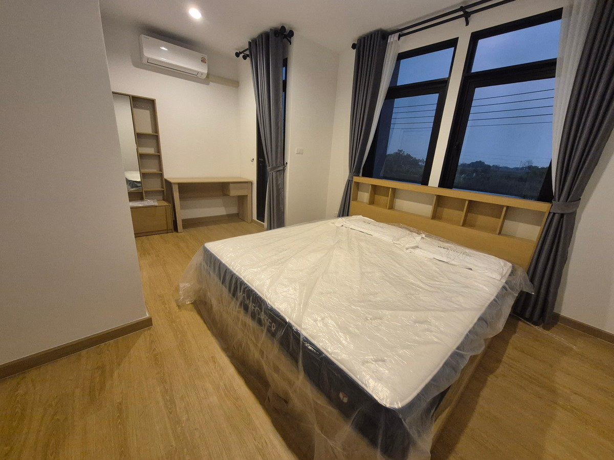 Townhome (brand new, first hand) for rent. Located only 5 km from Rangsit, large size 23 sq m., usable area 110 sq m., 3 bedrooms, 3 bathrooms, 2 parking spaces, additional parking roof. The roof of the courtyard has been washed behind the house. Complete air conditioning everywhere, 4 units in total, downstairs hall and 3 bedrooms, 2 bedrooms furnished. Complete living room downstairs set Built-in kitchen There is a microwave oven, electric stove, sink, and refrigerator. There are aluminum doors that close and open to prevent odors from disturbing the house. water heater blackout curtains Dining table for 4 people
