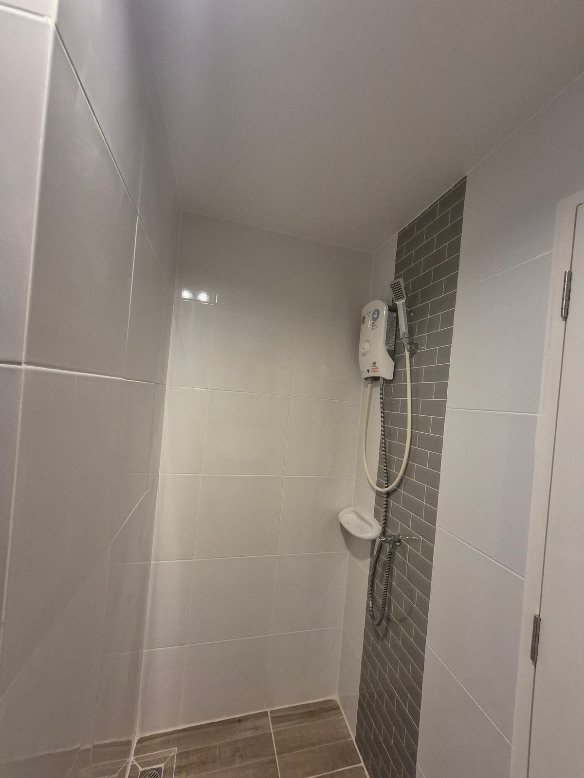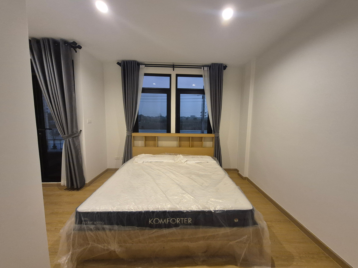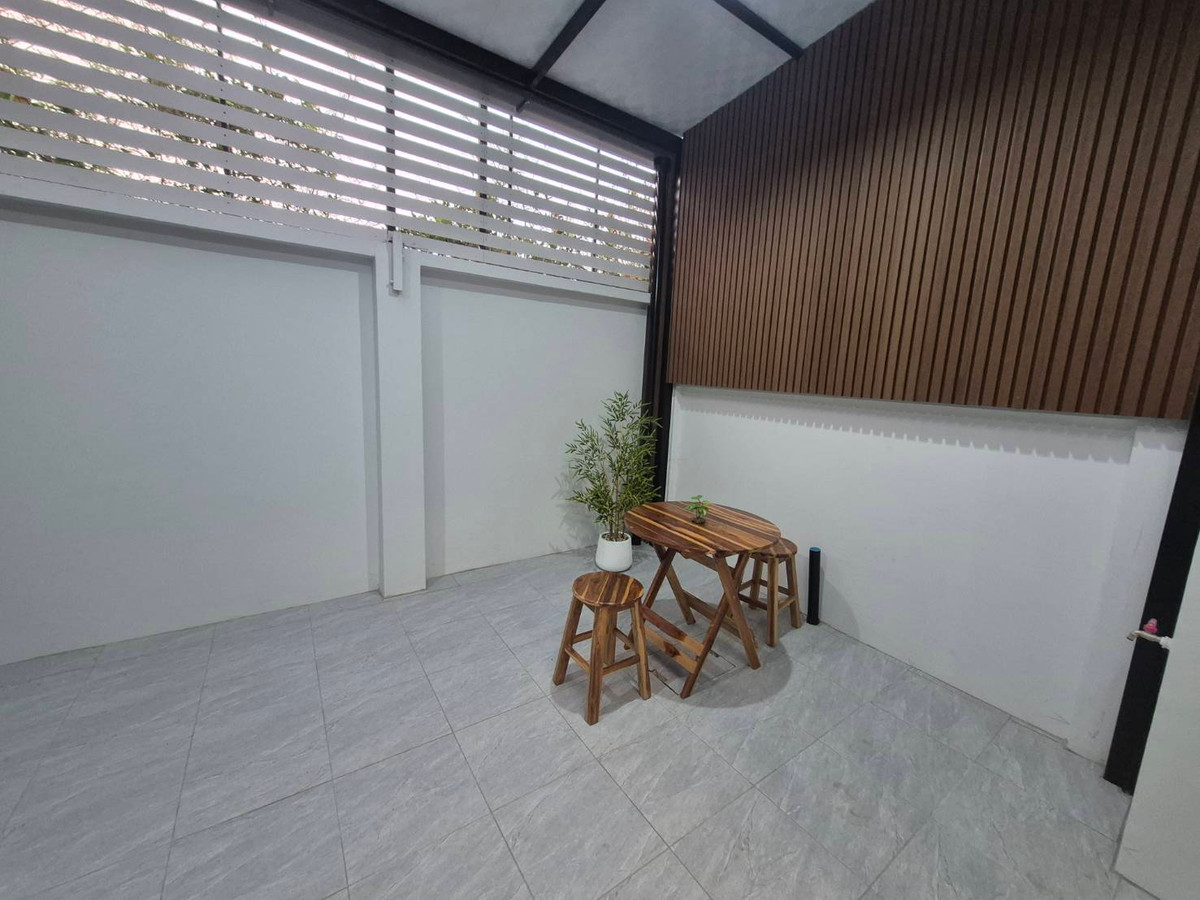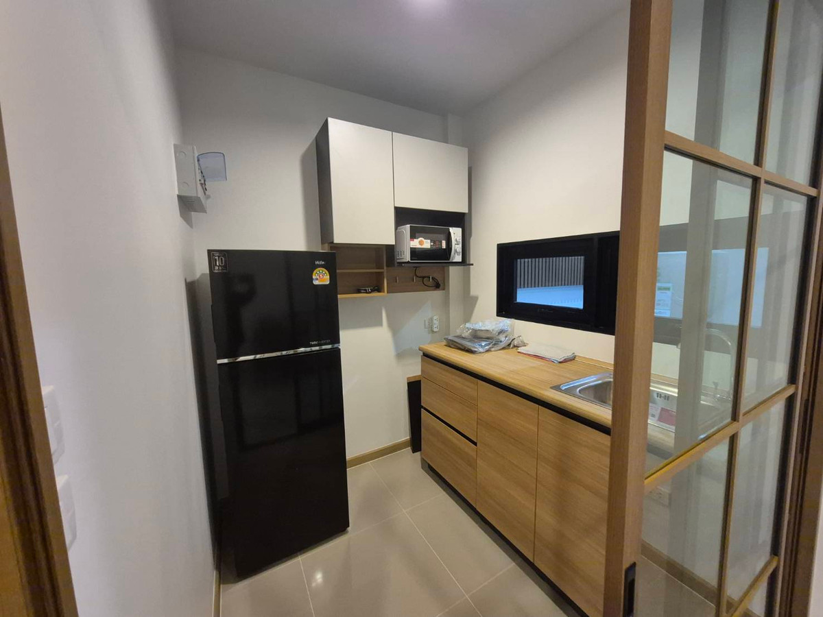 Townhome (brand new, first hand) for rent. Located only 5 km from Rangsit, large size 23 sq m., usable area 110 sq m., 3 bedrooms, 3 bathrooms, 2 parking spaces, additional parking roof. The roof of the courtyard has been washed behind the house. Complete air conditioning everywhere, 4 units in total, downstairs hall and 3 bedrooms, 2 bedrooms furnished. Complete living room downstairs set Built-in kitchen There is a microwave oven, electric stove, sink, and refrigerator. There are aluminum doors that close and open to prevent odors from disturbing the house. water heater blackout curtains Dining table for 4 people