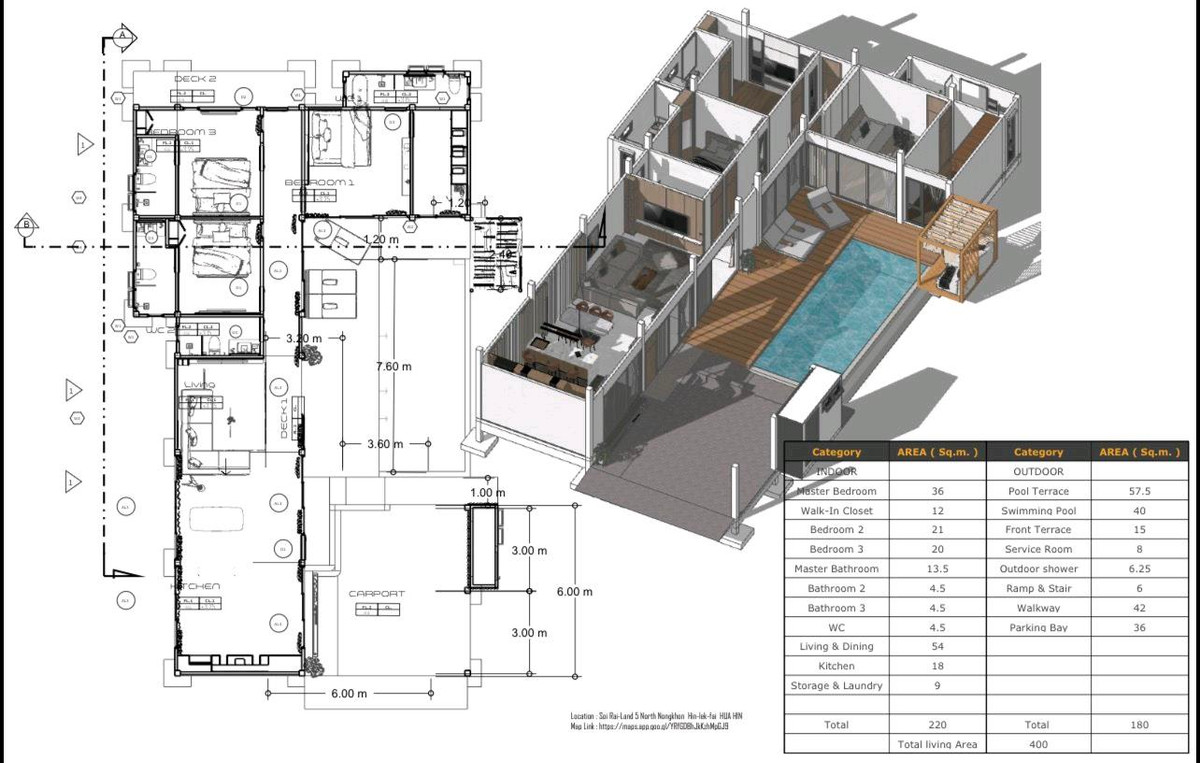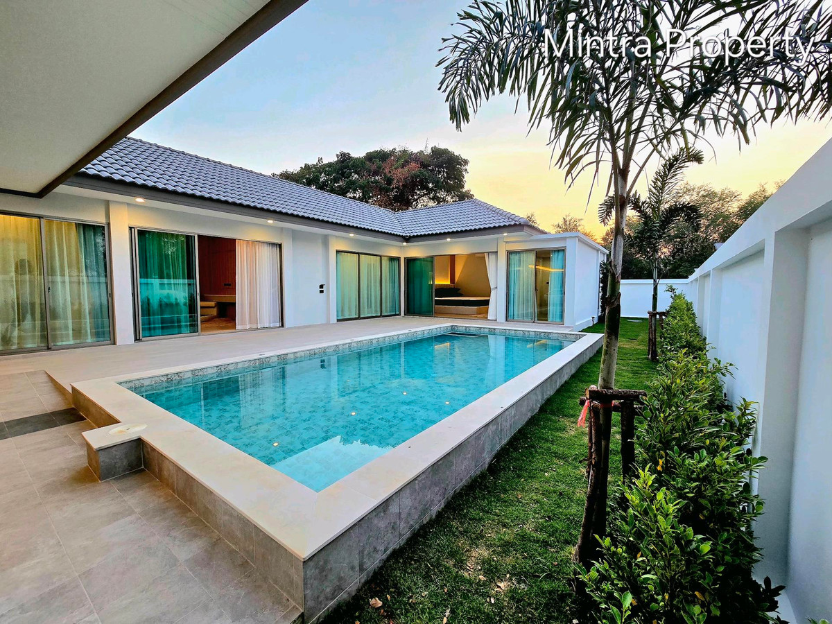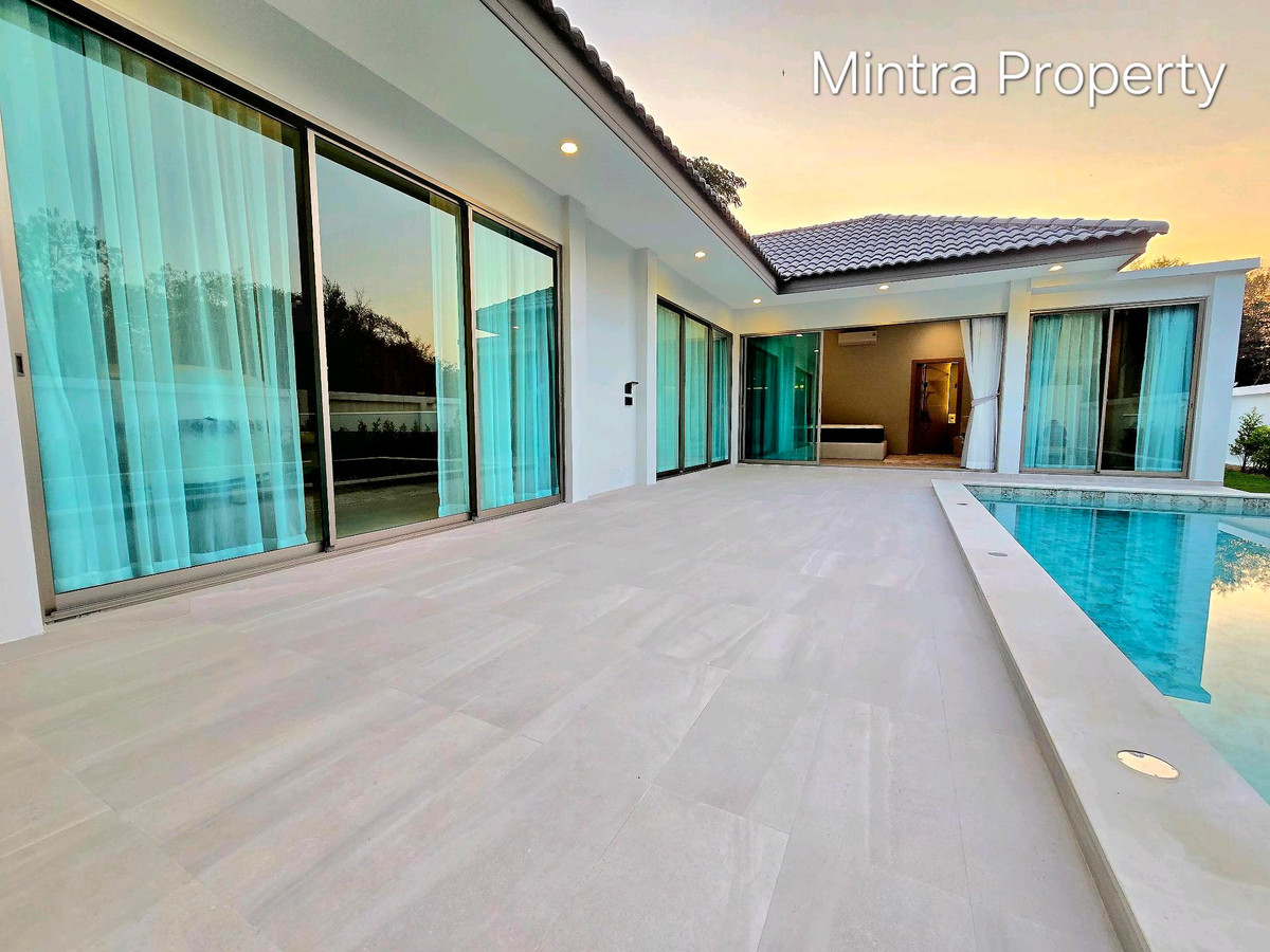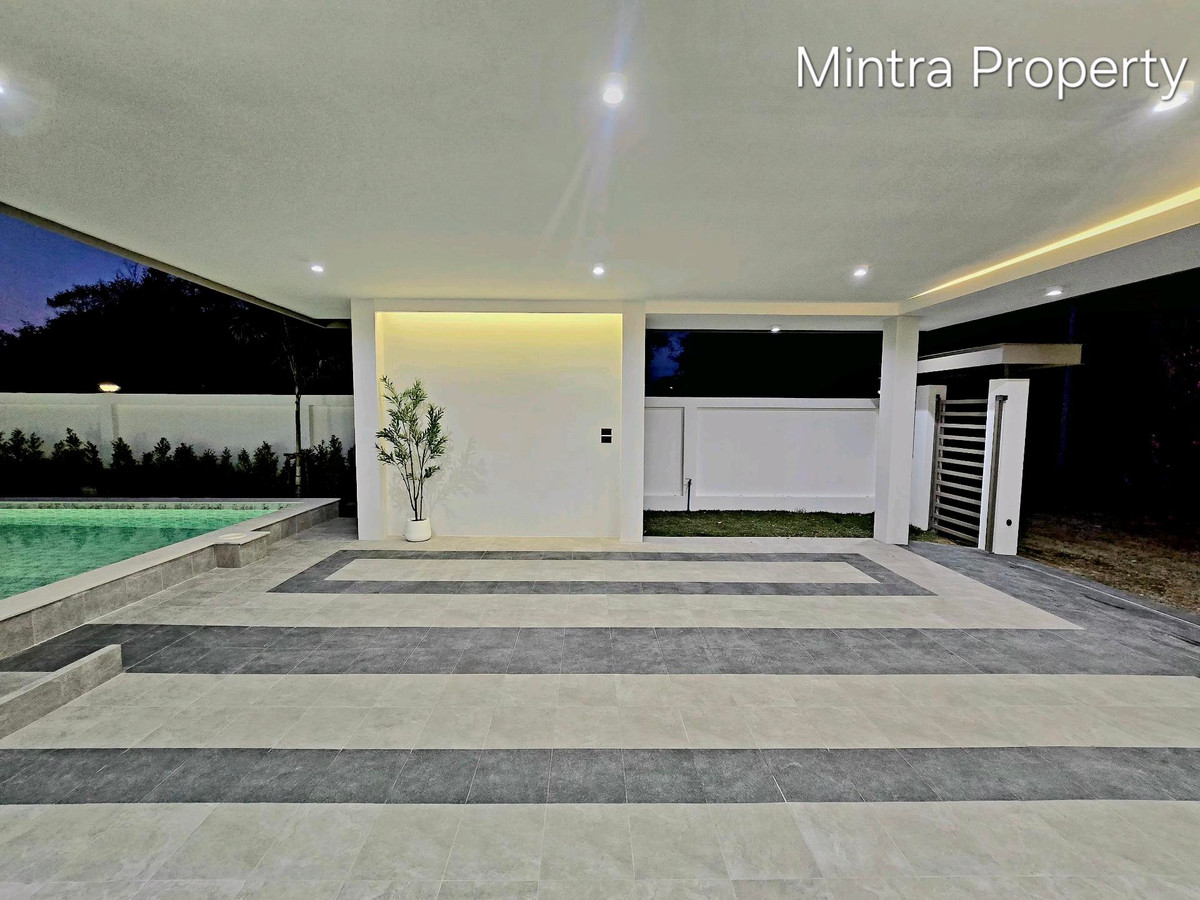 🏡 Luxury Pool Villa | Ready for Immediate Ownership Transfer ✔️ Single-storey residence with Courtyard / U-Shape design ✔️ All living spaces open directly to the central private swimming pool ✔️ Open, airy, and highly private — ideal for long-term living 📐 Land & Usable Area Land size: 100 sq.wah (400 sq.m.) Total usable area: 320 sq.m. Indoor area: 185 sq.m. Outdoor area: 135 sq.m. 🧱 Indoor Layout Living & Dining Area: 54 sq.m. Spacious open-plan living area with recessed ceiling and concealed lighting Full pool-view frontage European Kitchen with Island: 18 sq.m. Modern, practical kitchen designed for real daily use Master Bedroom: 32 sq.m. Direct access to the swimming pool Master Bathroom: 12 sq.m. Separate wet and dry zones Bedroom 2: 18 sq.m. Bedroom 3: 17 sq.m. Bathrooms: 2 additional bathrooms (4.5 sq.m. each) Internal hallway / circulation area: 25 sq.m. 🌴 Outdoor Area Private swimming pool: 4 × 8 m. (32 sq.m.) Pool terrace: 48 sq.m. Walkway around the house: 19 sq.m. Parking area: 36 sq.m. (for 2 cars) 🛋 Furniture & Electrical Appliances Fully furnished as shown in the actual house photos 📍 Location: Rai Land 5 Road, Hin Lek Fai Subdistrict, Hua Hin District, Prachuap Khiri Khan Ready to move in Immediate ownership transfer available 💰 Price: 8,990,000 THB 📞 Private viewing by appointment Tel. Contact number #LuxuryPoolVilla #HuaHinProperty #ReadyToTransfer #PrivatePoolVilla #HinLekFai #ModernTropical #SingleStoreyVilla #HuaHinRealEstate