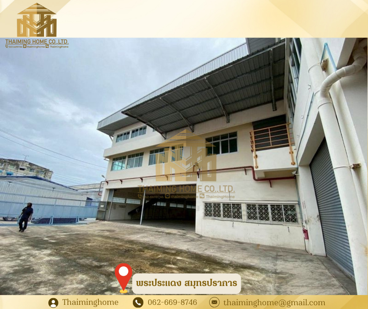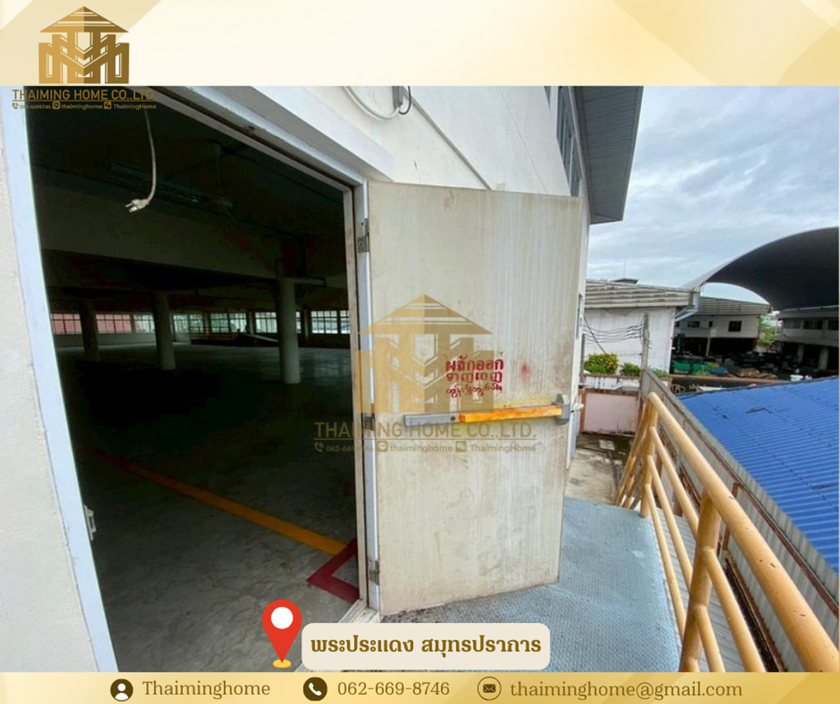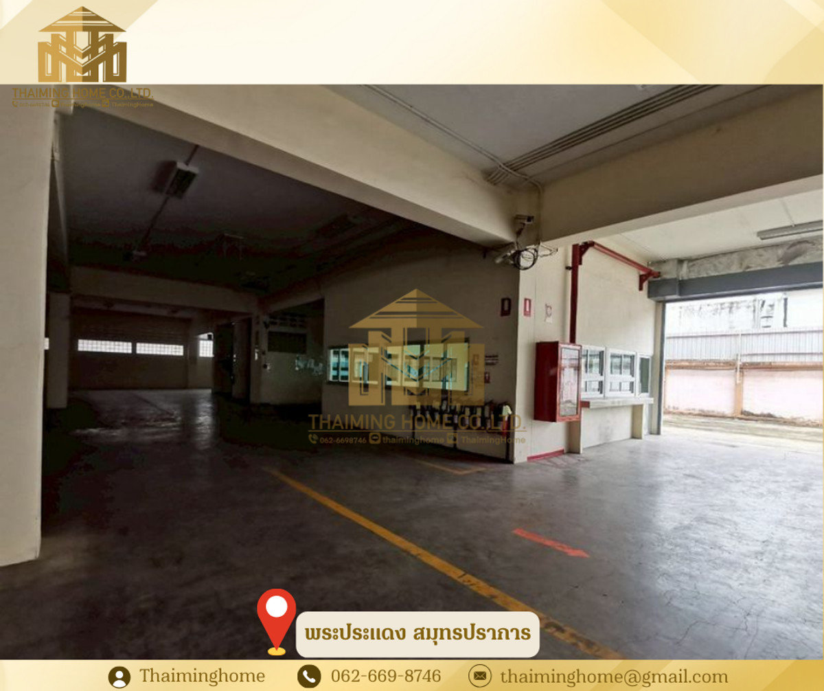 Warehouse with Office Space, Phra Pradaeng, Samut Prakan (Property Code TW4-1220126) Details - 3-story warehouse with office space - Zoning: Purple Zone (Industrial/Commercial) - Land Size: 560 sq.wa. - Usable Area: 4,326 sq.m. - Building Size: 36x36 meters - 1st Floor Bathrooms: 5 - 2nd Floor Bathrooms: 11 - 3rd Floor Bathrooms: 11 - Electrical System: 200A 230/400V 3P 4W - Plumbing and Sanitary System - Automatic Sprinkler System - Fire Protection and Extinguishing System - Underground Water Tank: 10,000 liters - Cargo Lift: 2 tons on all 3 floors - Floor Load Capacity: 5 tons - Emergency Fire Exits - Security Guard Room and Garbage Storage Room Nearby Places: - Big C Food Place Pracha Uthit - Maruay Market Suk Sawat 78 - Bangchak Hospital Rental Conditions: - Minimum 1-year contract - 2-month security deposit - 1-month advance payment - Rental price: 400,000 baht per month --------------------------------- บริษัท ไทยหมิง โฮม จำกัด Thaiming Home Co.,Ltd. 泰明房园 房产公司 ----------------------- Contact ติดต่อ : Contact number Contact : Contact number คุณหมิง(中文) Line ID: thaiminghome Line ID: @thaiminghome https://lin.ee/PkkHwYv Wechat : ThaimingHome E-mail : Contact email -----------------------