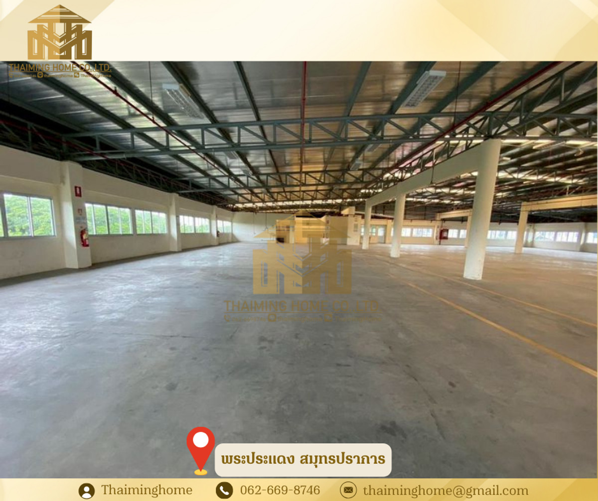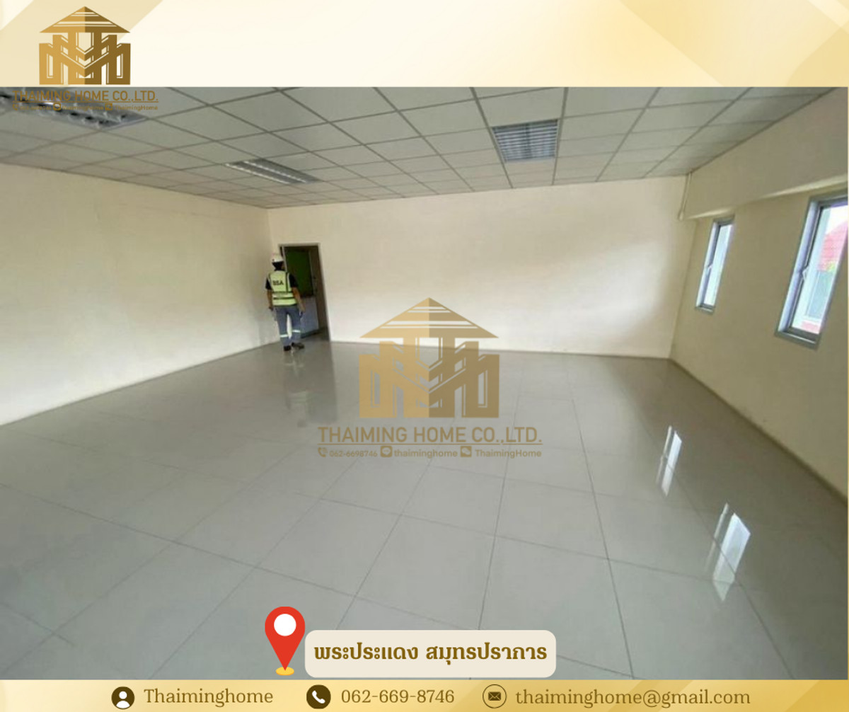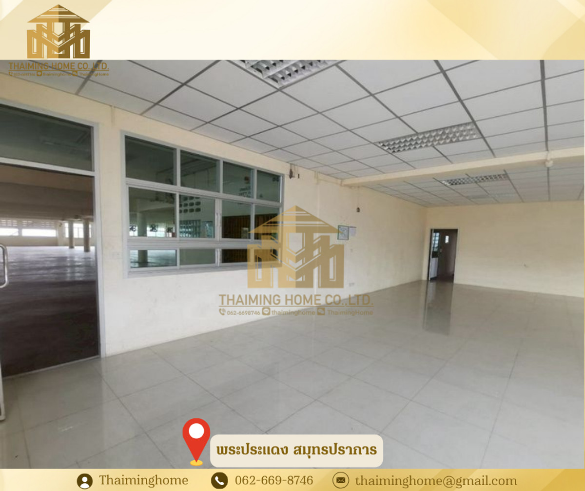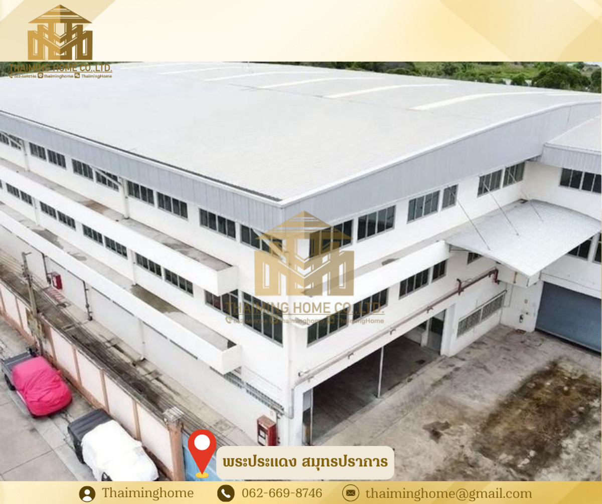 Warehouse with Office Space, Phra Pradaeng, Samut Prakan (Property Code TW4-1220126) Details - 3-story warehouse with office space - Zoning: Purple Zone (Industrial/Commercial) - Land Size: 560 sq.wa. - Usable Area: 4,326 sq.m. - Building Size: 36x36 meters - 1st Floor Bathrooms: 5 - 2nd Floor Bathrooms: 11 - 3rd Floor Bathrooms: 11 - Electrical System: 200A 230/400V 3P 4W - Plumbing and Sanitary System - Automatic Sprinkler System - Fire Protection and Extinguishing System - Underground Water Tank: 10,000 liters - Cargo Lift: 2 tons on all 3 floors - Floor Load Capacity: 5 tons - Emergency Fire Exits - Security Guard Room and Garbage Storage Room Nearby Places: - Big C Food Place Pracha Uthit - Maruay Market Suk Sawat 78 - Bangchak Hospital Rental Conditions: - Minimum 1-year contract - 2-month security deposit - 1-month advance payment - Rental price: 400,000 baht per month --------------------------------- บริษัท ไทยหมิง โฮม จำกัด Thaiming Home Co.,Ltd. 泰明房园 房产公司 ----------------------- Contact ติดต่อ : Contact number Contact : Contact number คุณหมิง(中文) Line ID: thaiminghome Line ID: @thaiminghome https://lin.ee/PkkHwYv Wechat : ThaimingHome E-mail : Contact email -----------------------