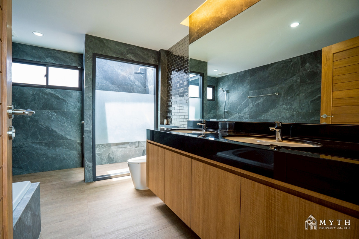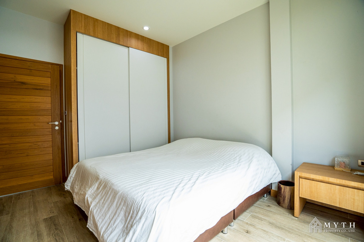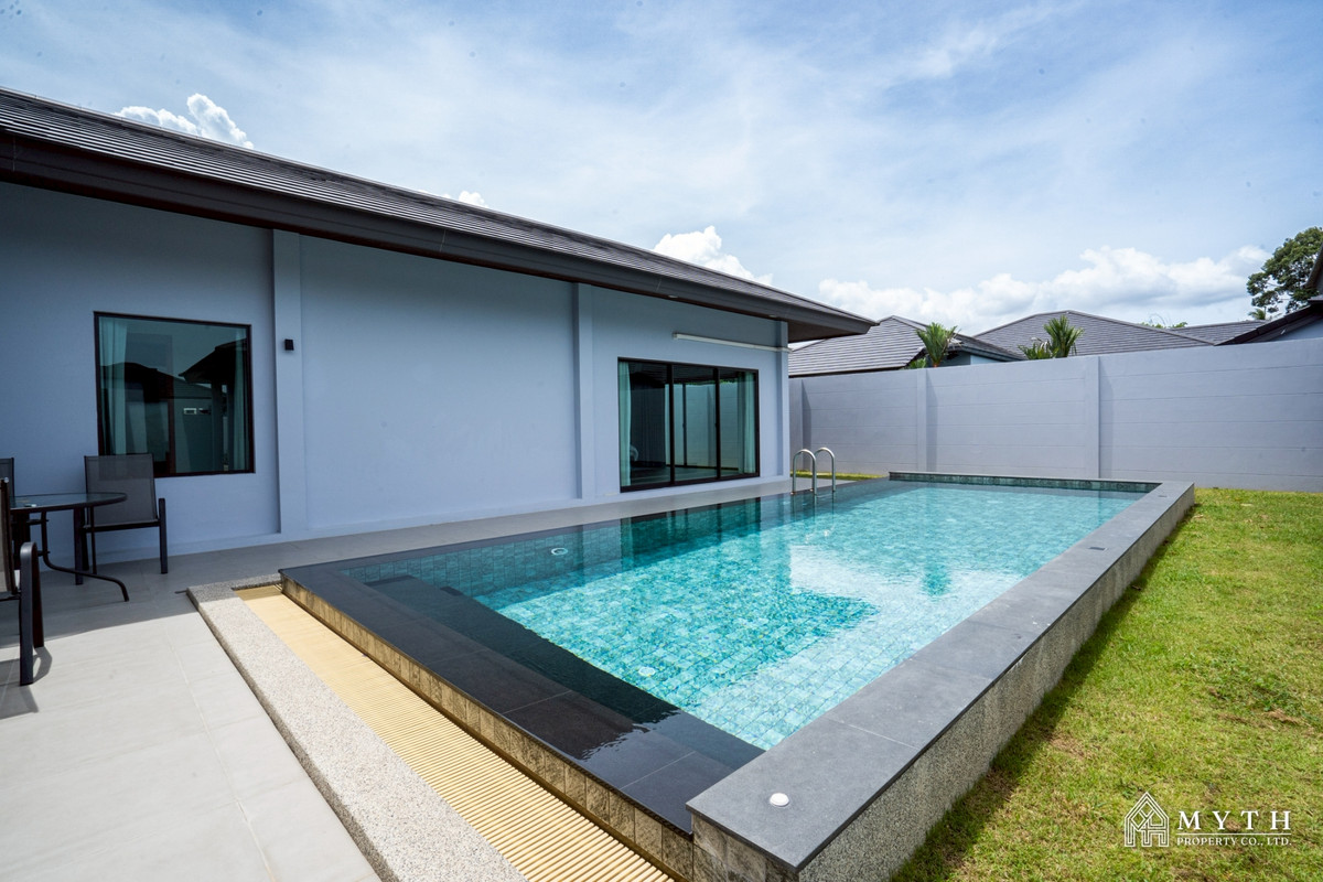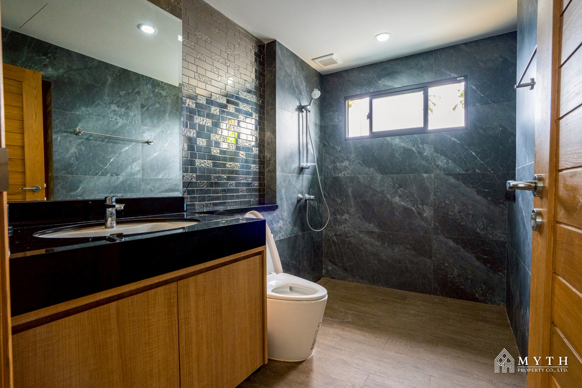 Modern Single House for Rent in Pattaya 6 Beautiful modern-style home with a spacious living area.Features a private swimming pool and lush private garden, offering high privacy and a peaceful atmosphere.Ideal for families or those seeking a quality home in a prime location. - 3 Bedrooms 3 Bathrooms - Land size 632 Sqm. - Fully furnished - Car parking - Bathtub - Private swimming pool Price 80,000 baht/ month (1 Year contract) 2 Month deposit