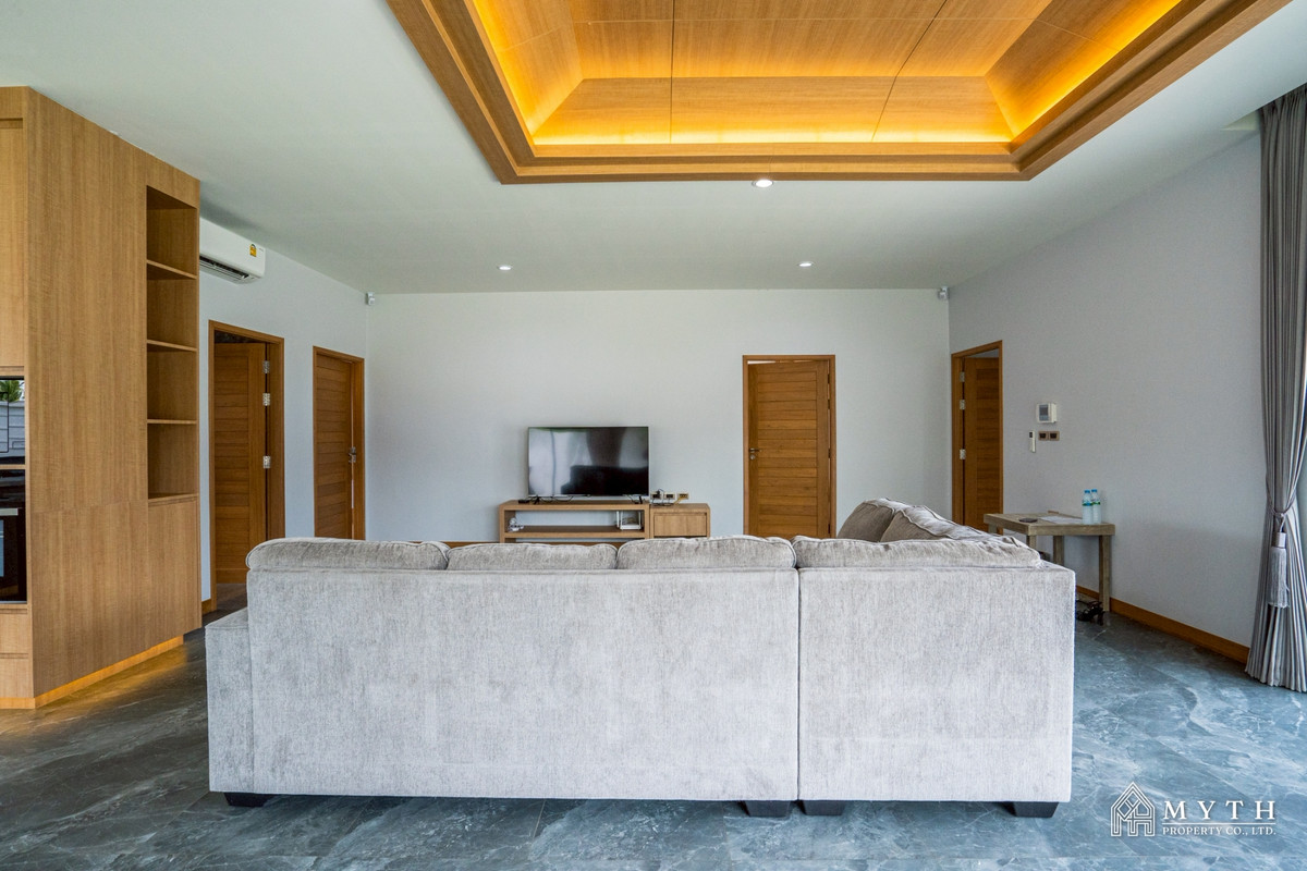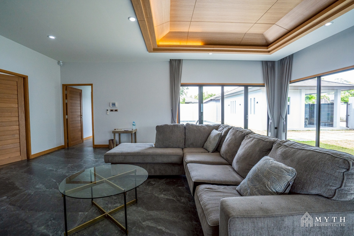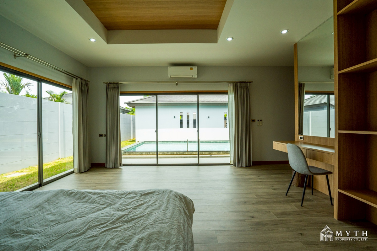 Modern Single House for Rent in Pattaya 6 Beautiful modern-style home with a spacious living area.Features a private swimming pool and lush private garden, offering high privacy and a peaceful atmosph