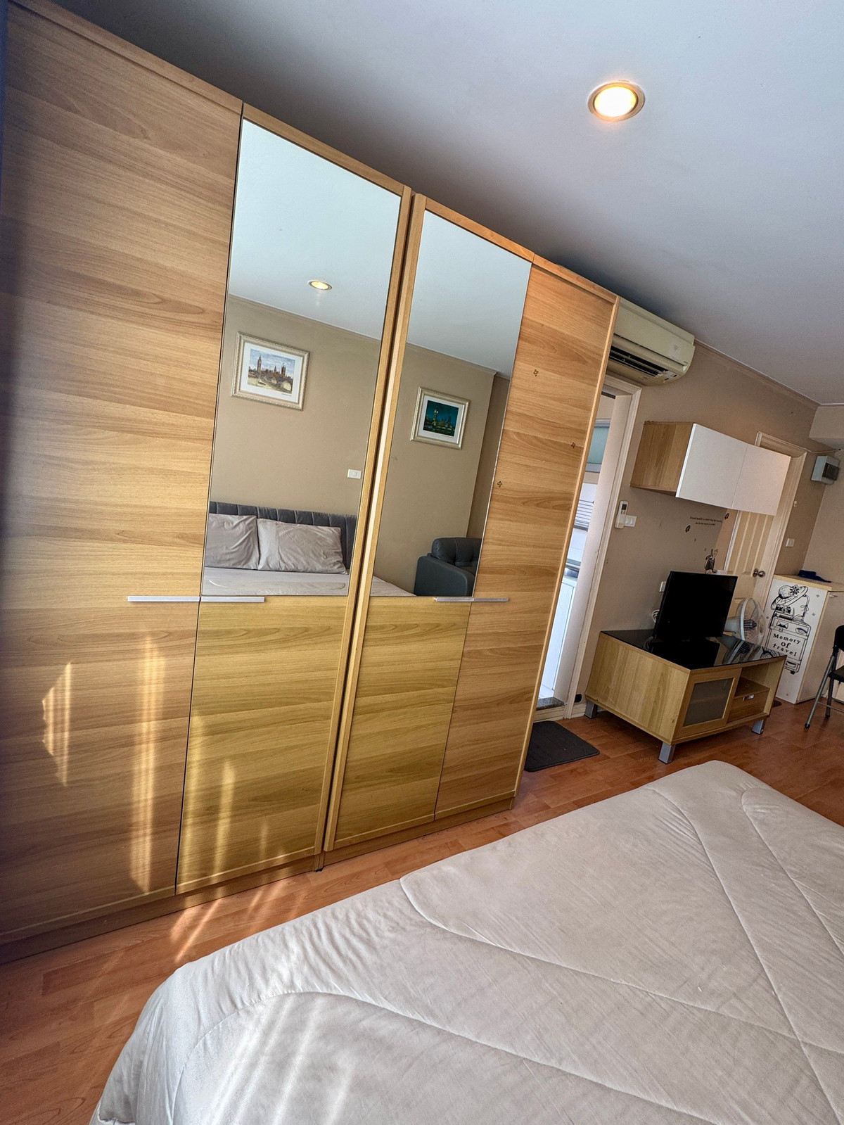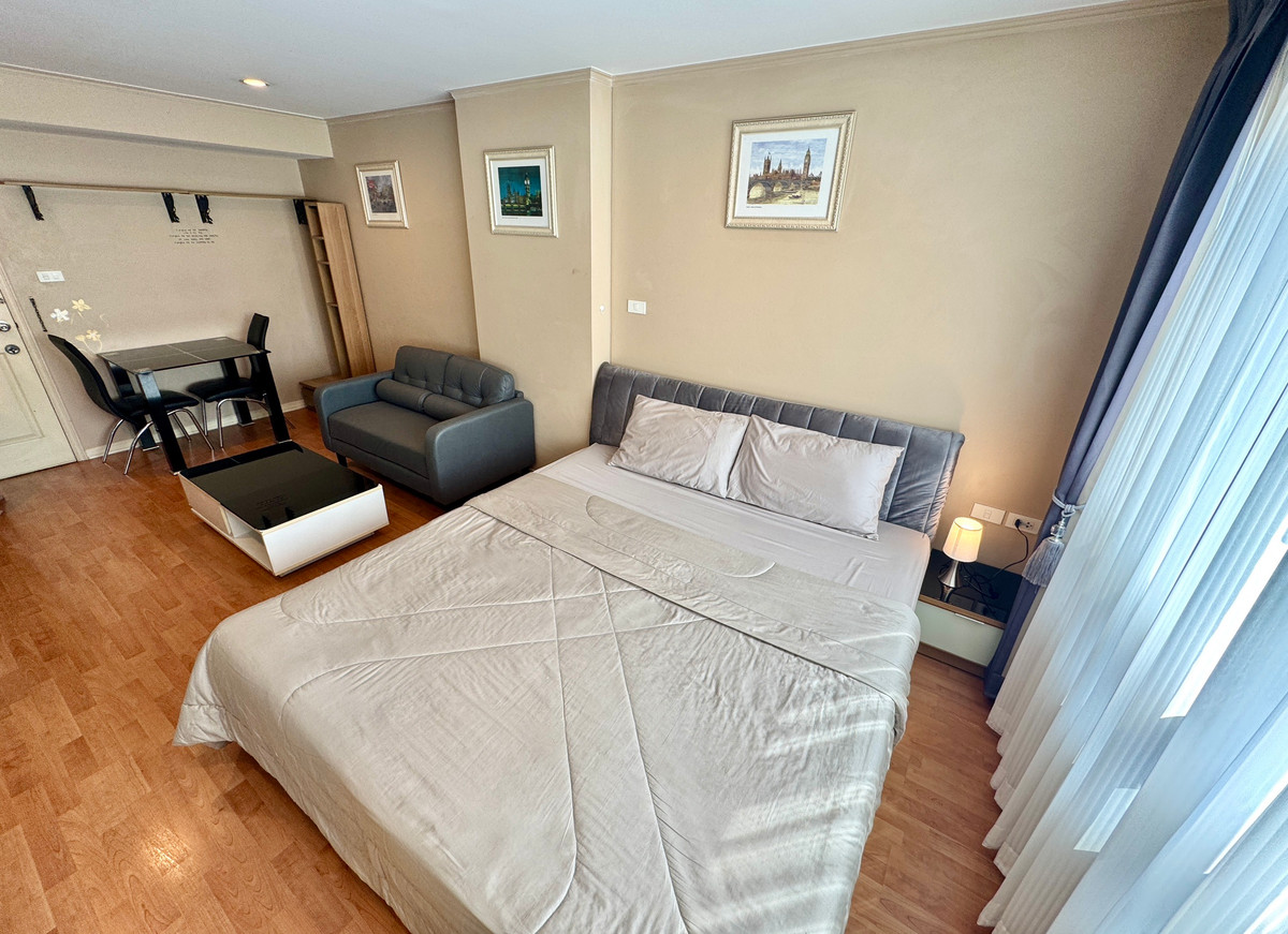 studio For rent Lumpini Ville Ramkhamhaeng 44 Studio room, area 30 sq m, 17th floor, Building B. Nice city view! Quiet, no pollution, and noise from the road Closed kitchen, fully furnished, has a refrigerator and washing machine, TV, water heater). Rental price 9,000 baht per month (including common areas) (2 months deposit, 1 month advance) 1-year rental contract minimum ***Room will be available. Can be visited after 1 February onwards** Tel. Contact number *** THIS CONDO IS NOT ALLOWED PETS**