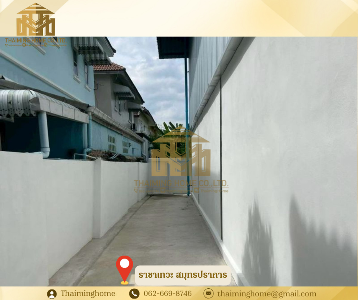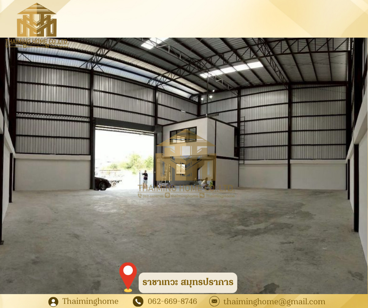 Warehouse for rent, 300 sq.m., Rachathewa, Samut Prakan (Property Code TW4-1240126) Details - Total area: 500 sq.m. / Office 25 sq.m. - Building structure: Reinforced concrete. Office height 2.85 m. Warehouse height 8.5 m. - Roof: Aluzinc steel roof with ventilation openings. - Ceiling: Gypsum board ceiling for office (warehouse is open). - Building walls: Interior walls are 4" concrete block walls, plastered smooth. - Surface floor: Reinforced concrete, polished smooth, safe load capacity 1 ton/sq.m. - Warehouse door: Solid steel roll-up door, 5.7 m wide x 4.85 m high, electric motor opening and closing. - Electrical System: 15 Amp 3-phase 4-wire meter, LED Floodlight lighting. Nearby Locations: - Robinson Lat Krabang - Sirindhorn Hospital - Suvarnabhumi Airport Rental Conditions: - 1-year lease agreement - 2 months security deposit - 1 month advance payment - 85,000 THB per month rent --------------------------------- บริษัท ไทยหมิง โฮม จำกัด Thaiming Home Co.,Ltd. 泰明房园 房产公司 ----------------------- Contact ติดต่อ : Contact number Contact : Contact number คุณหมิง(中文) Line ID: thaiminghome Line ID: @thaiminghome https://lin.ee/PkkHwYv Wechat : ThaimingHome E-mail : Contact email -----------------------