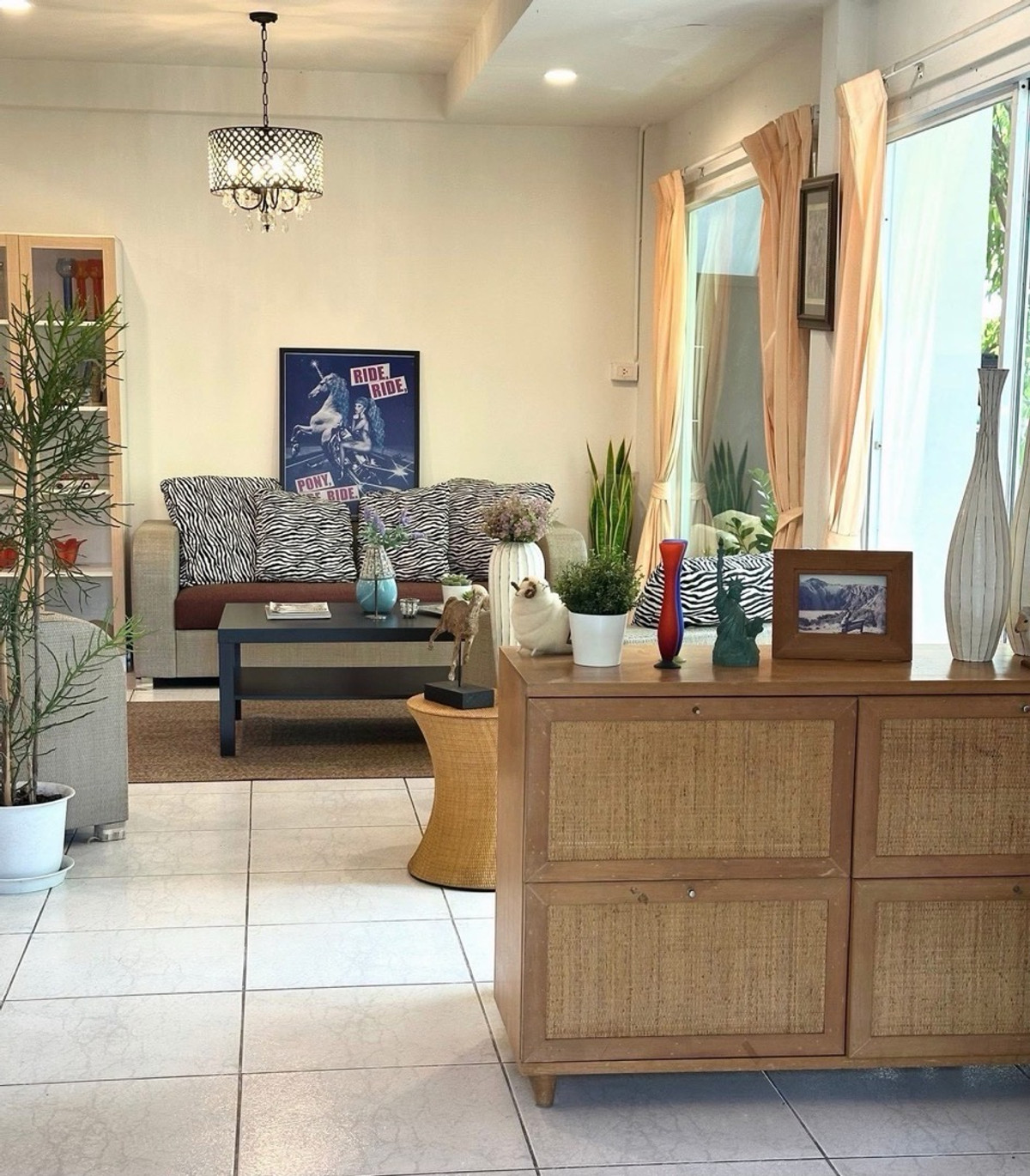 🔹 Sammakorn Ramkhamhaeng 🔹 • Land area 120 square meters • Usable area approximately 250 square meters. • 4 bedrooms / 3 bathrooms • Maids room + separate bathroom • The living room is open and airy,