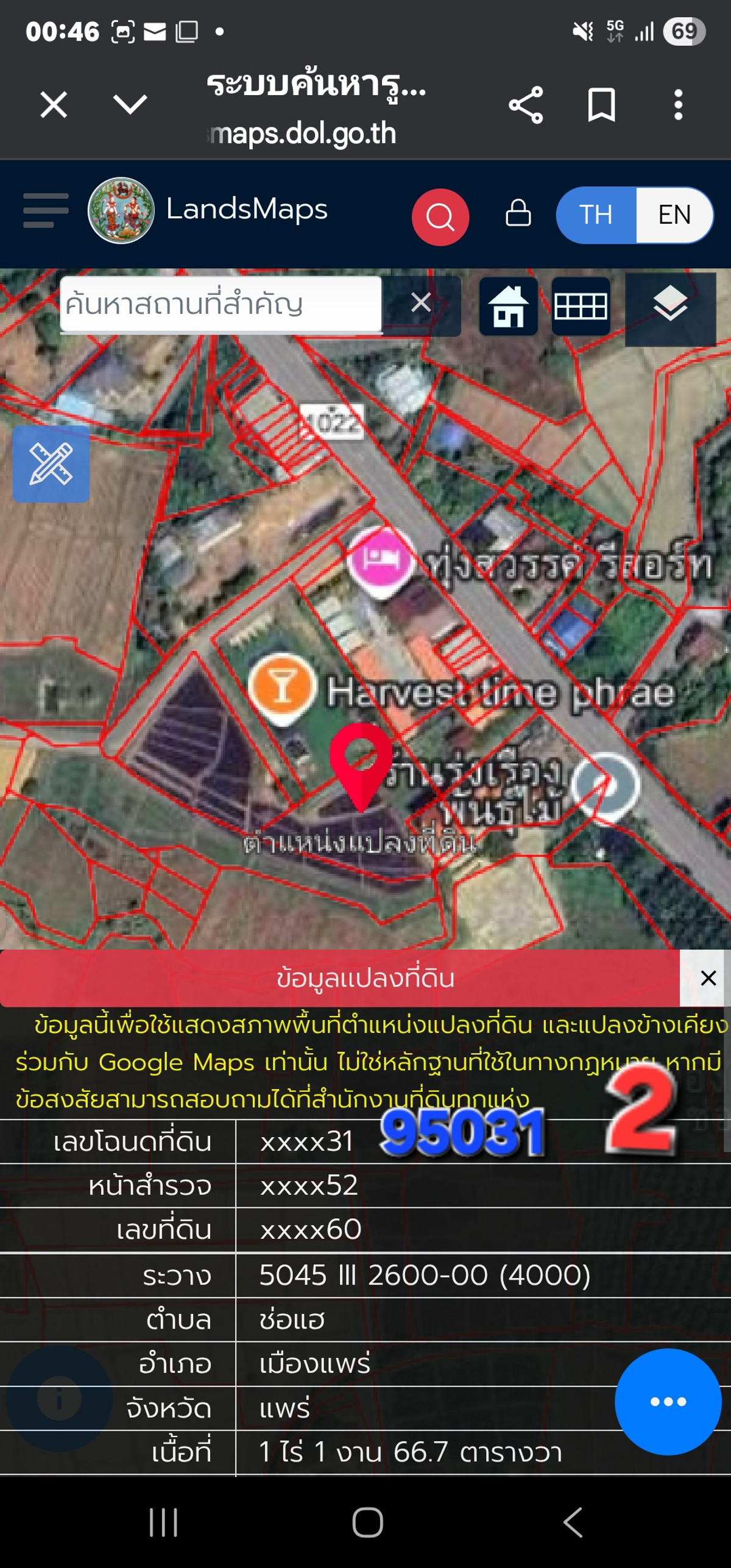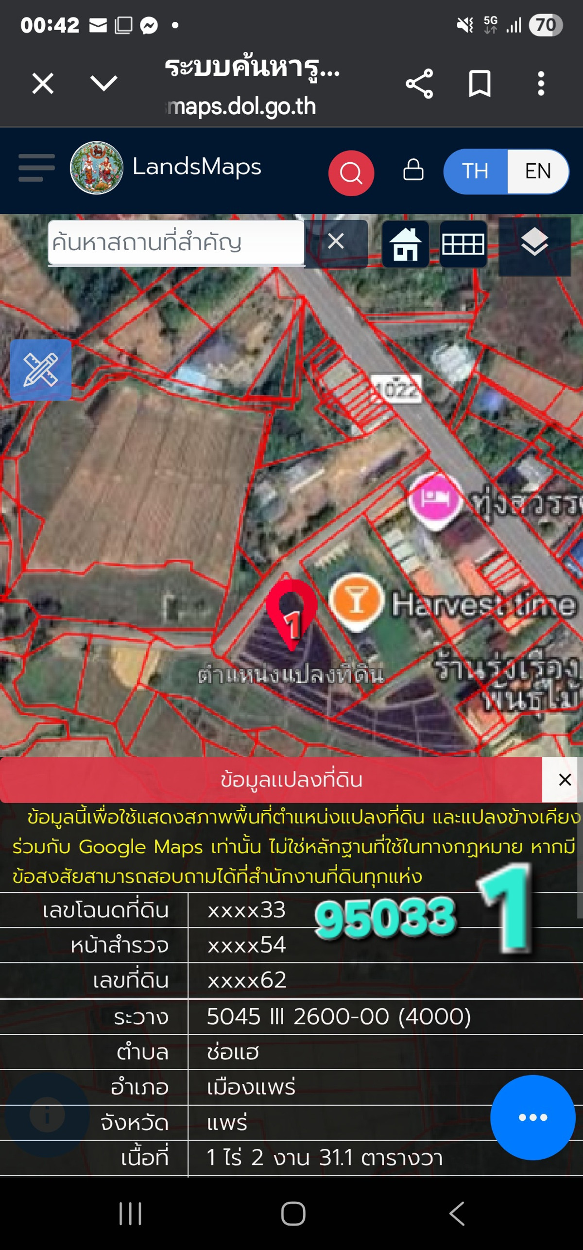 Land for sale 3 rai Land for sale Area number 1, area 631 sq m, price 3.3 million Number 2, area 566 sq m, price 2.9 million Buy in total approximately 3 rai = Special price 5.9 million Land like this is hard to find, very beautiful. The location is very beautiful. View of mountains all around, 360 degrees. The way to Phra That Cho Hae is near the airport in Phrae Province. Just 100 meters from the main road, suitable for building a resort, cafe, hotel, supermarket, natural home. Answers the needs of people who love mountain forests. The advantage is that it is behind Harvest Prime, Phrae, convenient to find food. Only 8 minutes from Phrae Airport, only 5 minutes from Phra That Cho Hae, very convenient to travel.