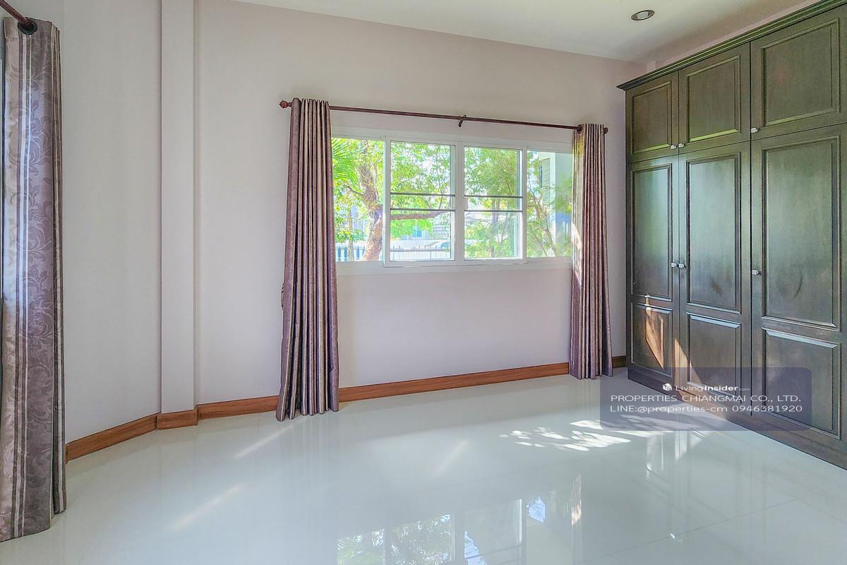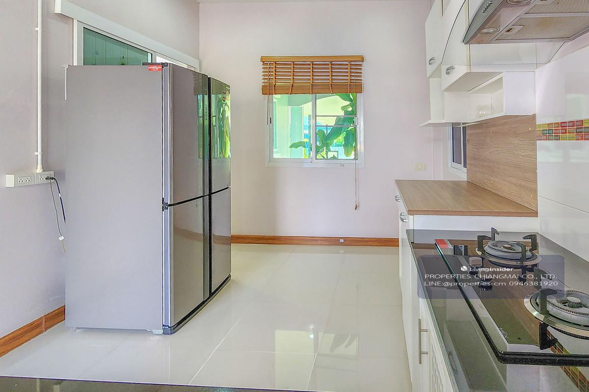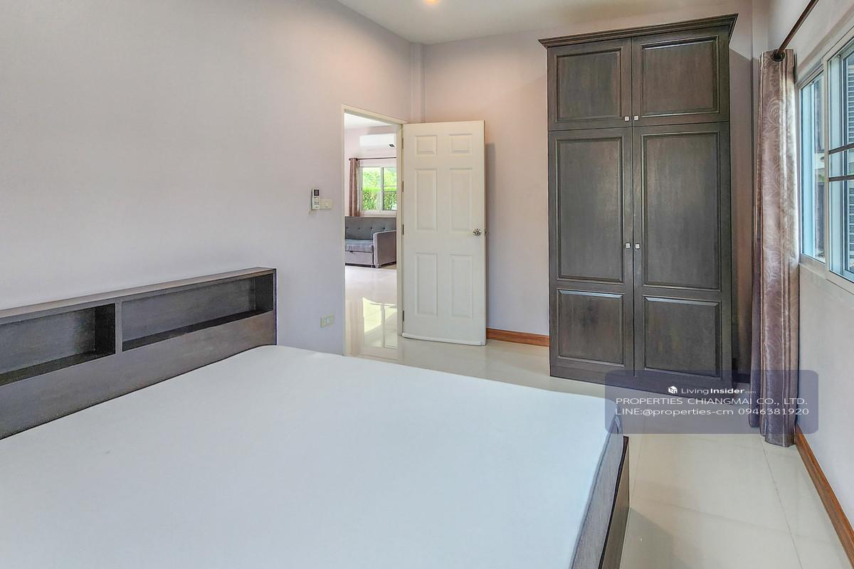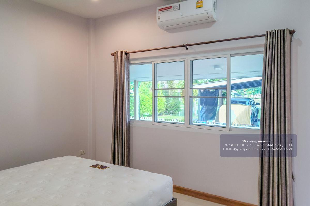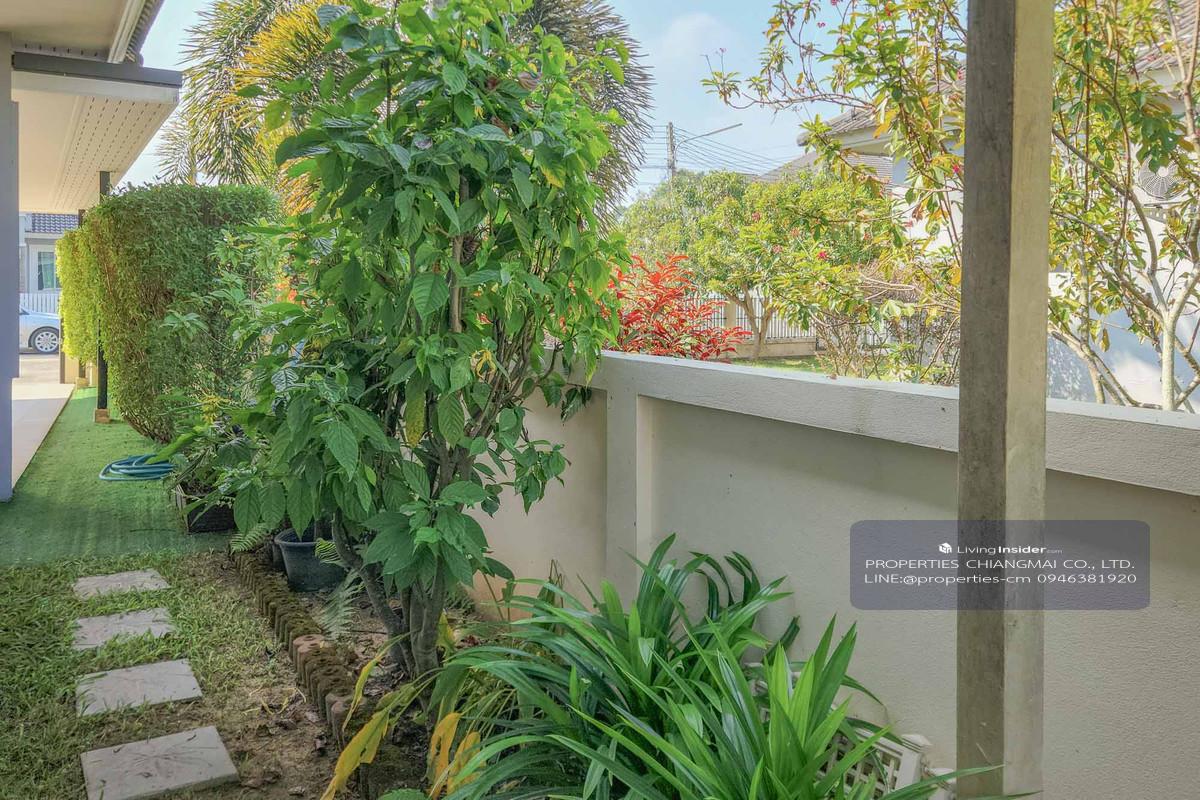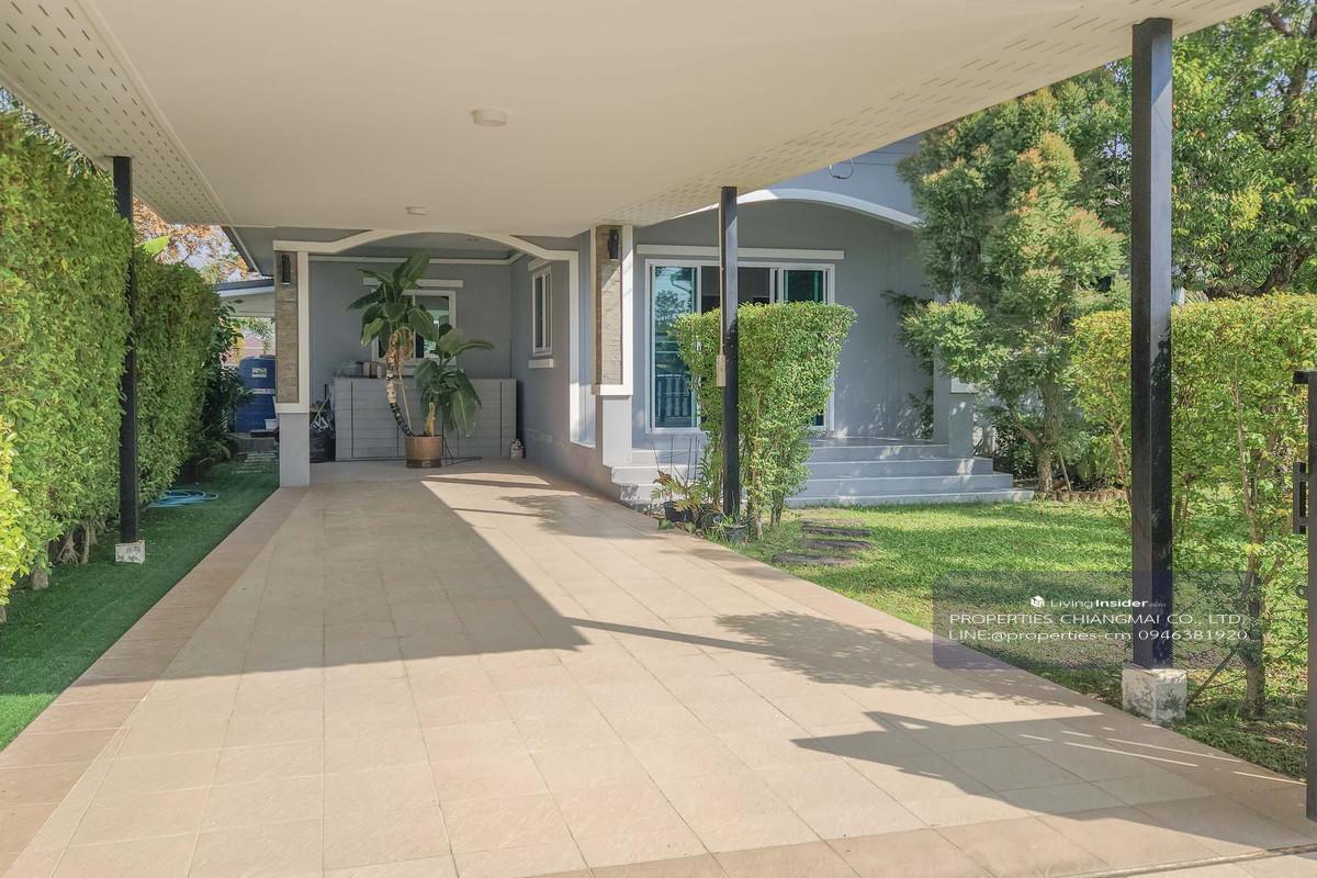 Wake up to the peaceful ambiance of a private residential community in this beautifully maintained 3-bedroom home in San Pa Pao, San Sai. Set on a generous plot surrounded by mature trees and thoughtful upgrades, this single-level home offers a low-maintenance lifestyle with convenient access to daily amenities. Located within a secure gated community featuring a fitness center and communal swimming pool, it is an ideal choice for families, retirees, or long-stay residents seeking comfort and convenience. Designed for easy living, the home features a well-planned single-floor layout with 111.2 Sq.m of usable space (not including garage and terraces) on a 104 Sq.wah land plot. The home includes parking for two cars, reliable utilities, and community facilities—all providing the perfect foundation for your personal touches. Enjoy serene lake views from the rear terrace and enhanced privacy from established landscaping, highlighted by a stunning 70+ year old Samed Dang tree, palms, and various fruit trees. Overview - 3 bedrooms, 2 bathrooms - Land size: 416 Sq.m (104 Sq.wah) (0-1-04 Rai) - Usable area: 111.2 Sq.m (not including garage and terraces) - Residents have access to a common area swimming pool and fitness - 2-car parking - Quiet internal road with minimal traffic - Lake views from the back of the house Key Features - Single-level floor plan suited for easy living - Rear terrace and added garage roof for improved weather protection and outdoor use - Whole-house water filter and dedicated water reservoir tank - New water pump for consistent pressure - Pre-wired outlets ready for CCTV - Solar lighting at the front gate for added convenience and safety - 4 air conditioners for zoned cooling - Kitchen with extra counter space, 2-burner gas hob and range - Furnishings included: sofa bed couch, king bed and mattress, queen bed and mattress, 2 closets, fridge (20.5 cu.) - Planted landscape for shade and privacy: 70+ year Samed Dang tree, 3 Fox Tail Palms, guava, mango, and additional palms - Gated community with security, communal pool, fitness, and wide internal roads Nearby Enjoy the benefits of living in San Pa Pao, San Sai, with smooth access to Ring Road routes, local markets, schools, and everyday conveniences. The area supports an international community while retaining a quiet residential feel. Hospitals & Medical Facilities - Theppanya Hospital – 19 min (14.4 km) - Bangkok Hospital Chiang Mai – 21 min (13.1 km) - Chiang Mai Ram Hospital 33 min (26.4 km) Schools & Education - Chiang Mai International School – 23 min (13.8 km) - Varee Chiangmai International School – 22 min (19 km) - Unity Concord International School – 20 min (18.9 km) Shopping & Essentials - Meta Mall – 12 min (9.6 km) - J Space Community Mall – 18 min (12 km) - Central Festival Chiang Mai – 22 min (15.3 km) Cafés & Restaurants - Bucoliq– 8 min (3.5 km) - Tweechol Botanic Garden – 6 min (2.7 km) - Wild Heart Chiang Mai – 8 min (5.5 km) - Kinlum Kindee – 12 min (4.8 km) A quiet, secure home with lake views, mature trees, community facilities, and a practical single-level layout—well suited for families, retirees, or anyone seeking a low-maintenance lifestyle in San Sai. Contact us to request the full information pack and arrange a private viewing.