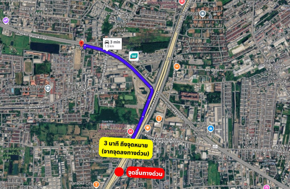 Rare Corner Plot Land for sale on Kaset–Nawamin rd. Ideal for Development . Land for sale on Kaset–Nawamin Road (Prasert-Manukit 22), near Ram Inthra Expressway Prasert-Manukit Road, Chorakhe Bua Subdistrict, Lat Phrao District, Bangkok Location: https://maps.app.goo.gl/RbLArQ4Co48vQFjx8 . Highlights: ✅ Frontage on main road, corner plot on a primary soi used as a shortcut from Sukonthasawat Road to Kaset–Nawamin Road ✅ Future access to MRT Brown Line and Grey Line Interchange at Chalong Rat Station ✅ Rapidly growing area surrounded by shopping malls, community malls, private hospitals, and a large number of mid-to-high-end residential projects ✅ Suitable for showroom development, long-term land leasing, office buildings, or high-rise projects . Land Details: ✅ Total land size 396 sq.wah (option to purchase a single plot of 276 sq.wah) ✅ Soi-side road width 6.8 meters (public road) ✅ Two-sided road access, frontage approximately 40 x 45 meters ✅ Yellow zoning Y.4 ✅ Currently leased with a single-storey structure, generating annual rental income in the million-baht range . Location Potential: This area offers a wide range of residential developments, with a strong focus on luxury housing. The location has high development potential, no flooding issues, and excellent accessibility both now and in the future with planned mass transit lines. It is a key route toward the Kaset–Phahonyothin intersection, benefiting from strong visibility from vehicles exiting the soi and traffic traveling along Kaset–Nawamin toward Lat Pla Khao and Kaset intersections. . ✅✅ Special Price: 122,000,000 THB (308,000 THB/sq.wah), negotiable ✅✅ . Nearby Places: ✅ The Walk Kaset-Nawamin ✅ Lertlah School, Kaset–Nawamin Road ✅ Nawamin City Avenue ✅ The Crystal Ekkamai–Ramintra . For More Information: Call: Mr. Peter Contact number LINE ID: ppproperty.93 WhatsApp: Contact number LINE OA: @thpropertyinvestor (with @ in front) www.thaipropertyinvestor.net