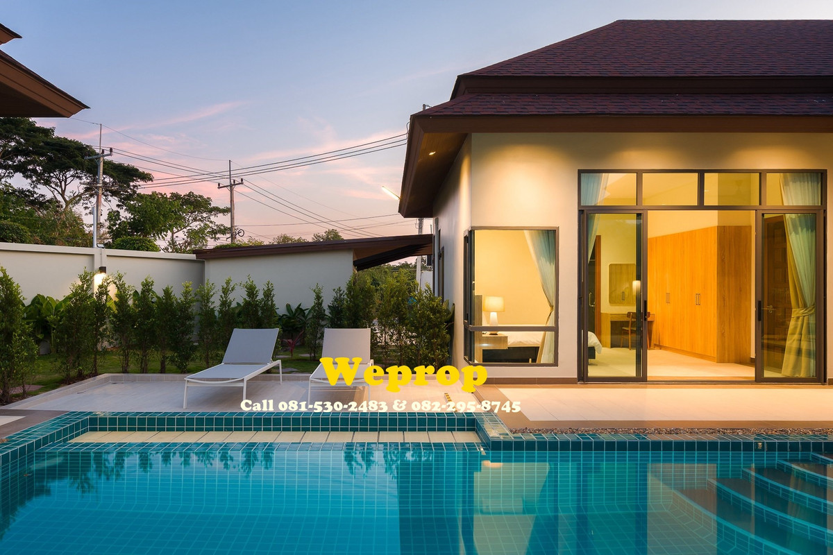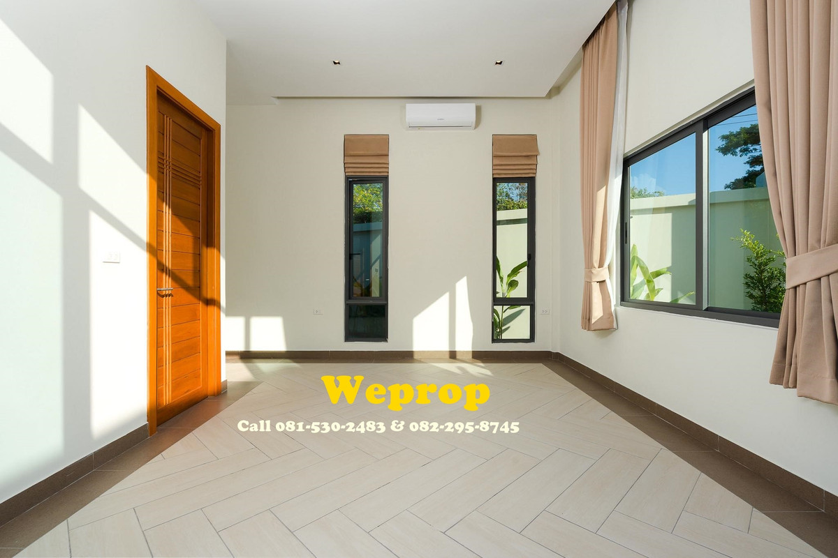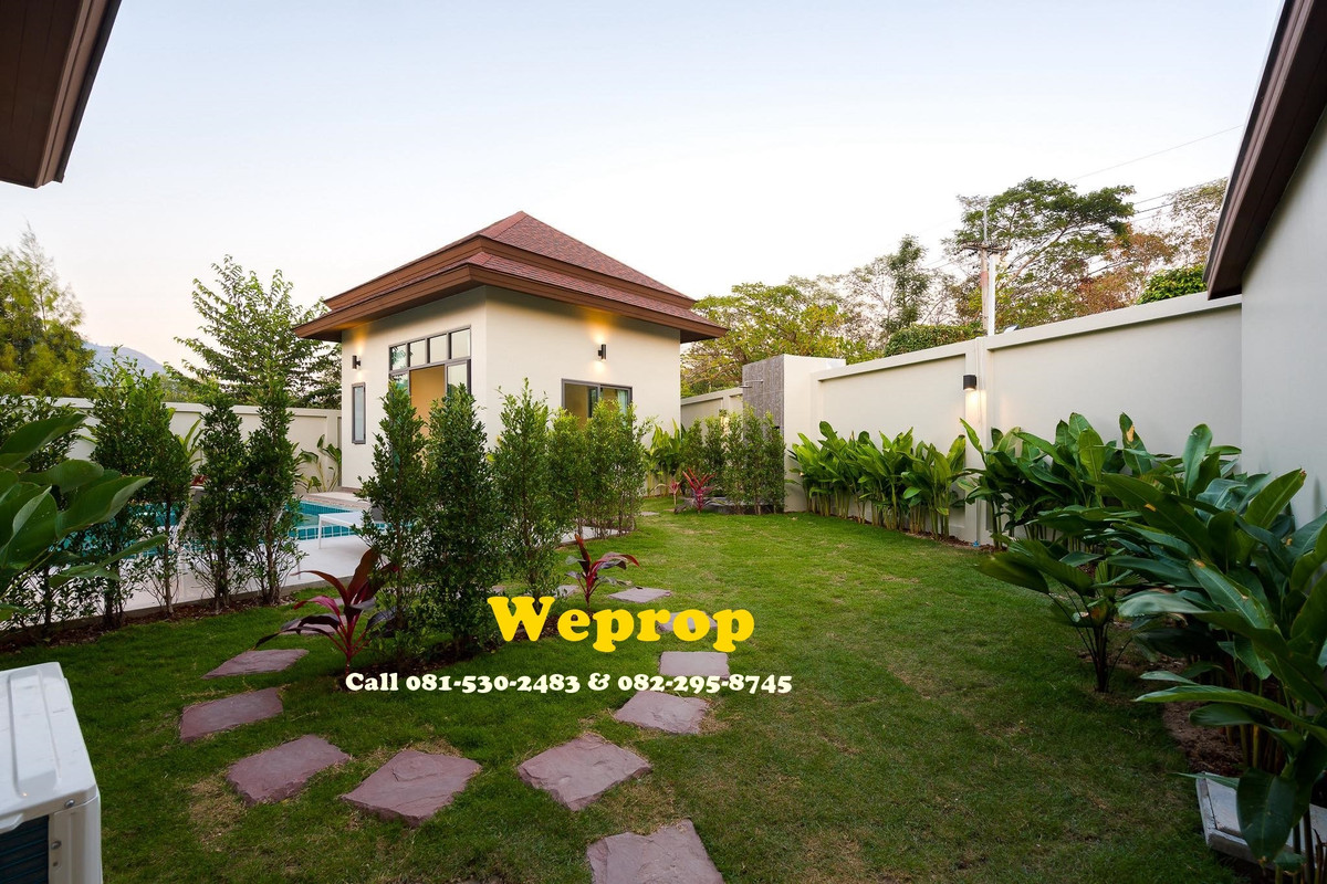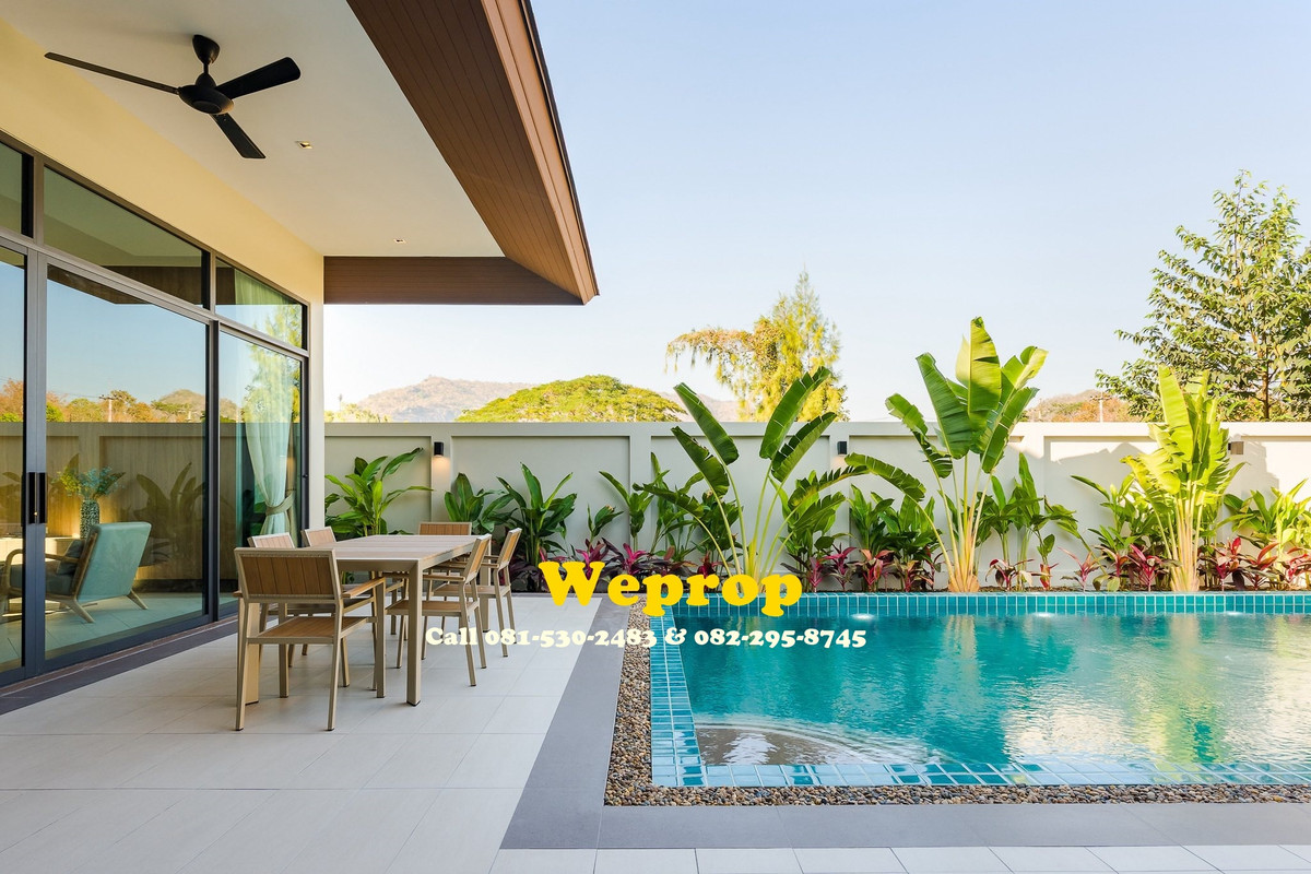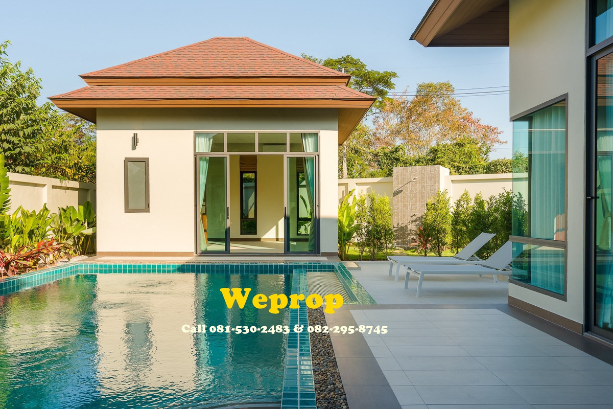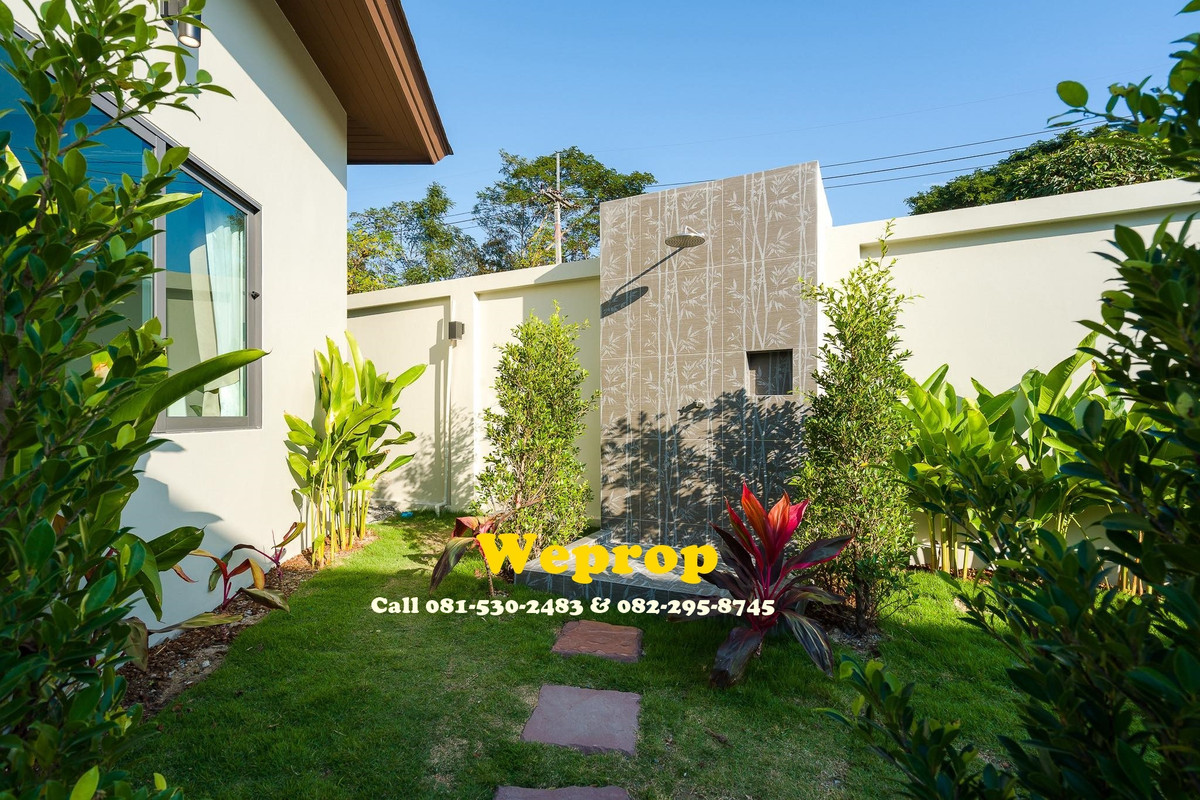 Bali modern house HuaHin 4 bedrooms 5 bathrooms Sell price 11,500,000 baht Land area 564.40 sq.m ( 141.1 sq.wah) Living area 200 sq.m Sell price is included furniture, kitchen , air conditioners 5 set , garden, swimming pool, water tank 2,000 liters , water pump, curtain, ready to move in. Salt water swimming pool 4.5 x 8 meters /deep 1.4 meters. Carpark 2 cars. There are 27 houses after project completed and only 4 houses left now. This house is opened plan which can sit inside a house to relax or sit outside around terrace to relaxing. Location : Only 5 minutes to Black Mountain Golf Course, International school and Black Mountain Water Park , Huahin 15 minutes and ByPass 10 minutes. Community facilities : security, trash collection, lighting and street inside community. House viewing: Pla Weprop Call & Line Contact number & Contact number Email Contact email