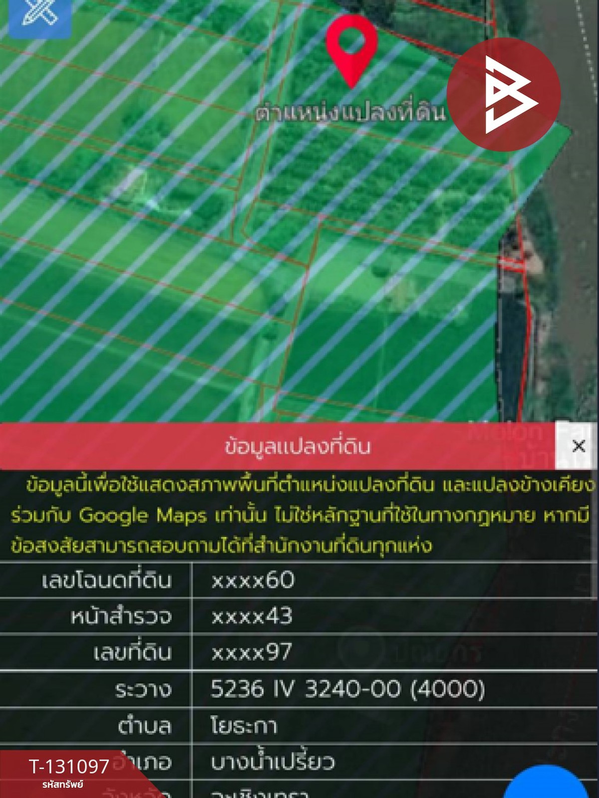 Land : Bang Nam Priao Chachoengsao Location: Yothaka Subdistrict, Bang Nam Priao District Chachoengsao Province Property code: T-131097 Type: Land Area: 5 rai 0.0 square wah Price: 6,250,000 baht Map link: https://maps.google.com/?q=13.94003700,101.15363500 **We have a free loan arrangement service. Ready to give advice Available from every bank** **with special interest rates and a maximum credit limit of 90-100% of the appraised value** If interested, ask for more information or make an appointment to view the house at Tel : Contact number Lek (agent code 4601) Line ID : alek2489 Tel : Contact number Tik (agent code 4601-1) Line ID : Tikdrive99 Callcenter : Contact number Interested in viewing more than 3,000 additional properties www.tb.co.th The Best Property Agent CO,.LTD. Leader in brokerage business Full service real estate agent With professionalism, use of technology and creative innovation. To deliver the best service for you Providing services in buying, selling, and renting real estate.