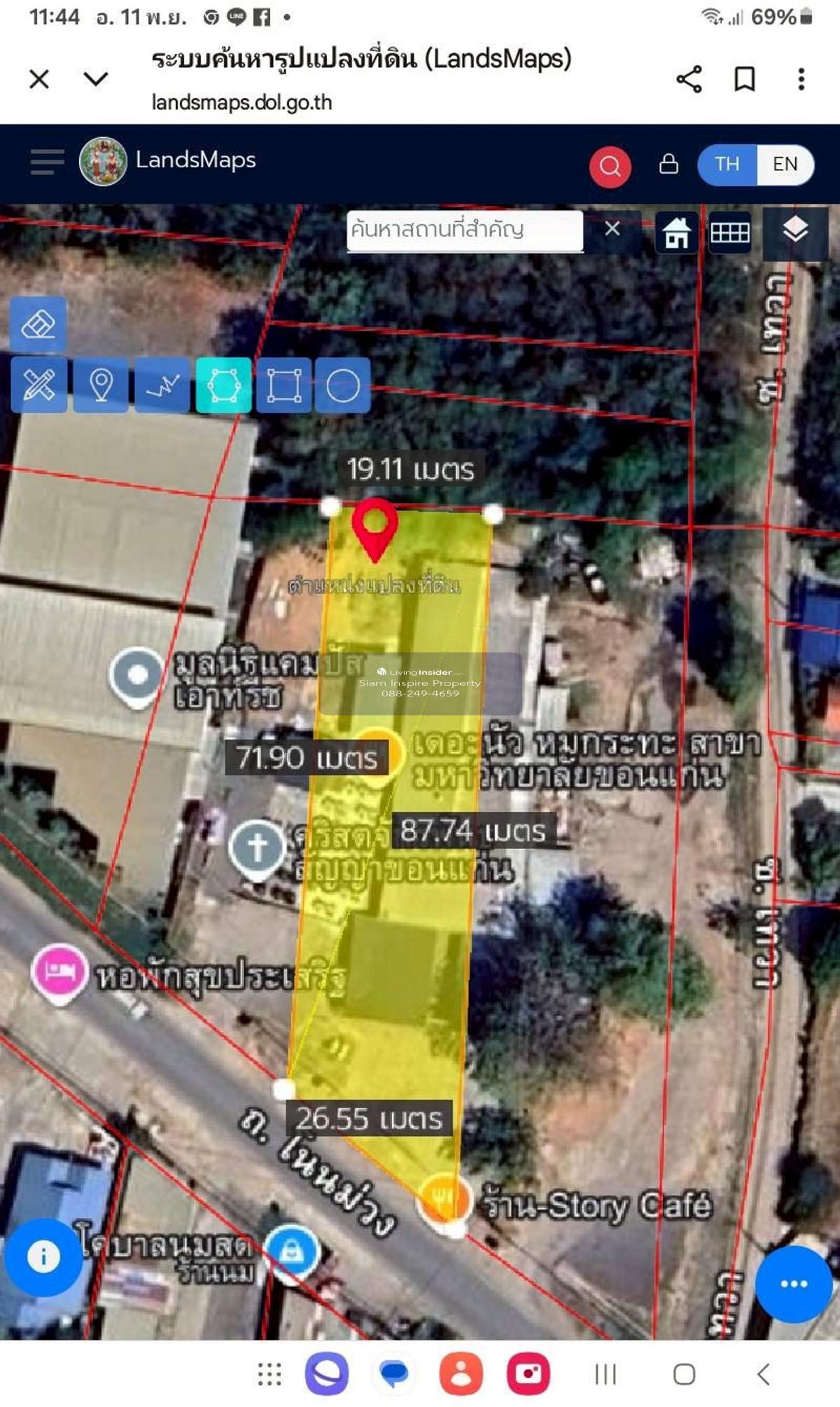 ☀️ Beautiful Land for Sale Near Khon Kaen University ☀️ 💥 Details: - Land area: 370 Sq.wah - Located on Ban Non Muang main road - Very beautiful plot - Close to Khon Kaen University 💢 Investment Highlights: • High-potential location, close to community area and educational institutions • Suitable for apartment, commercial building, hotel, or condominium development • High and continuous demand for residential and rental properties in this area • Main road width approx. 8 meters, easy access and convenient transportation ✅ Selling 20,000,000 Baht For more information please contact Contact number Khun Ya Line: siam.estate