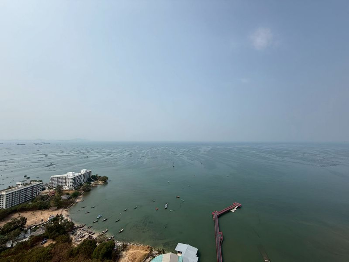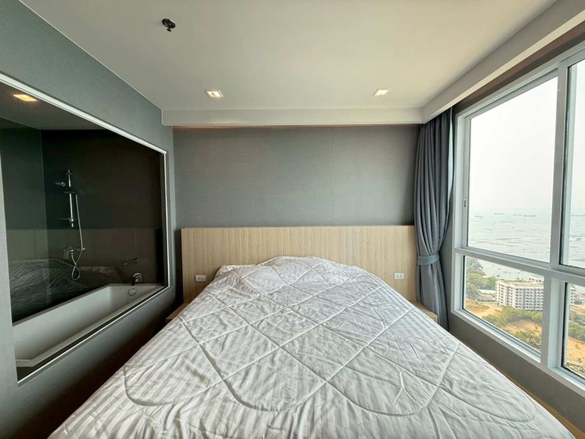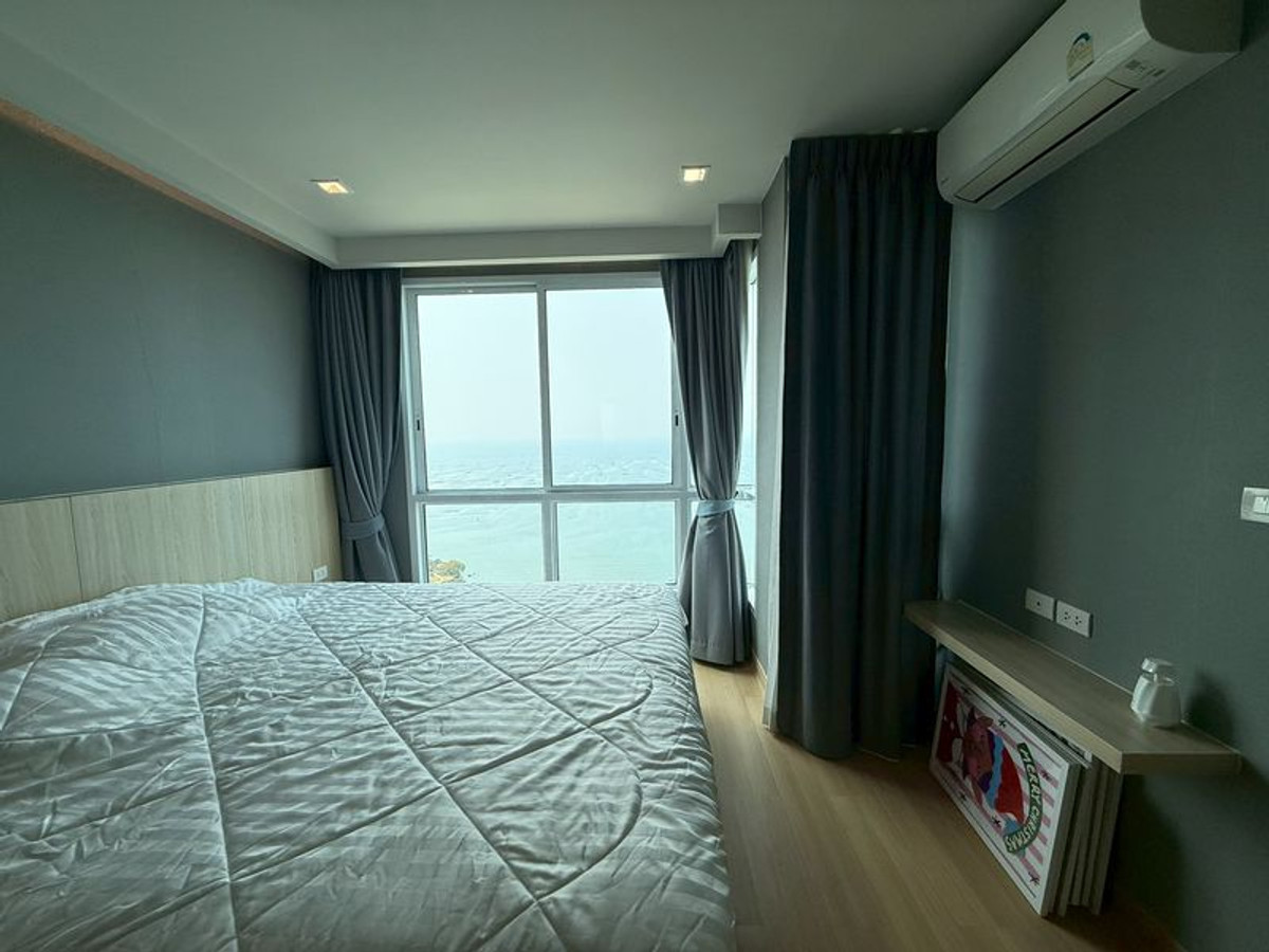 Resort-style condo for rent, Yuu Condo Sriracha, near Sukhumvit Road, high floor, sea view.