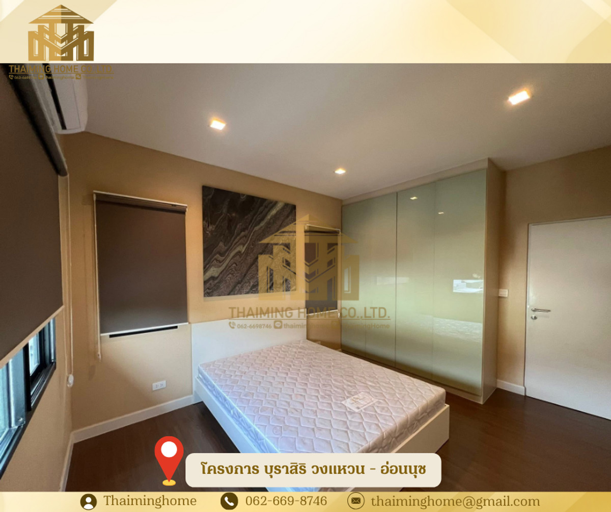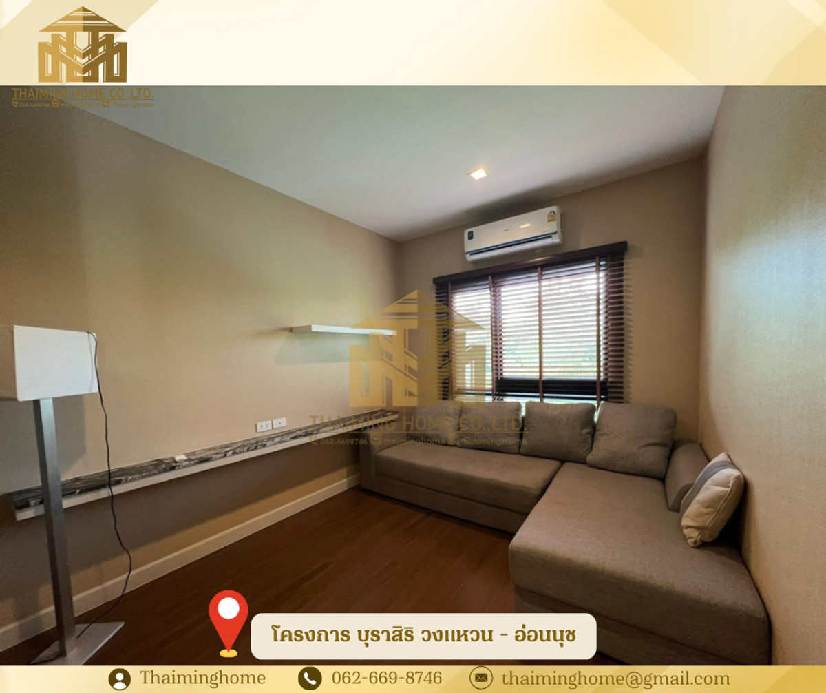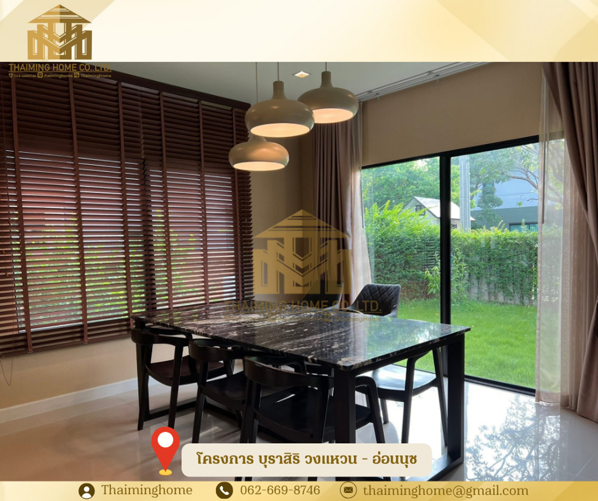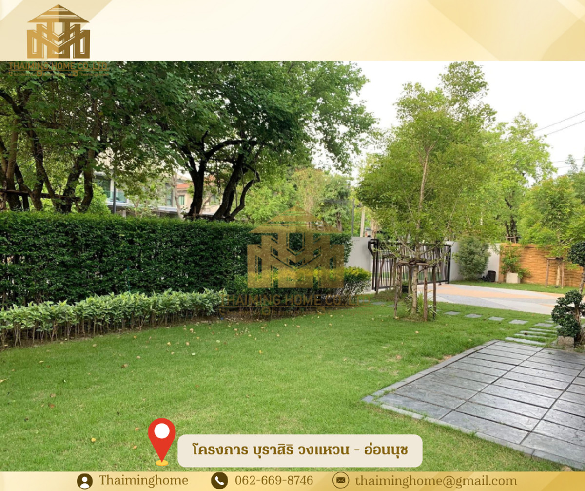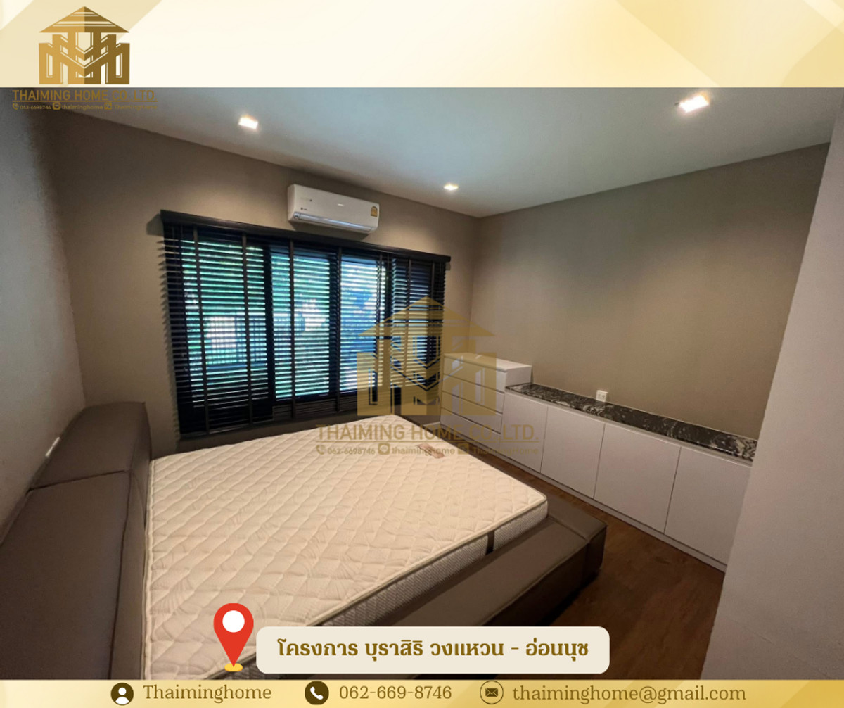 🏠Rental House Burasiri Wong-On Nut Project [TH5-270126] ✅ Details - a two-story detached house on the corner - The total area is 106 square meters. - The usable area is 230 square meters. - Four bedrooms, three bathrooms. - 1 Thai kitchen, 1 Counter bar - 4 Parking I 1 Housewife Room (1 Housewife's Bathroom) 📍 Built-in furniture, air conditioning entire back 📍 Accepting foreign tenants 🚇Nearby Locations - Near Mega Bangna, there is a parallel entrance to Kanchanaphisek. It can be shorted to the back of the mall. - Near Bang Natrad International School and not far from Rama 9 Bangkok Athletics. - Near Kanchanaphisek Expressway, Rama 9 Motorway - Near Suvarnabhumi Airport. ☑️ Purchase/Rental Conditions - a one-year minimum contract - two months' insurance, one month's advance - 🪧 Rent of 120,000 baht/month ----------------------------------------------------------------- บริษัท ไทยหมิง โฮม จำกัด Thaiming Home Co.,Ltd. 泰明房园 房产公司 ------------------------- Contact ติดต่อ : Contact number Contact : Contact number คุณหมิง(中文) Line ID: thaiminghome Line ID: @thaiminghome https://lin.ee/PkkHwYv Wechat : ThaimingHome E-mail : Contact email -----------------------------------------------