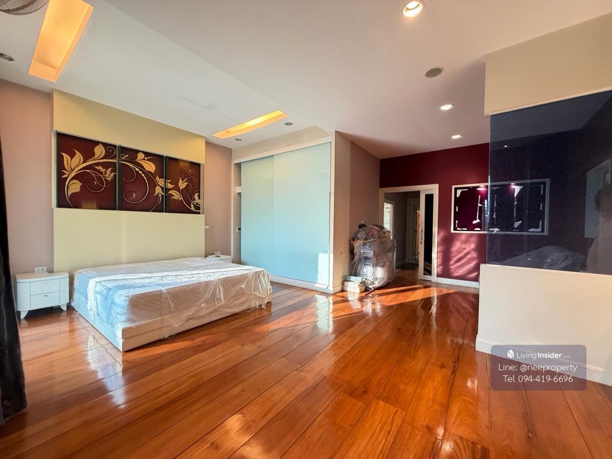 🏡 Single house in the project Grand Royal Nisachon Location: Kanlapaphruek Zone | Convenient entry to the city – Sathorn 🔹 Land & house information Area 290.1 square wah, usable area approximately 900 square meters Single house in the project. The environment is very good The house is near the central area, easy to walk to use 🔹 Home functions 6 bedrooms (every bedroom has its own bathroom) Downstairs 1 bedroom (suitable for elderly people) Upstairs 5 bedrooms Master Bedroom with Jacuzzi bathtub The downstairs bedroom has Jacuzzi bathtub, 1 large guest room , 1 small living room , 1 office room 2 separate maids rooms, parking for 6 cars 🔹 Central project area 2 central zones (in front of the project and in the middle of the project) Swimming pool, fitness , basketball court , badminton court , large banquet hall , yoga room Shady atmosphere Big trees, security system, 24-hour security guards CCTV around the project Quality neighbors, good society 💰 Selling price only 40 million baht Transfer fee 50/50 For more information, contact Ms. Suphannee Phithak (Nee) Realty One Estate .,LTD 📱 Tel. Contact number 📩 Line ID: @Neeproperty or click https://lin.ee/92gF5kq ✅WhatsApp / WeChat Contact number