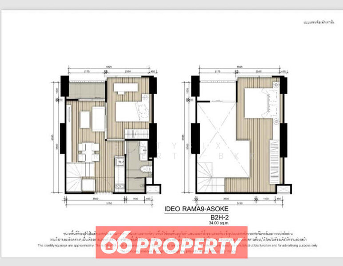 Condo in Rama 9, Asoke, Ratchada area, Duplex 2 bedrooms, 1 bathroom, 1 kitchen, 1 living room.