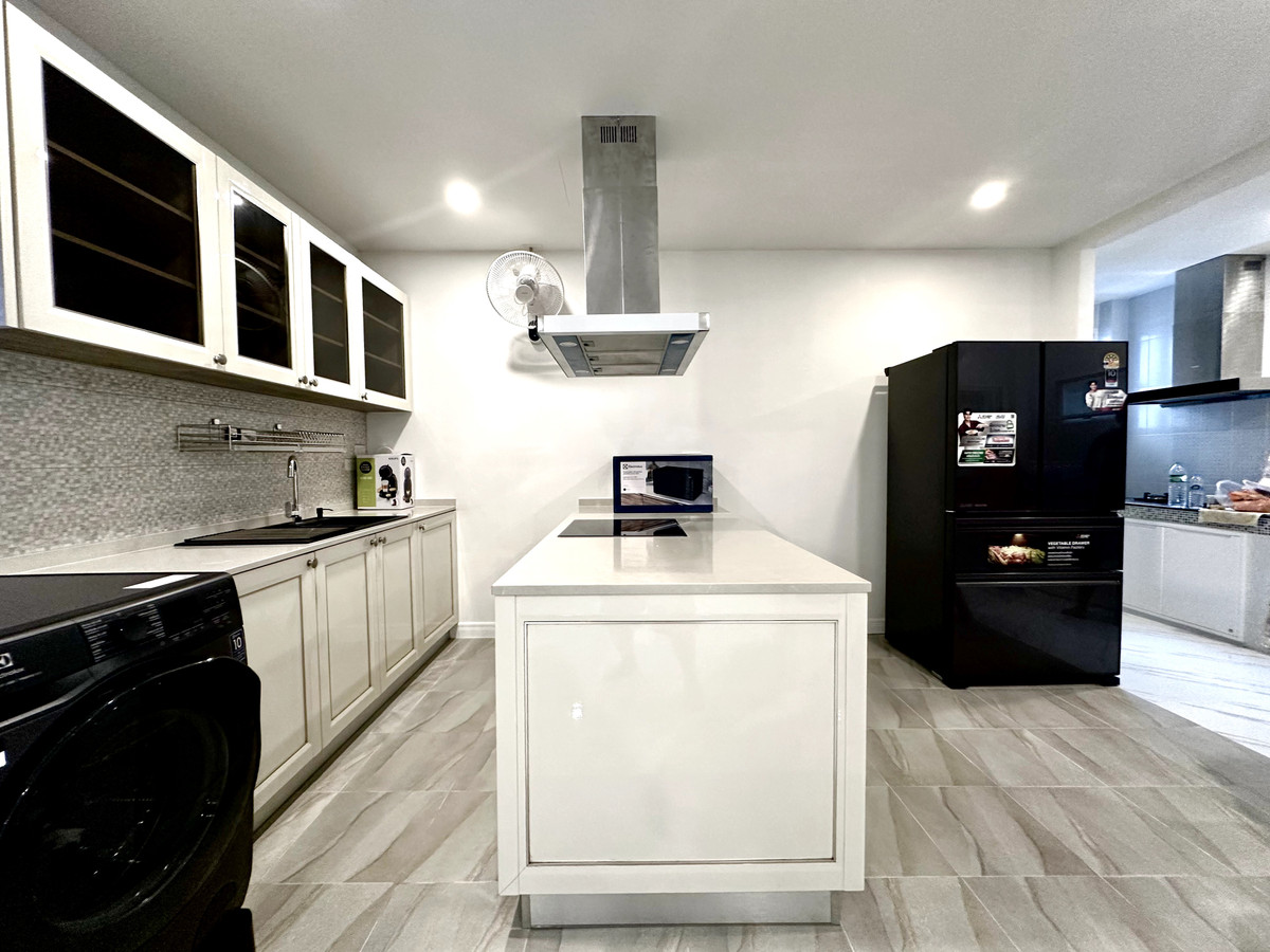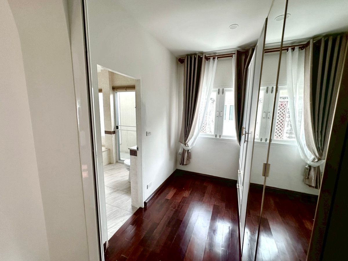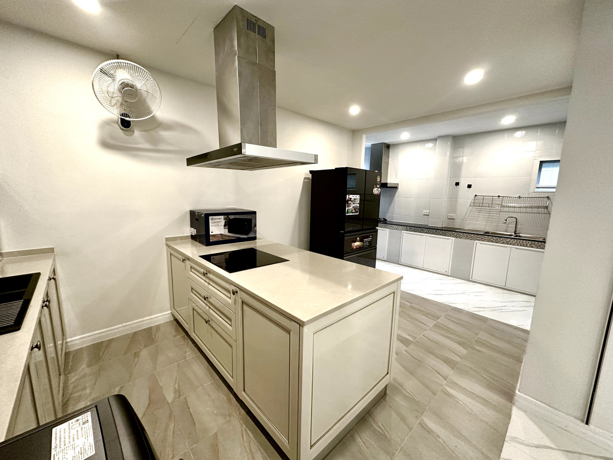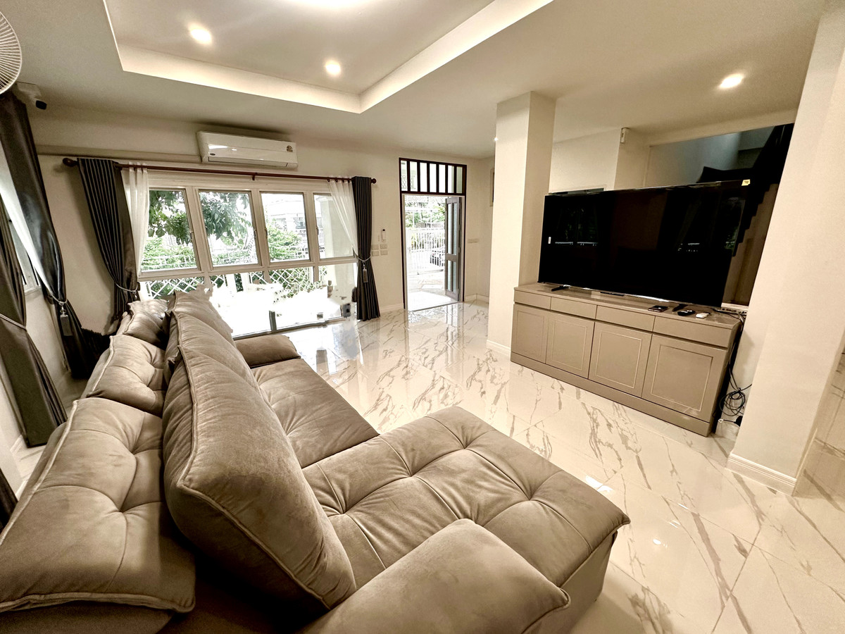 🏡 ให้เช่าบ้านเดี่ยวหัวมุม 2 ชั้น พร้อมบ้านเรือนรับรอง 2 ชั้นในตัว – หรูหรา สมาร์ททั้งหลัง Luxury Smart Corner House for Rent – 2-Storey Main House + 2-Storey Guest House 📍 เพอร์เฟคเพลส รามคำแหง 164 โครงการ 2 | พื้นที่ 111 ตร.วา | พื้นที่ใช้สอยรวม 410 ตร.ม. Perfect Place Ramkhamhaeng 164, Phase 2 | Land size: 111 sq.wah | 410 sqm usable space 📌 เพียง 200 เมตร ถึง 7-11, Clubhouse, ร้านทำผม | ทางเข้าออกหมู่บ้าน 3 ทาง Only 200m from 7-Eleven, clubhouse, hair salon | 3 village entrances 💥 บ้านรีโนเวทใหม่ทั้งหลัง พร้อมเข้าอยู่ทันที! ใกล้ รร.นานาชาติร่วมฤดี โลตัส ตลาด ร้านอาหาร 💥 Fully renovated and ready to move in! Close to Ruamrudee international schools, Lotus, markets, restaurants 🌟 จุดเด่นบ้าน | Highlights ✅ บ้านหัวมุม 2 ชั้น + เรือนรับรอง 2 ชั้น Corner house + separate 2-storey guest house ✅ บ้านอัจฉริยะ ควบคุมด้วยรีโมท Smart home system (control lights, air conditioner, fans via remote) ✅ เฟอร์นิเจอร์และเครื่องใช้ไฟฟ้าใหม่ทั้งหมด Brand-new furniture and appliances ✅ อินเทอร์เน็ตความเร็วสูง + กล้องวงจรปิด High-speed WiFi & CCTV installed ✅ ทางเข้าออกหมู่บ้าน 3 ทาง: 1. ซ.รามคำแหง 164 2. ซ.รามคำแหง 174 3. ซ.เคหะร่มเกล้า 64 3 village entrances: 1.Soi Ramkhamhaeng 164 2.Soi Ramkhamhaeng 174 3.Kheha Romklao 64 🏠 รายละเอียดตัวบ้าน | House Details บ้านใหญ่ (Main House) 🛌 1 ห้องนอน Master (มีอ่างอาบน้ำ) 🛏 3 ห้องนอน พร้อมเฟอร์นิเจอร์ครบ 🛁 3 ห้องน้ำ 🛋 1 ห้องนั่งเล่น 🍽 1 ครัวไทย + 1 ครัวฝรั่ง 🧹 ห้องแม่บ้าน + ห้องน้ำในตัว Main House (2 storeys) 🛌1 Master bedroom with en-suite bathtub 🛌3 bedrooms (fully furnished) 🛁 3 bathrooms 🛋1 spacious living room 🍽 Thai kitchen + Western kitchen 🧹Maid’s room with private bathroom เรือนรับรอง/บ้านเล็ก (Guest House) 🛏 1 ห้องนอน 🚿 1 ห้องน้ำ Guest House (2 storeys) 🛏 1 bedroom 🚿1 bathroom 🛋️ เฟอร์นิเจอร์ครบ (ใหม่ทุกชิ้น!) | Fully Furnished (All Brand-New!) ✔️ โต๊ะทานข้าว 4 ชุด l 4 dining table sets ✔️โซฟาเบดไฟฟ้า l Electric reclining sofa bed ✔️เตียง + ตู้เสื้อผ้า + โต๊ะเครื่องแป้ง ทุกห้องนอน l Beds, wardrobes, dressing tables in all rooms 📺 เครื่องใช้ไฟฟ้าใหม่ทั้งหมด | Brand-New Appliances ✔️แอร์ 7 เครื่อง 7 air conditioners ✔️ พัดลมติดผนังแบบรีโมท 7 ตัว 7 wall-mounted remote-controlled fans ✔️ ทีวี Smart TV ขนาด 65 นิ้ว 65" Smart TV ✔️ เครื่องทำน้ำอุ่น Water heaters ✔️ ตู้เย็น Mitsubishi 4 ประตู 20 คิว (มีระบบทำน้ำแข็ง) Mitsubishi 4-door refrigerator (20 cu.ft.) with auto ice maker ✔️ เครื่องซักผ้าอบผ้าในตัว Washer & dryer combo ✔️ ไมโครเวฟ / เครื่องชงกาแฟ / Air Fryer Microwave / Coffee maker / Air Fryer 🏠 ระบบสมาร์ทโฮม | Smart Home System ✔️ประตูดิจิทัลล็อก Digital door lock ✔️ รีโมทควบคุมแอร์ ไฟ พัดลม Remote control for A/C, lights, fans ✔️ ระบบกล้องวงจรปิด CCTV CCTV surveillance ✔️ อินเทอร์เน็ตความเร็วสูง High-speed internet 🏊‍♂️ สิ่งอำนวยความสะดวกในหมู่บ้าน | Village Facilities ✔️Clubhouse ✔️สระว่ายน้ำ Swimming pool ✔️ฟิตเนส Fitness center ✔️สนามเด็กเล่น Playground ✔️สวนสาธารณะ Park ✔️7-11 ในหมู่บ้าน (เดินเพียง 200 เมตร) 7-Eleven within 200m ✔️ระบบเข้า-ออก Access Card Access-card controlled entry 📍 สถานที่ใกล้เคียง | Nearby Locations 🚝 รถไฟฟ้าสายสีส้ม (สถานีมีนพัฒนา / เคหะรามฯ) MRT Orange Line (Minphatthana / Kheha Ramkhamhaeng stations) 🏫 International schools: RIS, Bromsgrove, Ascot, Brighton, Heathfield 🏥 รพ.รามคำแหง 2 Ramkhamhaeng Hospital 2 🛍️โลตัสสุขาภิบาล 3 / บิ๊กซี / ตลาดมีนบุรี Lotus Sukhaphiban 3 / Big C / Minburi Market 💰 ราคาเช่า | Rental Price 🔥จาก 110,000 บาท → พิเศษเพียง 90,000 บาท/เดือน From 110,000 THB → Now only 90