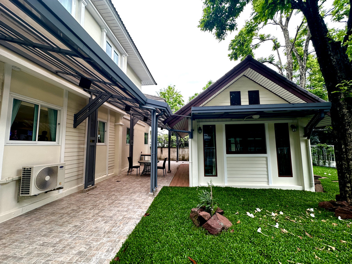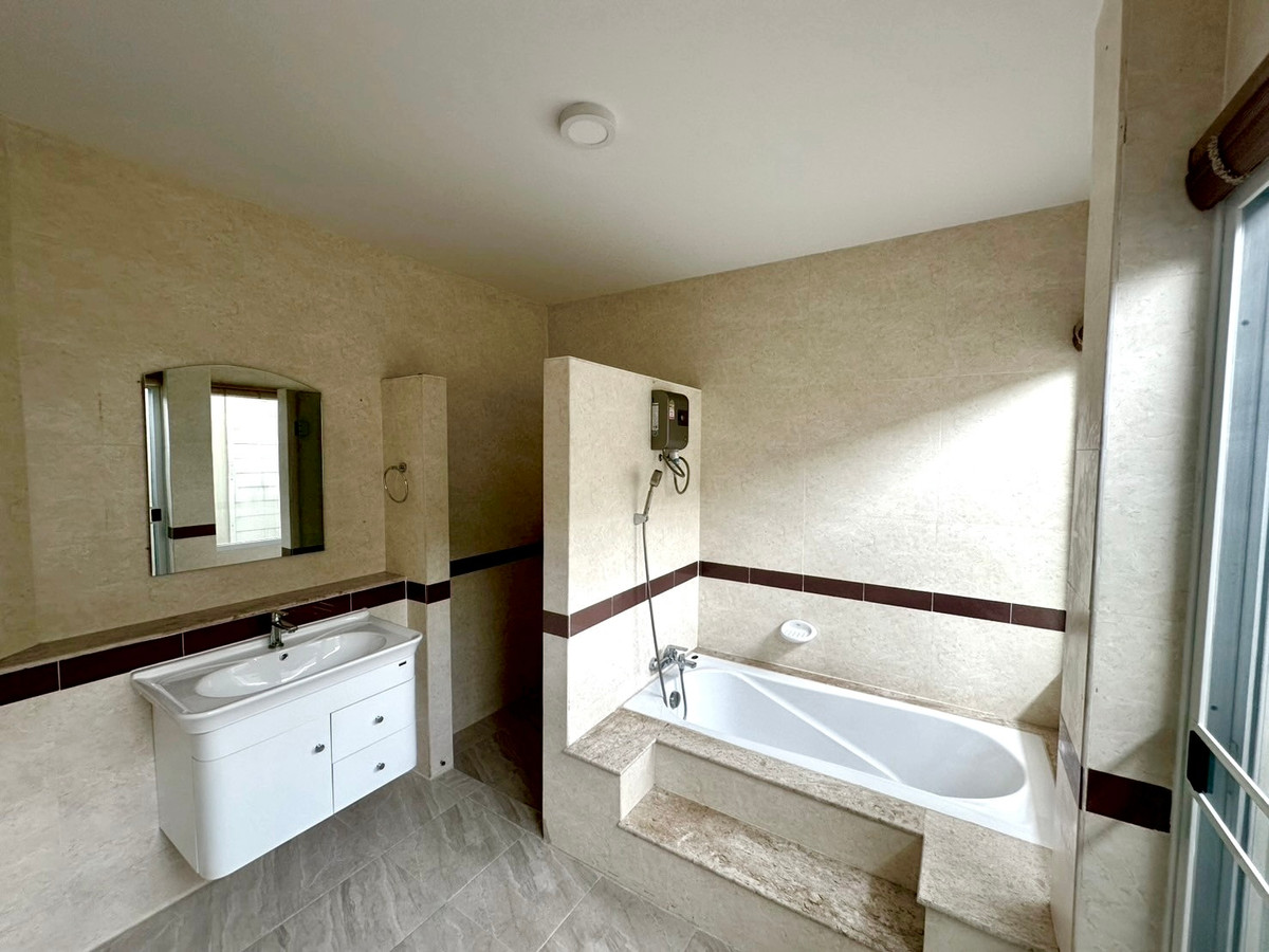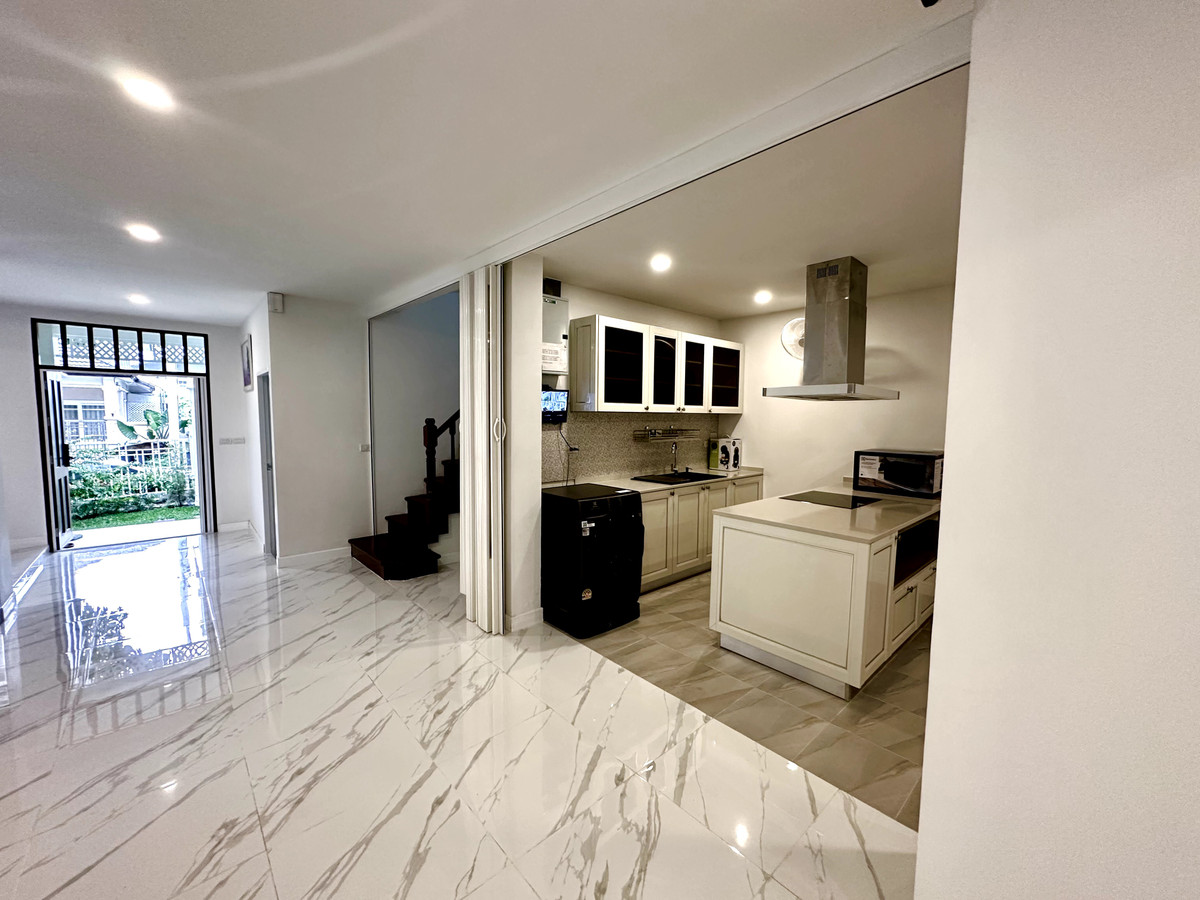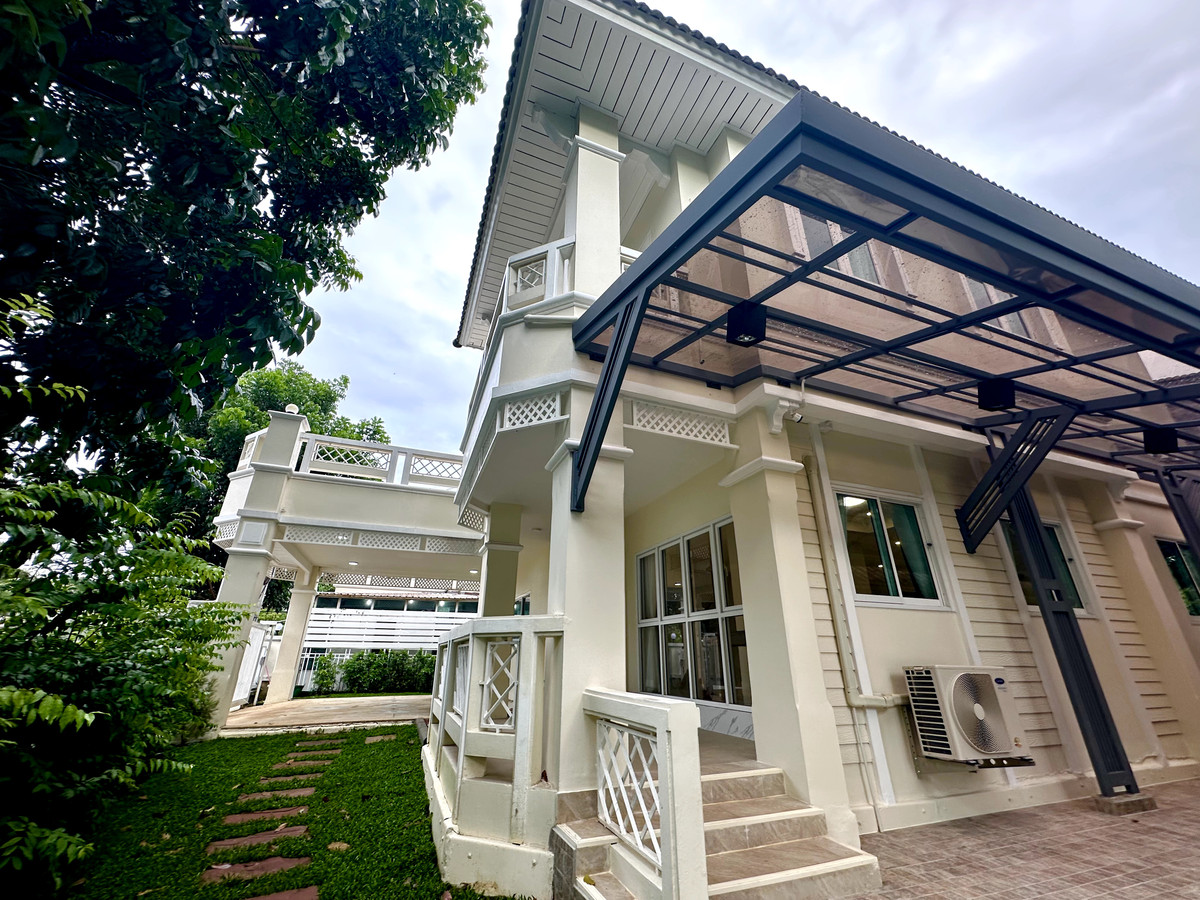 🏡 ให้เช่าบ้านเดี่ยวหัวมุม 2 ชั้น พร้อมบ้านเรือนรับรอง 2 ชั้นในตัว – หรูหรา สมาร์ททั้งหลัง Luxury Smart Corner House for Rent – 2-Storey Main House + 2-Storey Guest House 📍 เพอร์เฟคเพลส รามคำแหง 164 โครงการ 2 | พื้นที่ 111 ตร.วา | พื้นที่ใช้สอยรวม 410 ตร.ม. Perfect Place Ramkhamhaeng 164, Phase 2 | Land size: 111 sq.wah | 410 sqm usable space 📌 เพียง 200 เมตร ถึง 7-11, Clubhouse, ร้านทำผม | ทางเข้าออกหมู่บ้าน 3 ทาง Only 200m from 7-Eleven, clubhouse, hair salon | 3 village entrances 💥 บ้านรีโนเวทใหม่ทั้งหลัง พร้อมเข้าอยู่ทันที! ใกล้ รร.นานาชาติร่วมฤดี โลตัส ตลาด ร้านอาหาร 💥 Fully renovated and ready to move in! Close to Ruamrudee international schools, Lotus, markets, restaurants 🌟 จุดเด่นบ้าน | Highlights ✅ บ้านหัวมุม 2 ชั้น + เรือนรับรอง 2 ชั้น Corner house + separate 2-storey guest house ✅ บ้านอัจฉริยะ ควบคุมด้วยรีโมท Smart home system (control lights, air conditioner, fans via remote) ✅ เฟอร์นิเจอร์และเครื่องใช้ไฟฟ้าใหม่ทั้งหมด Brand-new furniture and appliances ✅ อินเทอร์เน็ตความเร็วสูง + กล้องวงจรปิด High-speed WiFi & CCTV installed ✅ ทางเข้าออกหมู่บ้าน 3 ทาง: 1. ซ.รามคำแหง 164 2. ซ.รามคำแหง 174 3. ซ.เคหะร่มเกล้า 64 3 village entrances: 1.Soi Ramkhamhaeng 164 2.Soi Ramkhamhaeng 174 3.Kheha Romklao 64 🏠 รายละเอียดตัวบ้าน | House Details บ้านใหญ่ (Main House) 🛌 1 ห้องนอน Master (มีอ่างอาบน้ำ) 🛏 3 ห้องนอน พร้อมเฟอร์นิเจอร์ครบ 🛁 3 ห้องน้ำ 🛋 1 ห้องนั่งเล่น 🍽 1 ครัวไทย + 1 ครัวฝรั่ง 🧹 ห้องแม่บ้าน + ห้องน้ำในตัว Main House (2 storeys) 🛌1 Master bedroom with en-suite bathtub 🛌3 bedrooms (fully furnished) 🛁 3 bathrooms 🛋1 spacious living room 🍽 Thai kitchen + Western kitchen 🧹Maid’s room with private bathroom เรือนรับรอง/บ้านเล็ก (Guest House) 🛏 1 ห้องนอน 🚿 1 ห้องน้ำ Guest House (2 storeys) 🛏 1 bedroom 🚿1 bathroom 🛋️ เฟอร์นิเจอร์ครบ (ใหม่ทุกชิ้น!) | Fully Furnished (All Brand-New!) ✔️ โต๊ะทานข้าว 4 ชุด l 4 dining table sets ✔️โซฟาเบดไฟฟ้า l Electric reclining sofa bed ✔️เตียง + ตู้เสื้อผ้า + โต๊ะเครื่องแป้ง ทุกห้องนอน l Beds, wardrobes, dressing tables in all rooms 📺 เครื่องใช้ไฟฟ้าใหม่ทั้งหมด | Brand-New Appliances ✔️แอร์ 7 เครื่อง 7 air conditioners ✔️ พัดลมติดผนังแบบรีโมท 7 ตัว 7 wall-mounted remote-controlled fans ✔️ ทีวี Smart TV ขนาด 65 นิ้ว 65" Smart TV ✔️ เครื่องทำน้ำอุ่น Water heaters ✔️ ตู้เย็น Mitsubishi 4 ประตู 20 คิว (มีระบบทำน้ำแข็ง) Mitsubishi 4-door refrigerator (20 cu.ft.) with auto ice maker ✔️ เครื่องซักผ้าอบผ้าในตัว Washer & dryer combo ✔️ ไมโครเวฟ / เครื่องชงกาแฟ / Air Fryer Microwave / Coffee maker / Air Fryer 🏠 ระบบสมาร์ทโฮม | Smart Home System ✔️ประตูดิจิทัลล็อก Digital door lock ✔️ รีโมทควบคุมแอร์ ไฟ พัดลม Remote control for A/C, lights, fans ✔️ ระบบกล้องวงจรปิด CCTV CCTV surveillance ✔️ อินเทอร์เน็ตความเร็วสูง High-speed internet 🏊‍♂️ สิ่งอำนวยความสะดวกในหมู่บ้าน | Village Facilities ✔️Clubhouse ✔️สระว่ายน้ำ Swimming pool ✔️ฟิตเนส Fitness center ✔️สนามเด็กเล่น Playground ✔️สวนสาธารณะ Park ✔️7-11 ในหมู่บ้าน (เดินเพียง 200 เมตร) 7-Eleven within 200m ✔️ระบบเข้า-ออก Access Card Access-card controlled entry 📍 สถานที่ใกล้เคียง | Nearby Locations 🚝 รถไฟฟ้าสายสีส้ม (สถานีมีนพัฒนา / เคหะรามฯ) MRT Orange Line (Minphatthana / Kheha Ramkhamhaeng stations) 🏫 International schools: RIS, Bromsgrove, Ascot, Brighton, Heathfield 🏥 รพ.รามคำแหง 2 Ramkhamhaeng Hospital 2 🛍️โลตัสสุขาภิบาล 3 / บิ๊กซี / ตลาดมีนบุรี Lotus Sukhaphiban 3 / Big C / Minburi Market 💰 ราคาเช่า | Rental Price 🔥จาก 110,000 บาท → พิเศษเพียง 90,000 บาท/เดือน From 110,000 THB → Now only 90