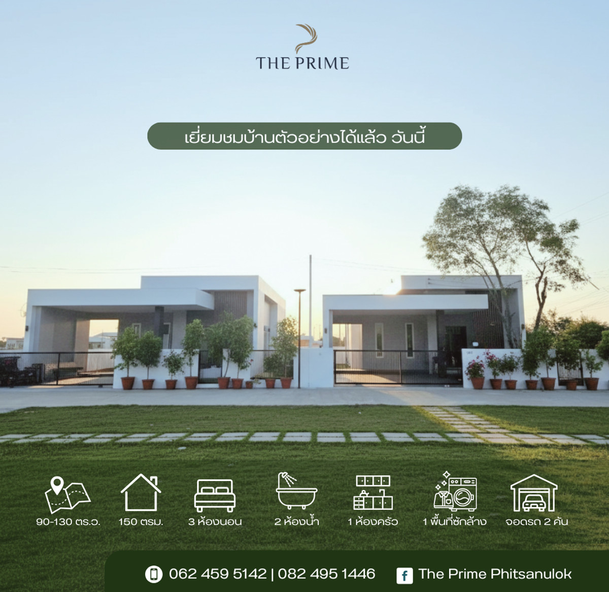🏠 House ready to move in, good location, starting at only 2.99 million baht with many discounts and promotions. 📌 Reserve today and receive a discount of up to 300,000 baht. 📍 Stop by and visit the sample home today. 🏡 The Prime Phitsanulok, modern style detached house. Great value price 🏞️ Comes with a wide area of 90-130 sq m., a full usable area of 150 sq m., beautifully decorated, open and airy. provide privacy Surrounded by nature 💪🏻 Strong structure Be confident by driving piles throughout the house and fence. 🛌 3 bedrooms 🛁 2 bathrooms 🖥 1 living room 🍽 1 kitchen + dining zone 🚘 2 parking spaces 🏠 Popular location, easy to travel, only 350 meters from the main road, takes less than 15 minutes, close to amenities. Department stores, educational institutions • Just 7 minutes from Do Home Phitsanulok. • Only 10 minutes from Central Plaza Phitsanulok. • Only 10 minutes from Rajamangala University of Technology Lanna Phitsanulok. • Only 12 minutes from Imperial Phitsanulok Bilingual School. • Only 12 minutes from Pibulsongkram Rajabhat University. • Only 12 minutes from Phitsanulok Provincial Transport Office No. 1 📌 See you at The Prime Phitsanulok. https://maps.app.goo.gl/Zs7pwERgJWw8JXXA8 📱 Call for more information at Contact number , Contact number #Until it's ThePrime #Single house #Phitsanulok #Single story house #Modern style detached house #Modern style house #phitsanulok #theprimephirsanulok #ThePrime #Ready-to-move-in house #The Prime #The Prime Phitsanulok See less
